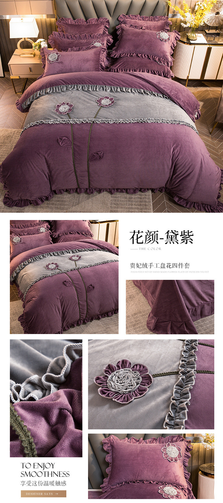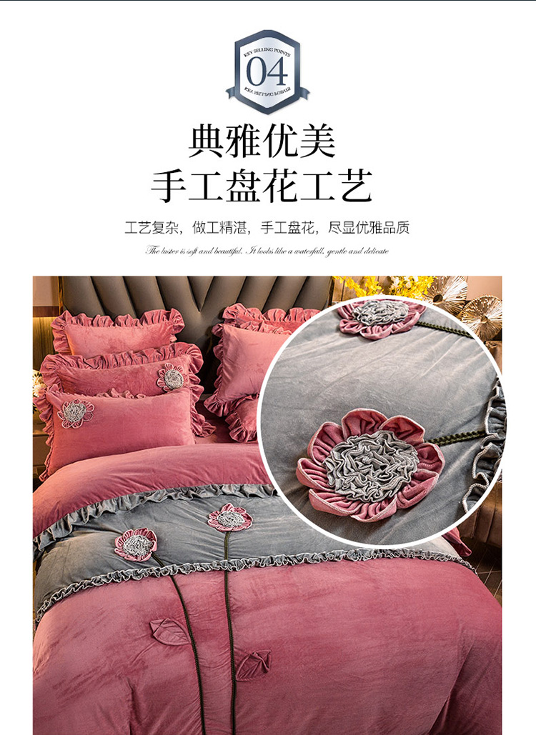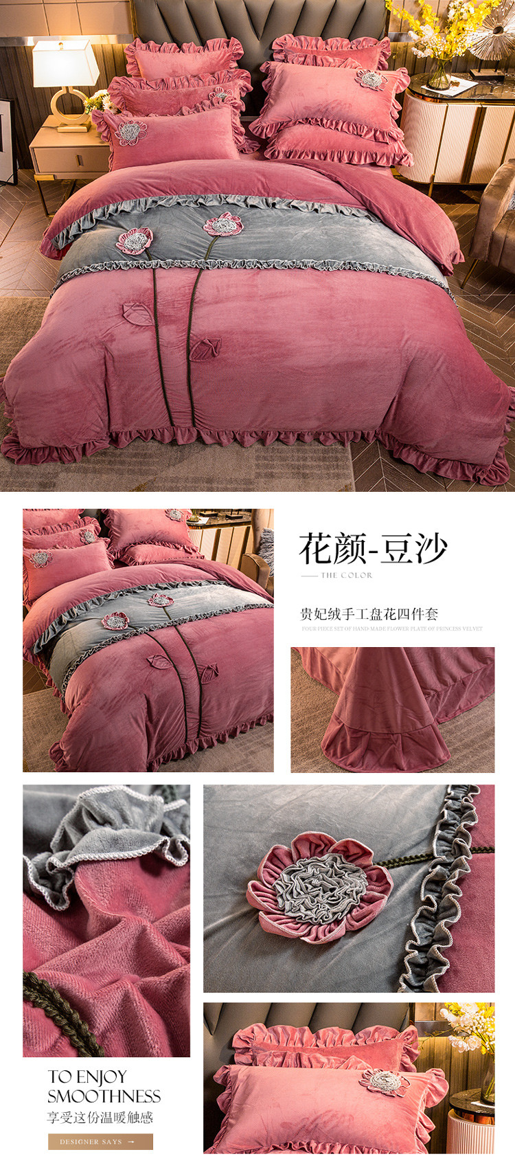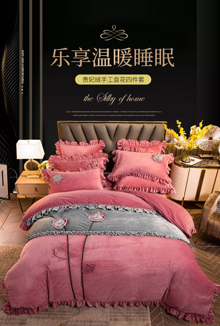(总)兴美佳 新款贵妃绒手工盘花四件套