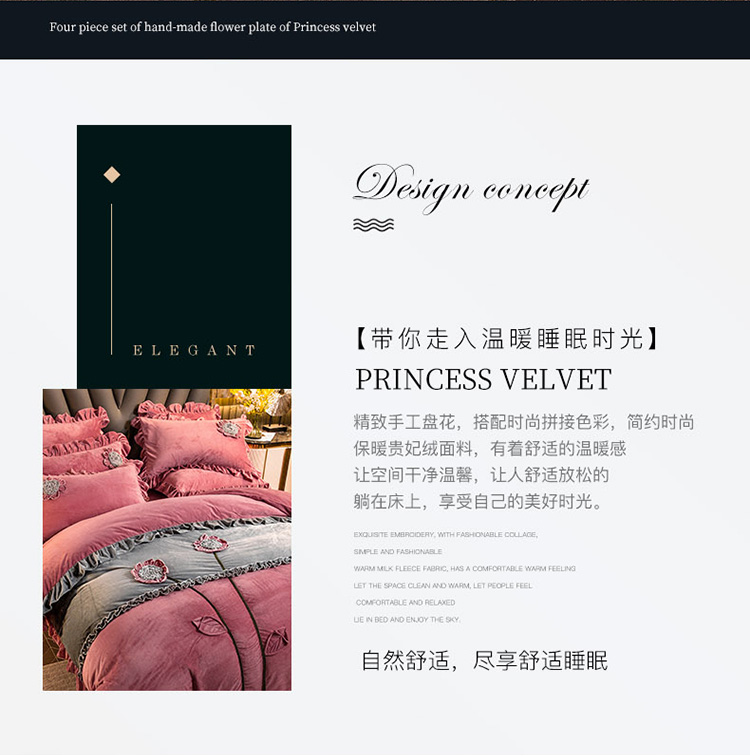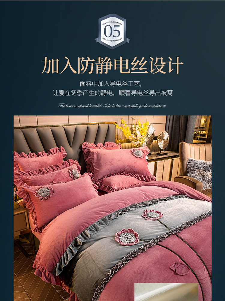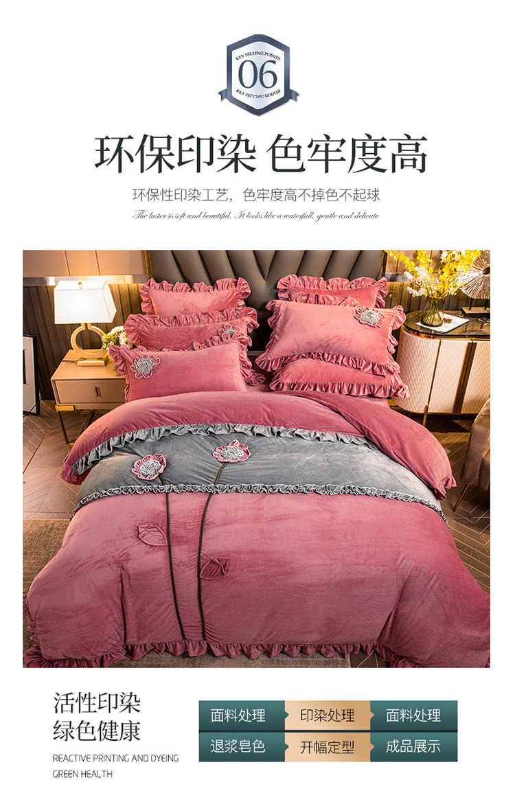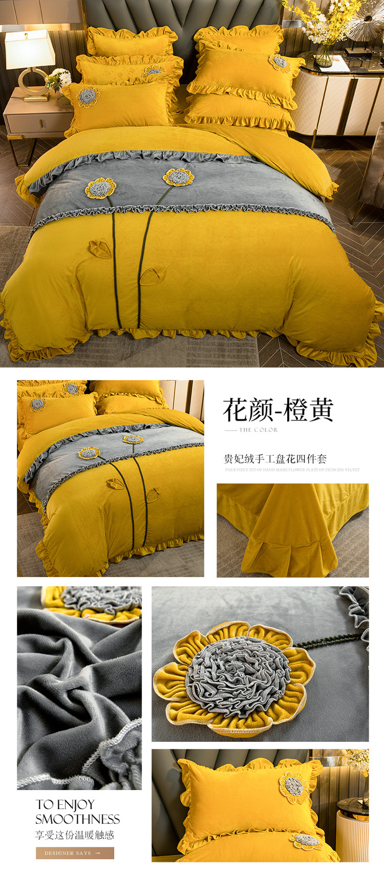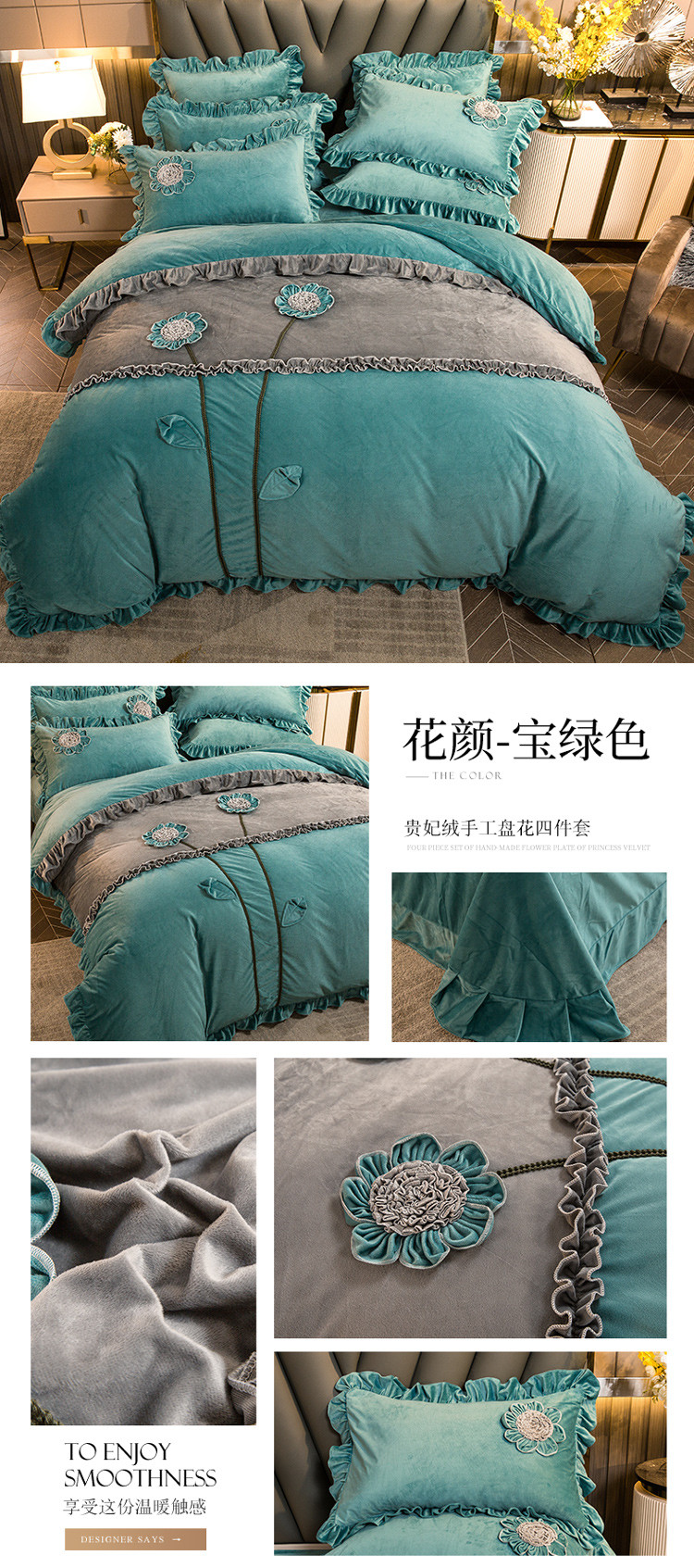 (总)兴美佳 新款贵妃绒手工盘花四件套