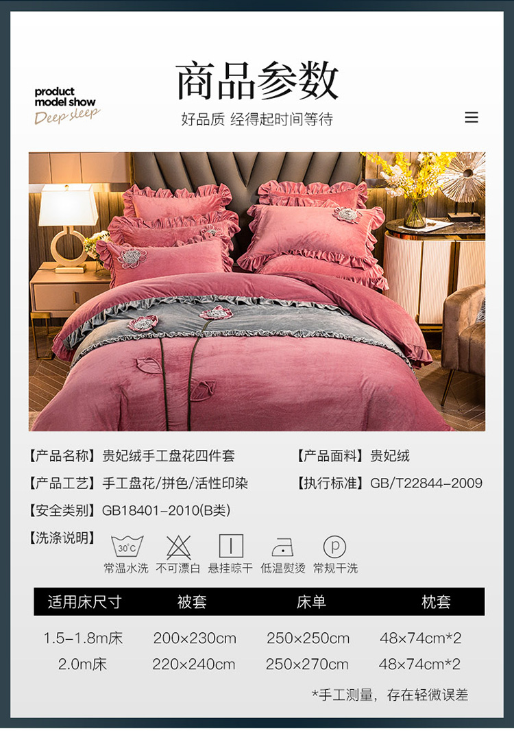 商品名称:(总)兴美佳 新款贵妃绒手工盘花四件套