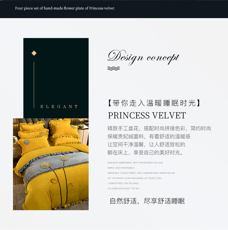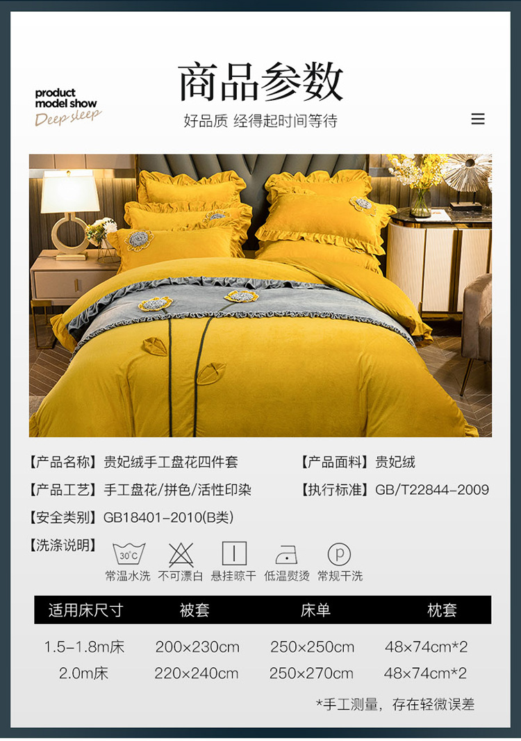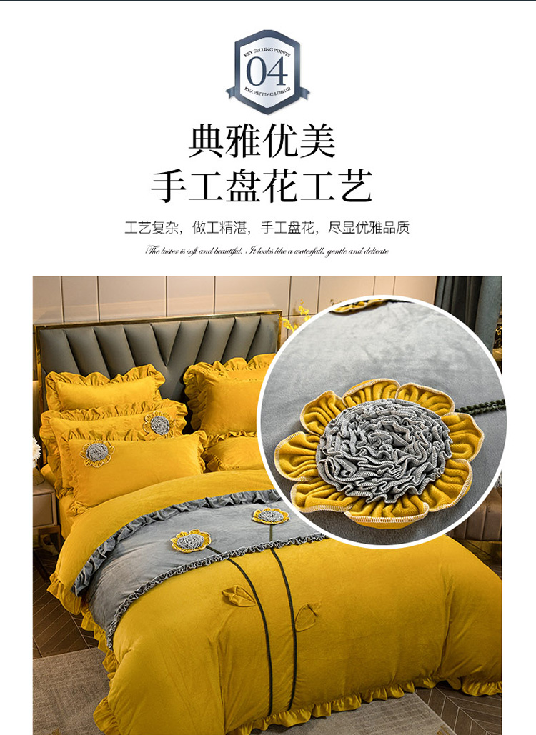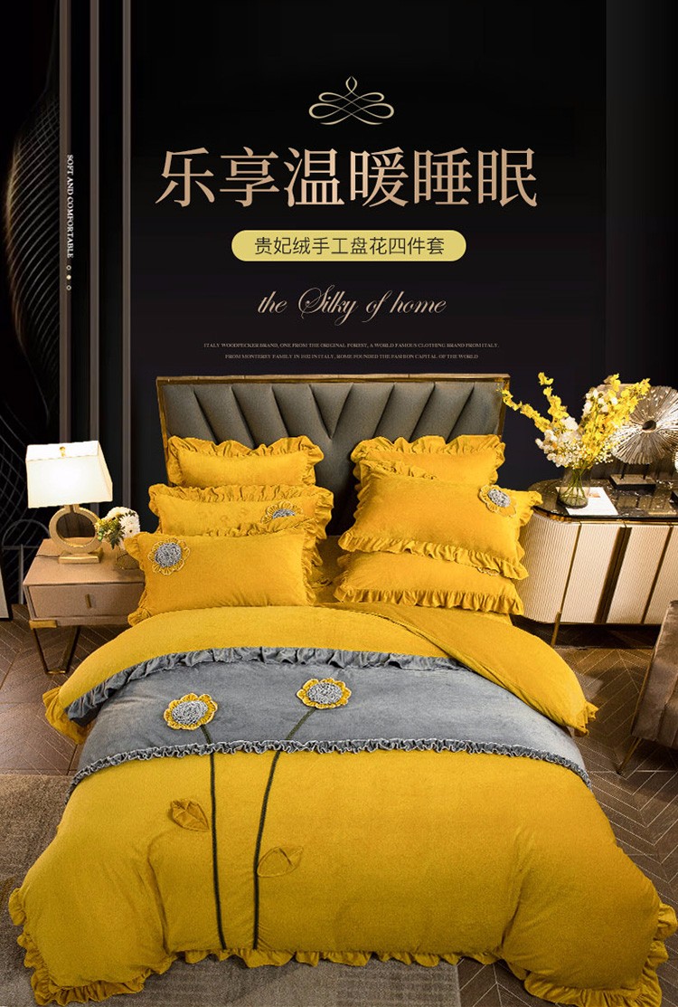 商品名称:兴美佳 新款贵妃绒手工盘花四件套 花颜-橙黄