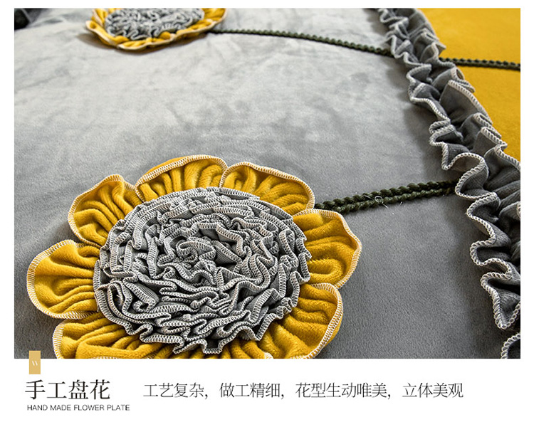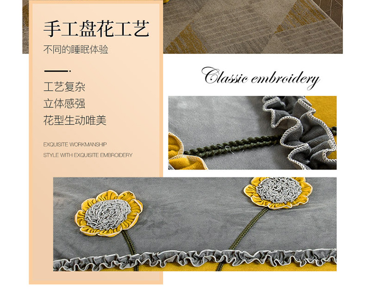 兴美佳 新款贵妃绒手工盘花四件套 花颜-橙黄