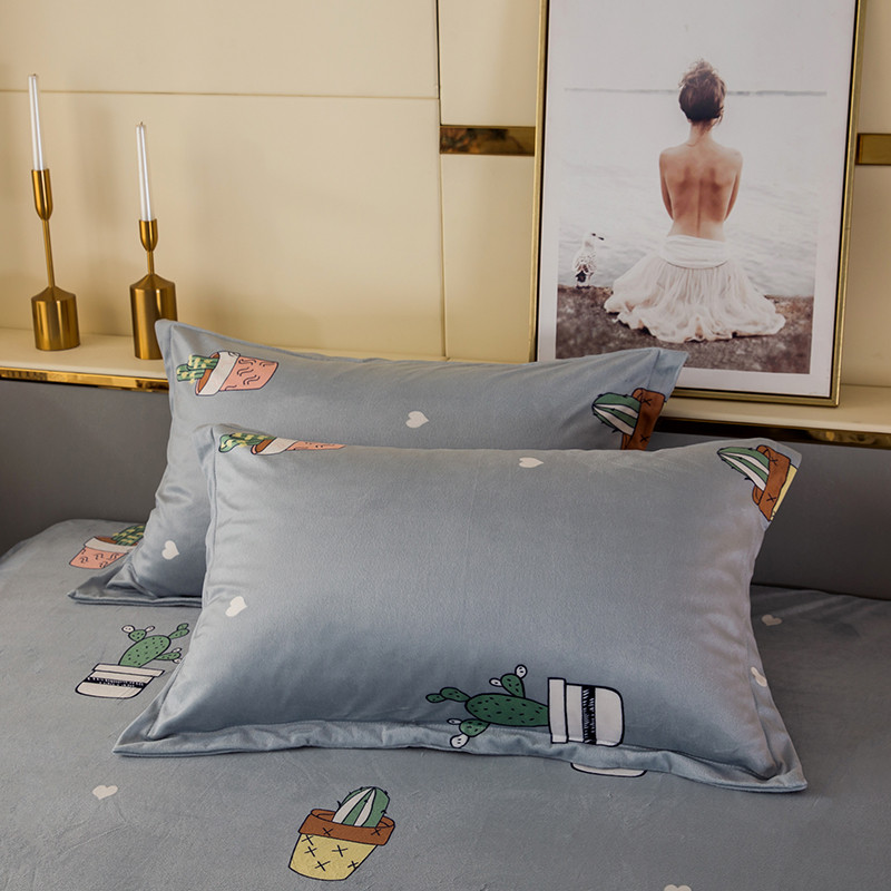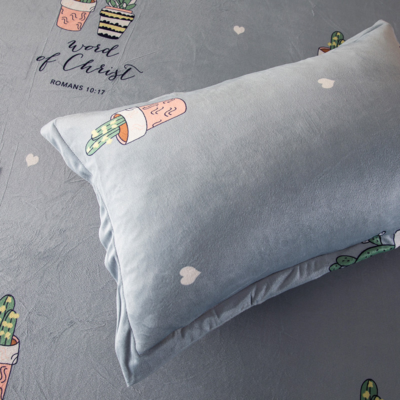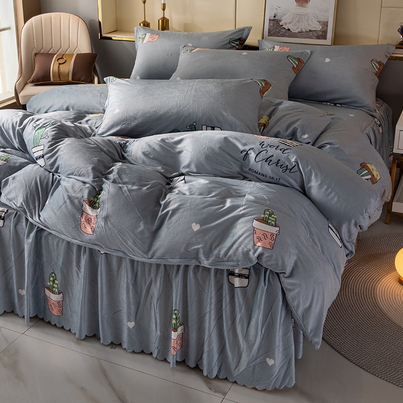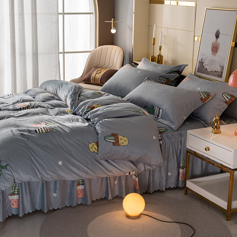 纽缦 2020新款绒单层床裙四件套 仙人掌灰