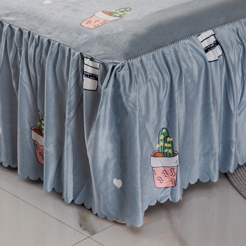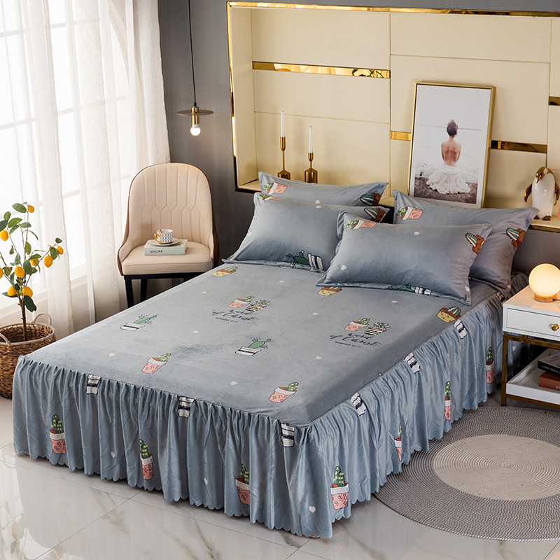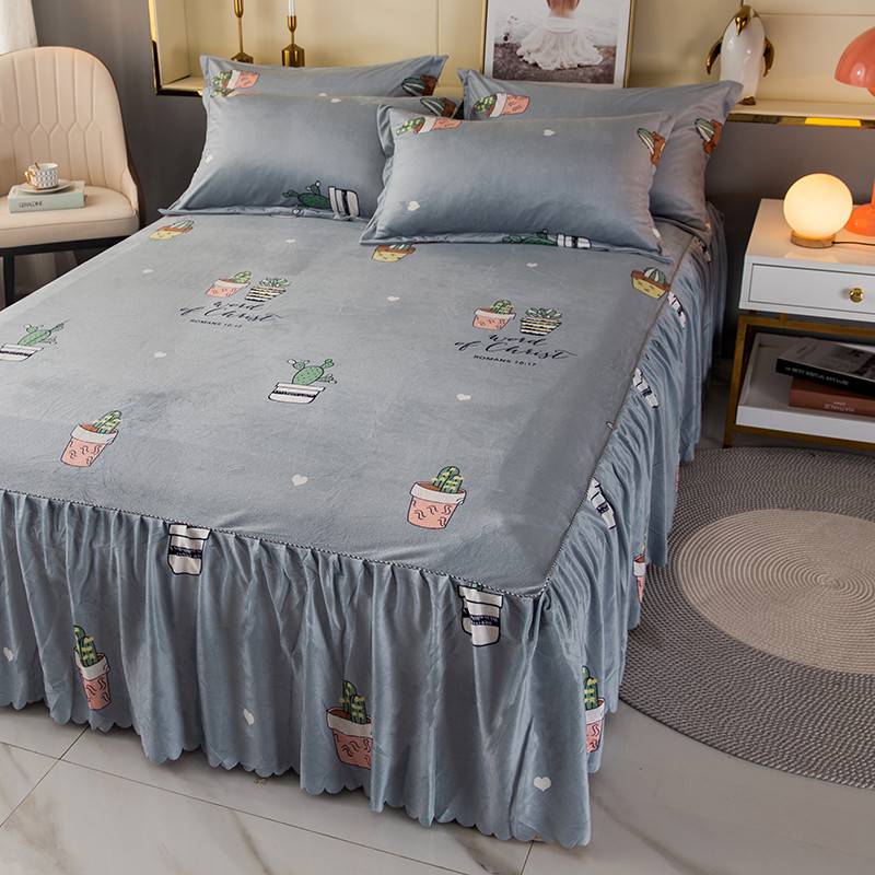 商品名称:纽缦 2020新款绒单层床裙四件套 仙人掌灰