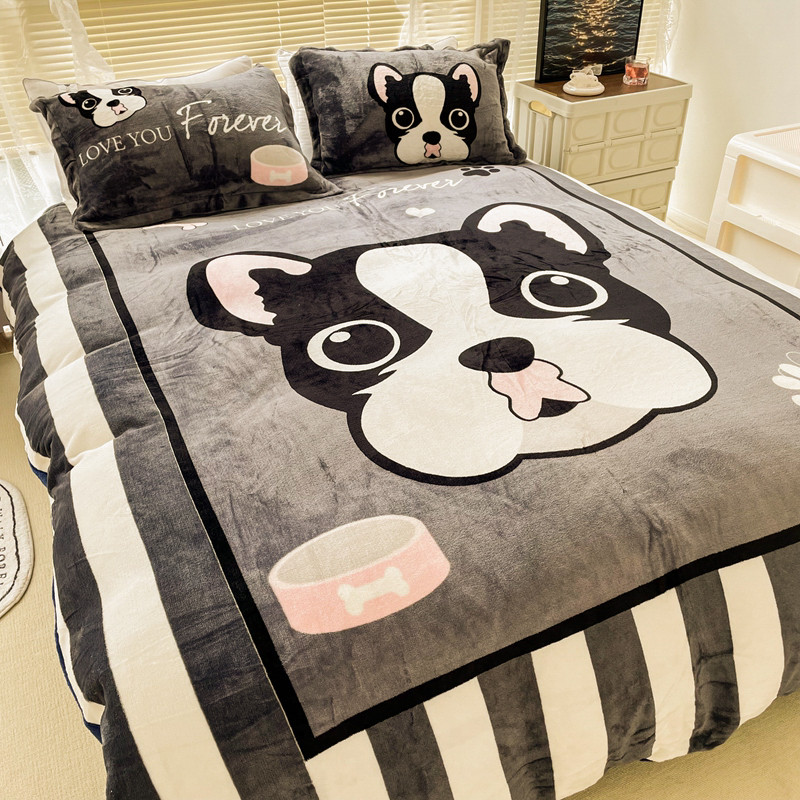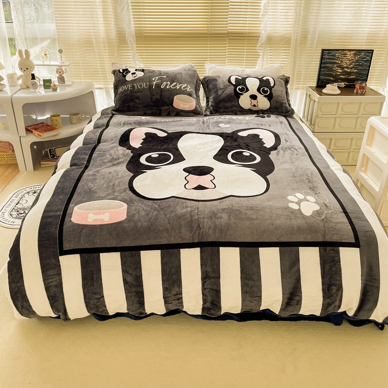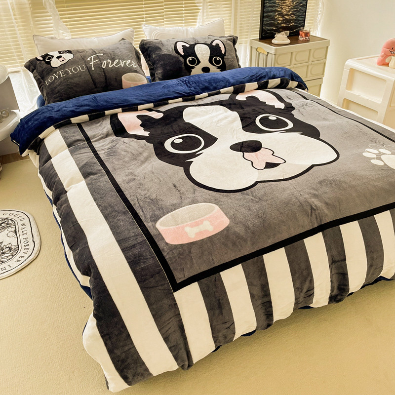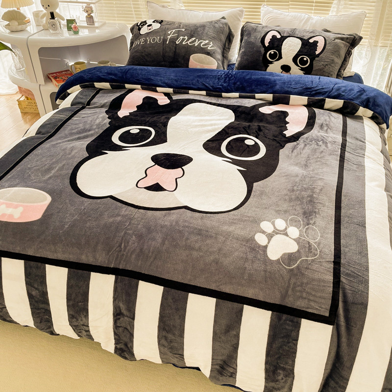 慕尚 2022新款北欧牛奶绒大版四件套实拍图 绅士狗