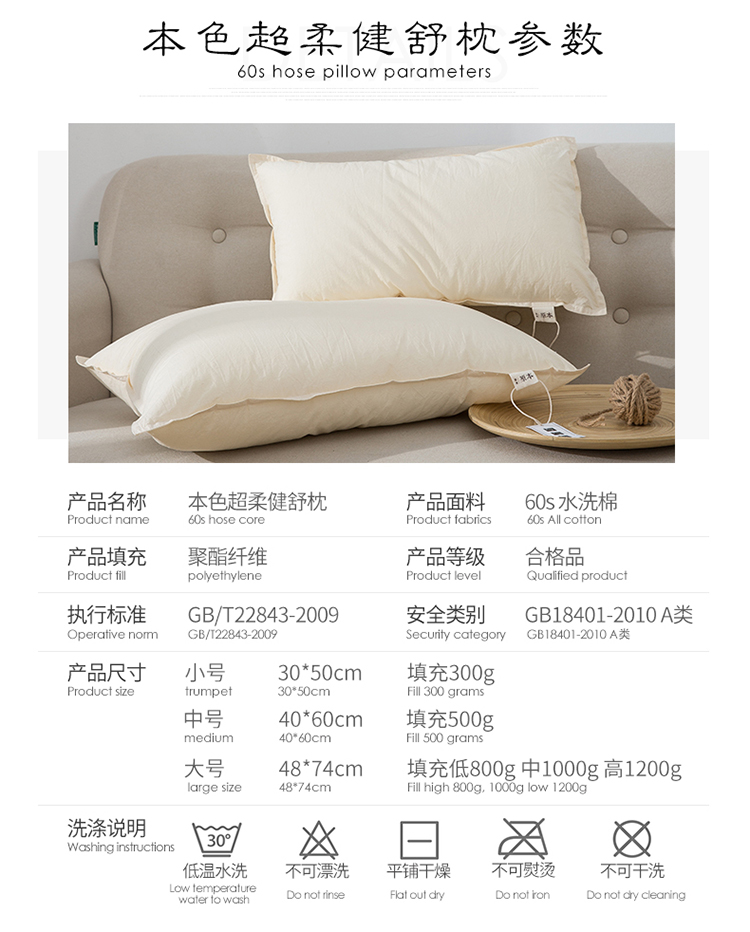商品名称:(总)子和 60水洗棉A类枕头