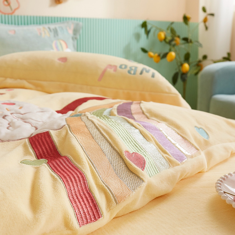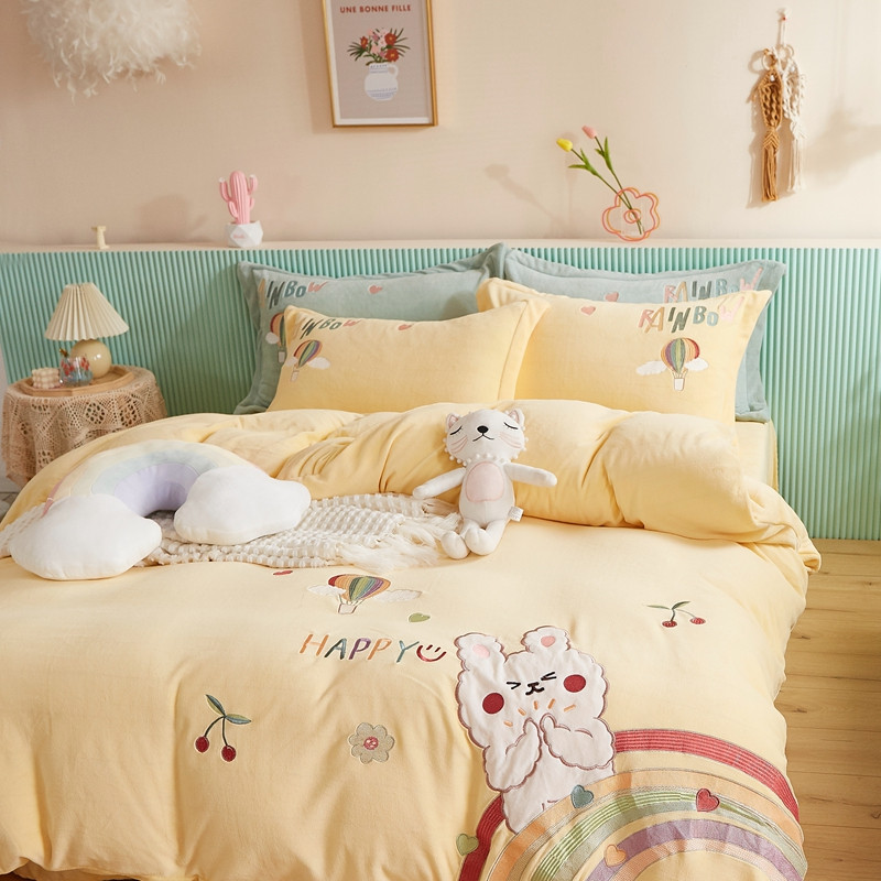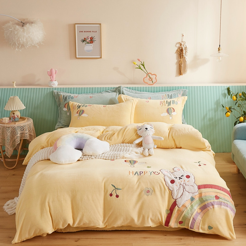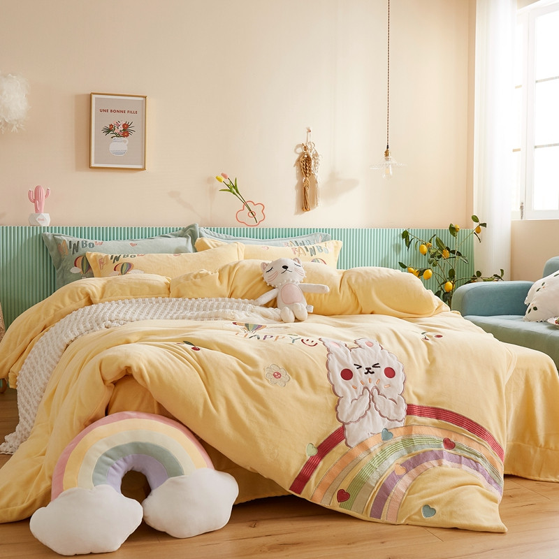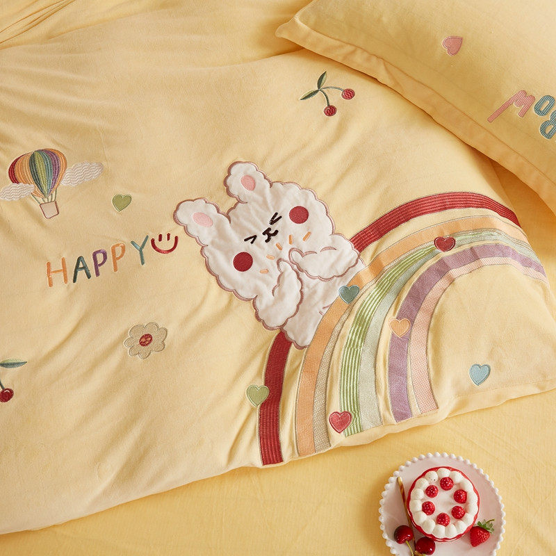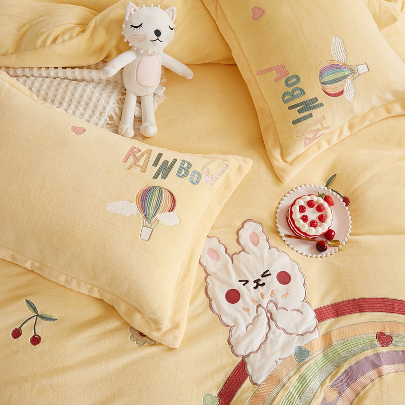 星尚家纺 2021新款牛奶绒宝宝绒四件套 萌小兔-阳光黄