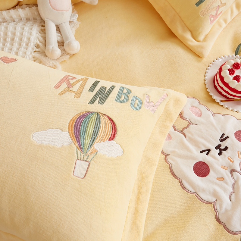 商品名称:星尚家纺 2021新款牛奶绒宝宝绒四件套 萌小兔-阳光黄
