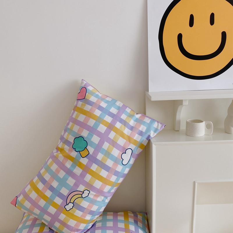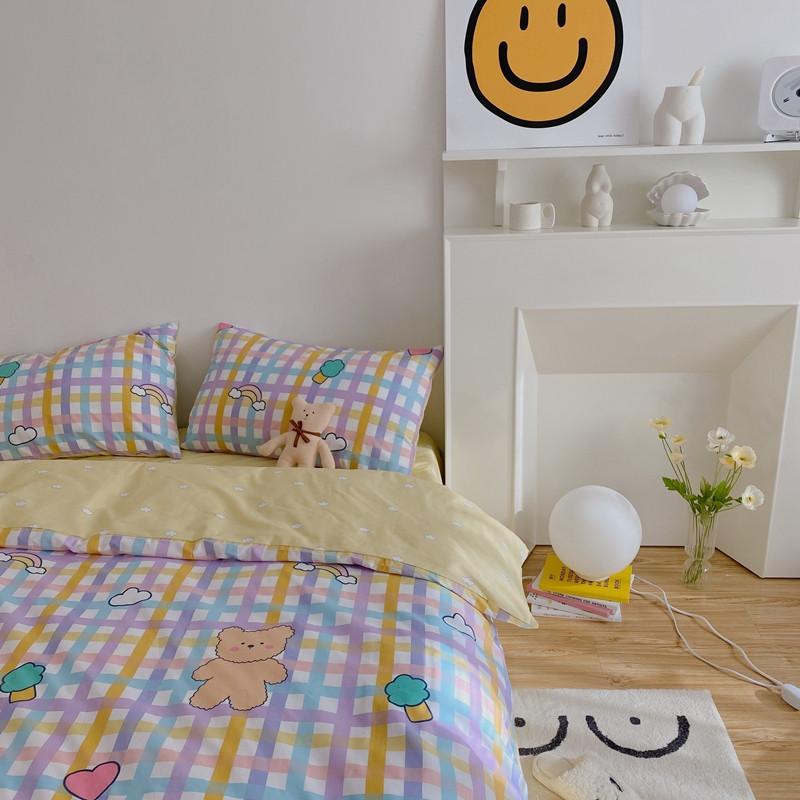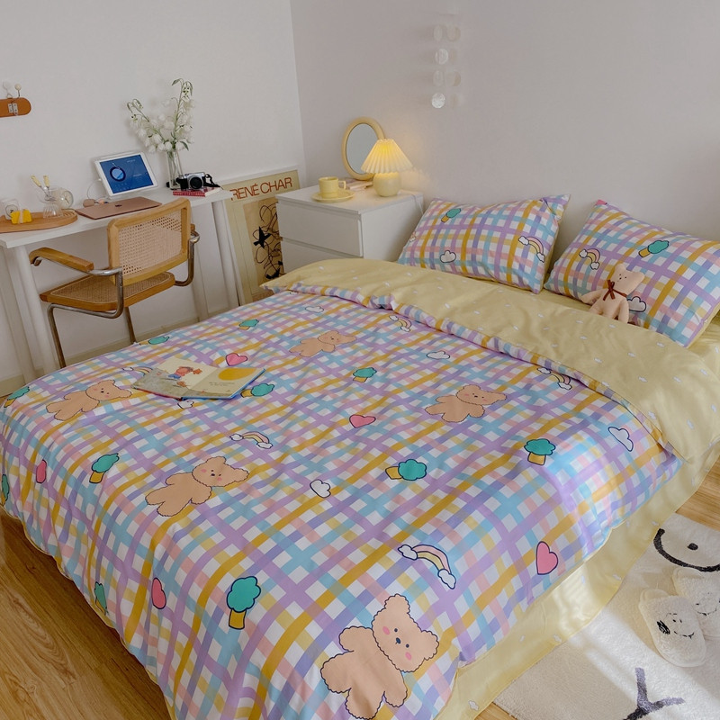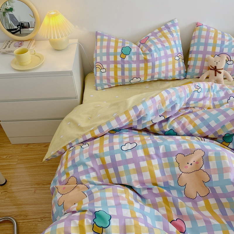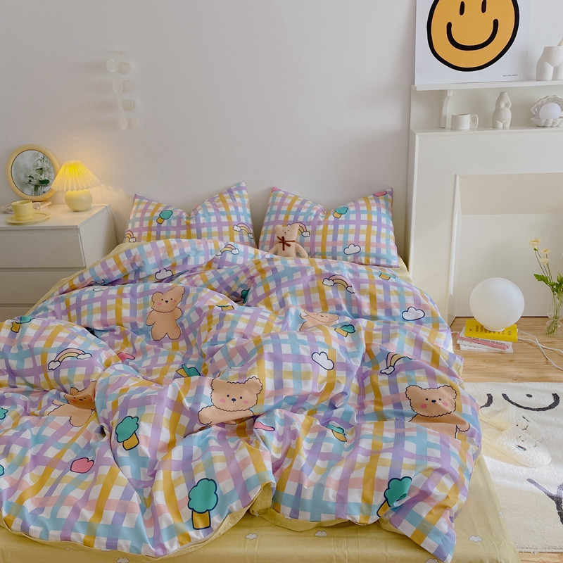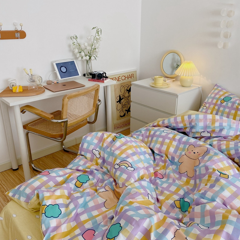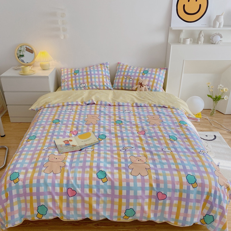 星期八 2021新款13372你好春天系列四件套 紫格小熊