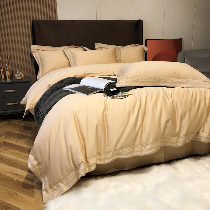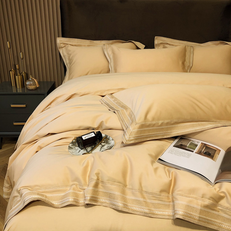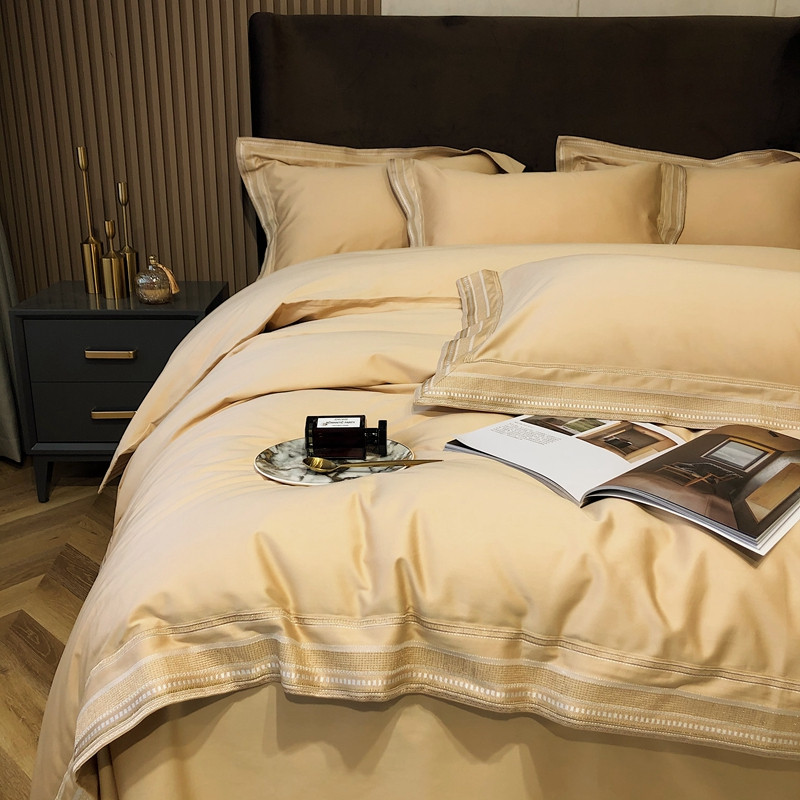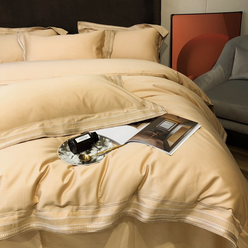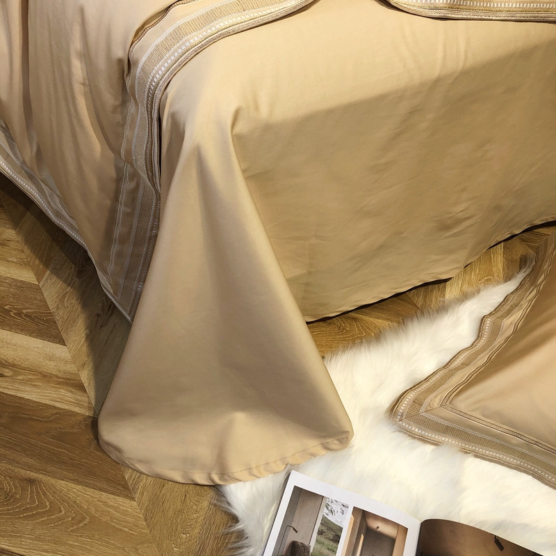 商品名称:太古汇2021新款澳棉高定彩条绣花四件套小香-香槟金