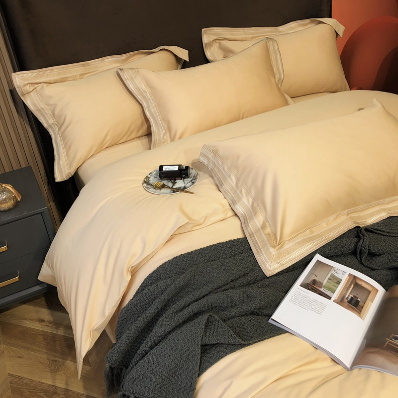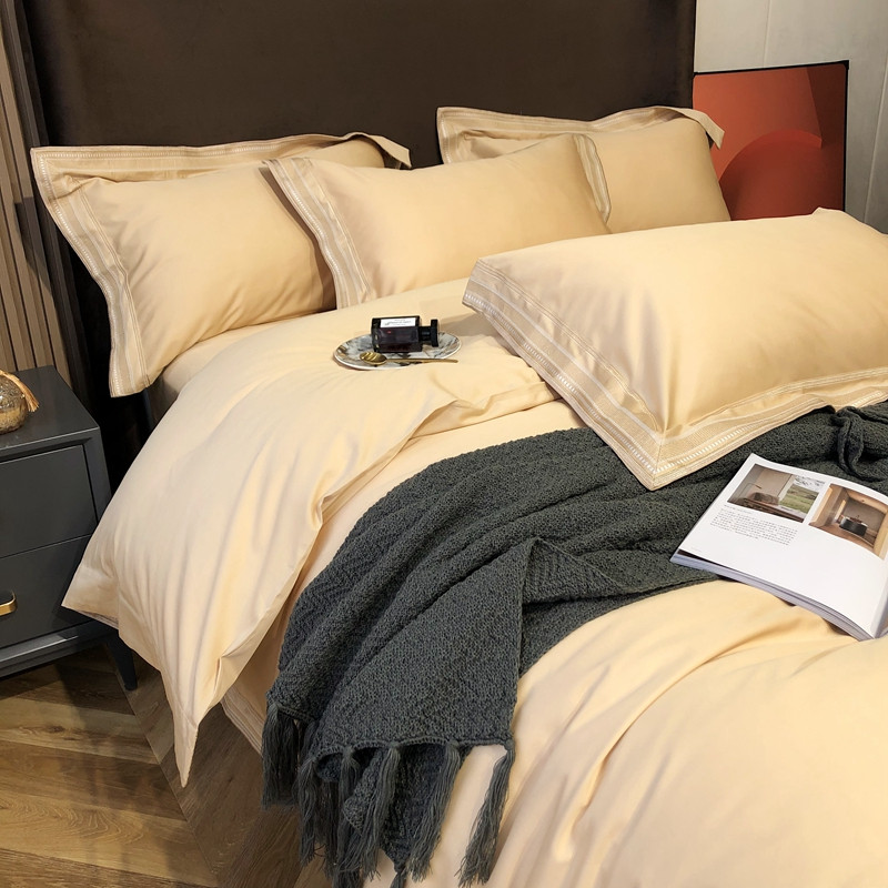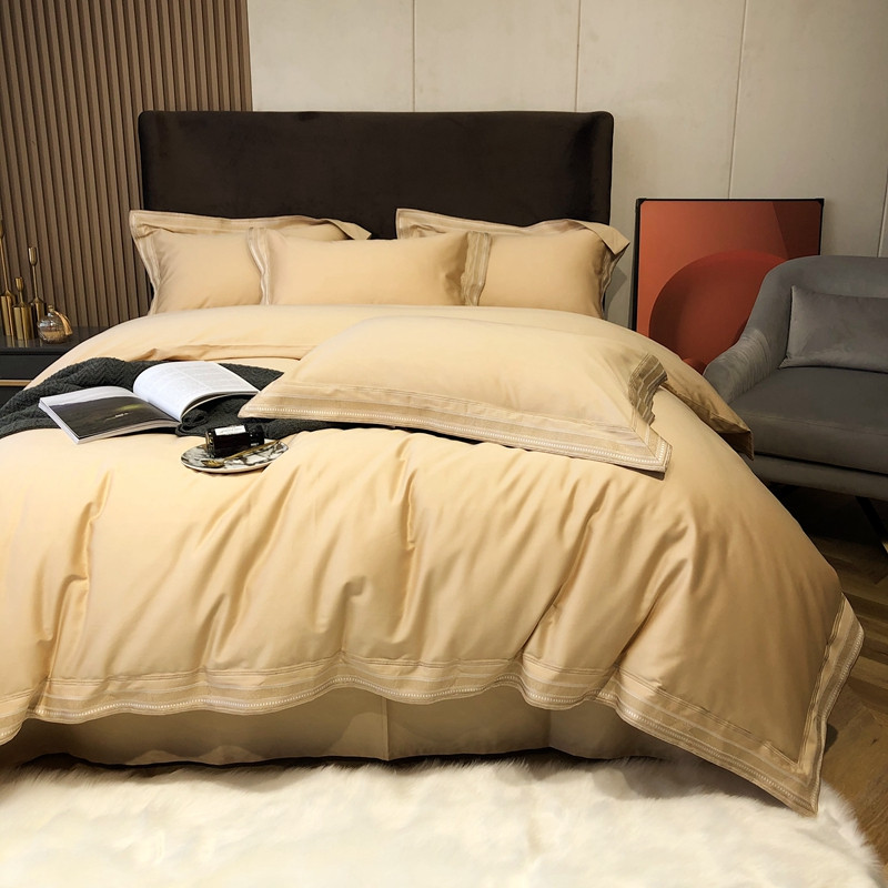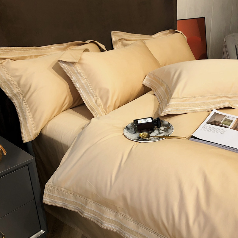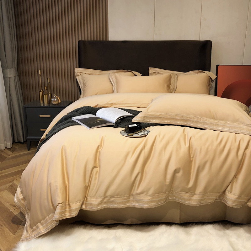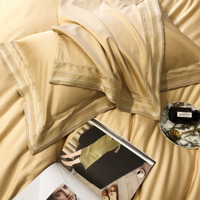 商品名称:太古汇2021新款澳棉高定彩条绣花四件套小香-香槟金