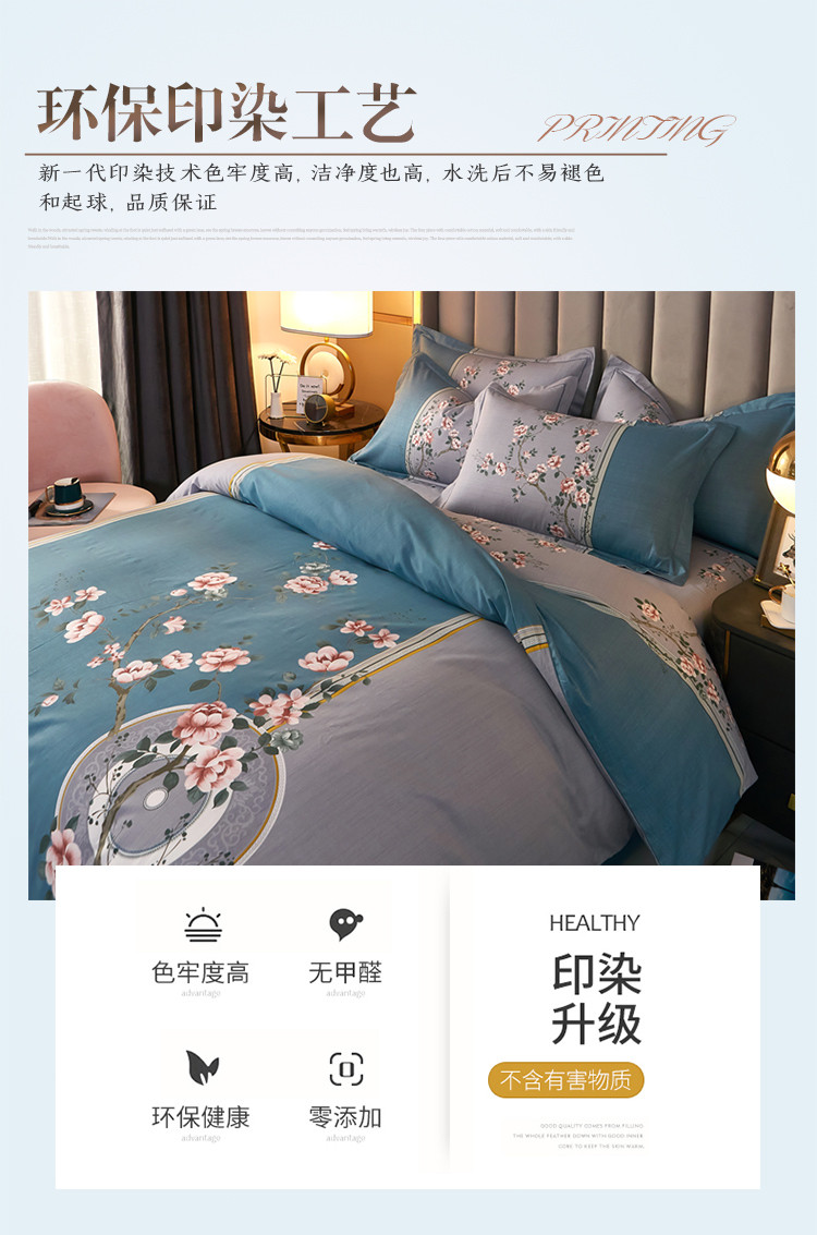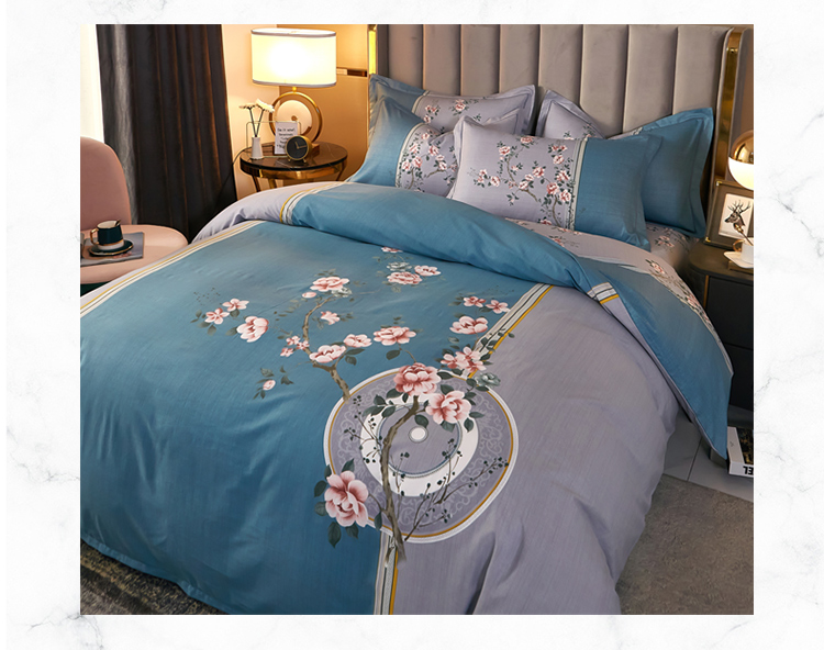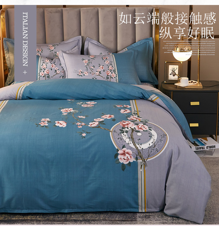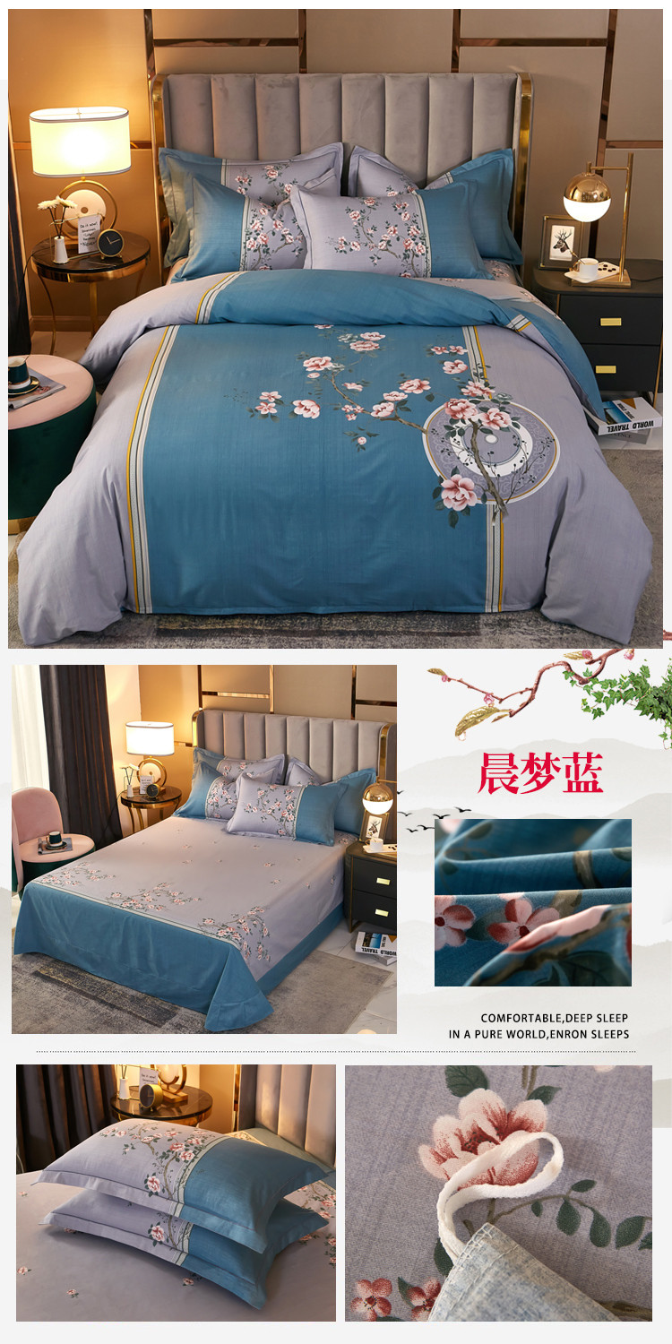 雲归梦2021全棉大版四件套第二批花卉格调系列 晨梦蓝