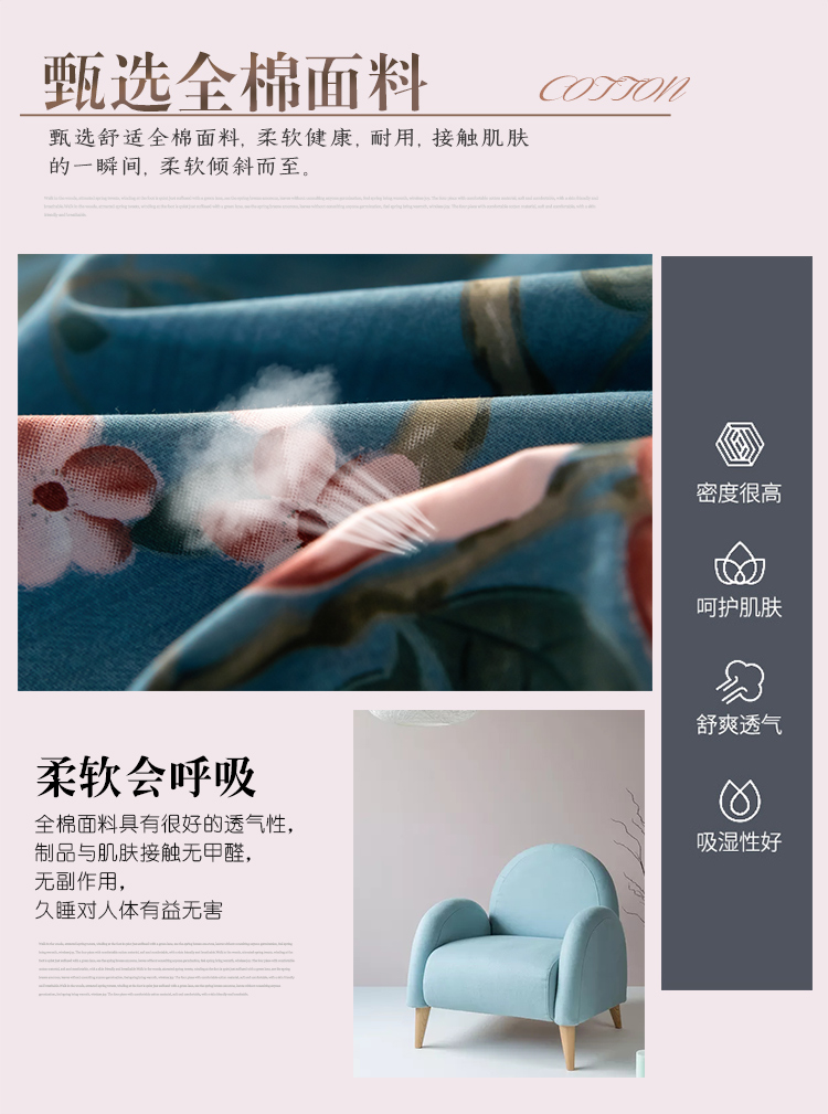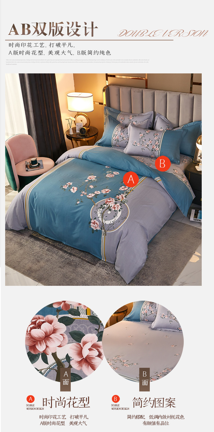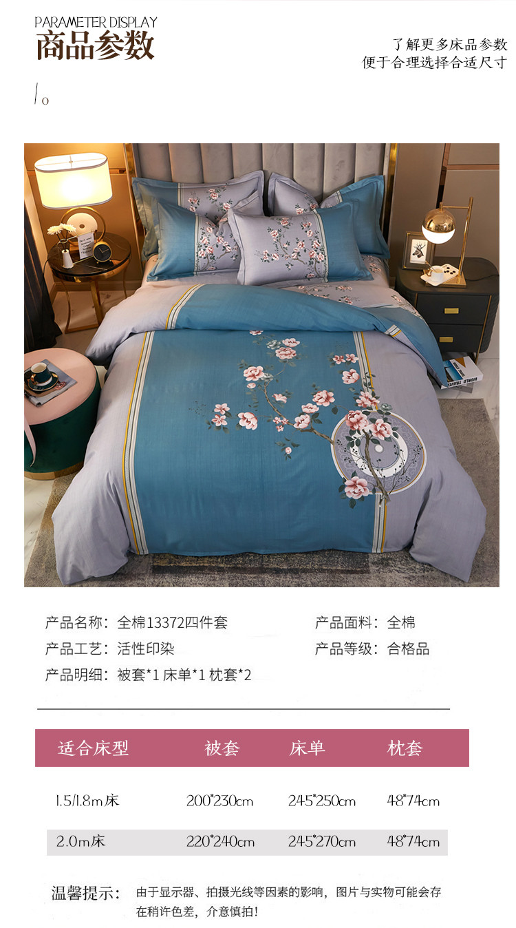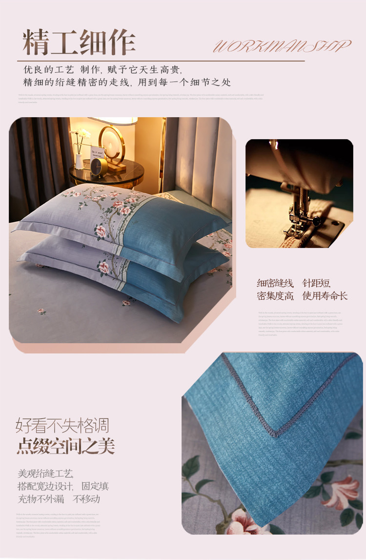 商品名称:雲归梦2021全棉大版四件套第二批花卉格调系列 晨梦蓝