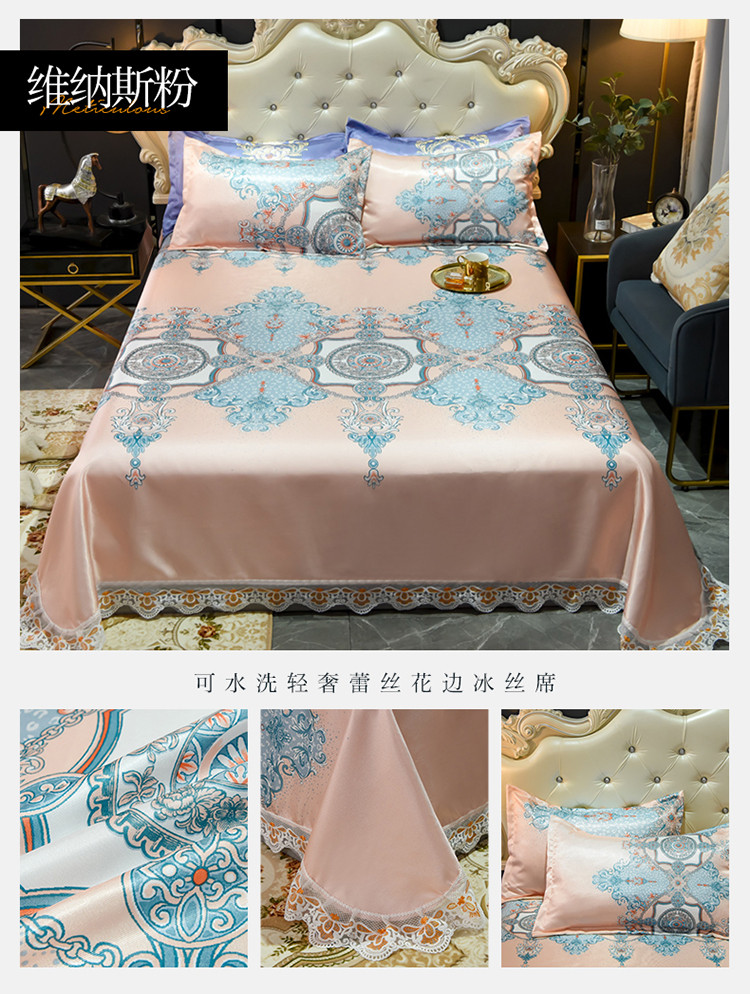 商品名称:ds生活馆 2021新款欧式蕾丝花边床单款凉席冰丝席维纳斯粉