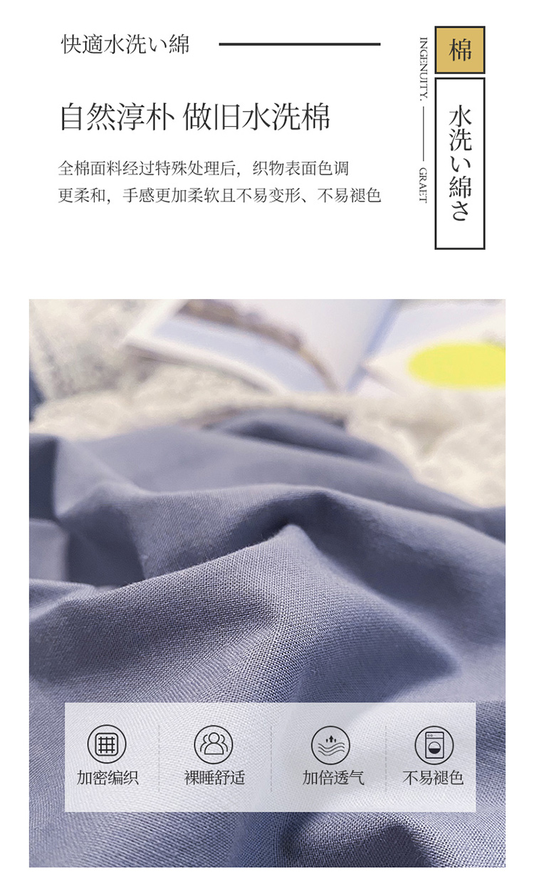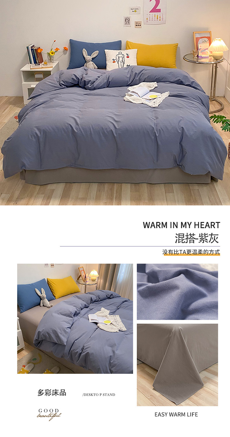 商品名称:蓝巢2021新款全棉水洗棉混搭款四件套实拍图 混搭-紫灰