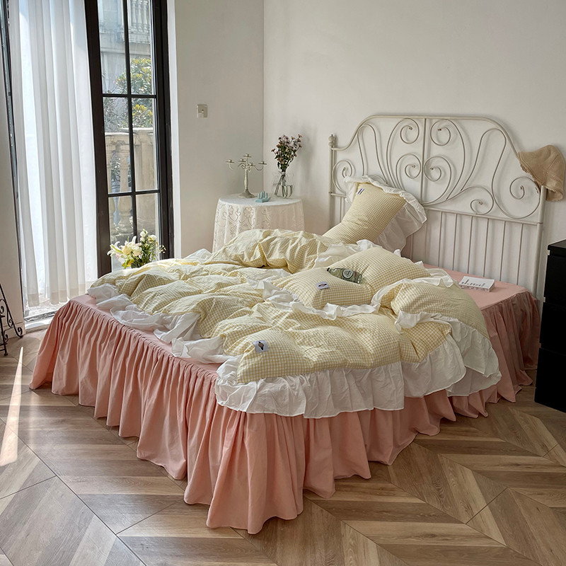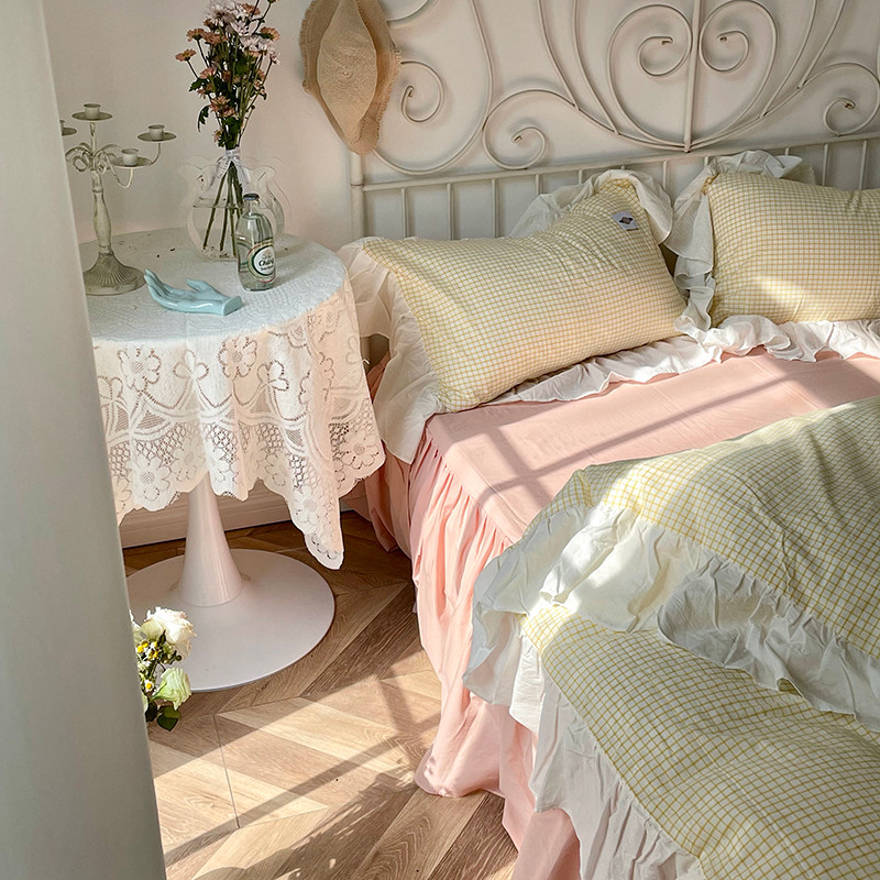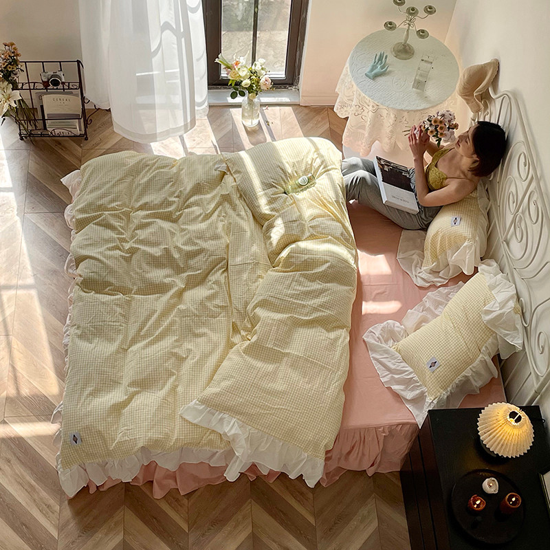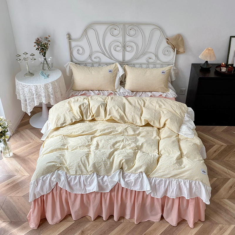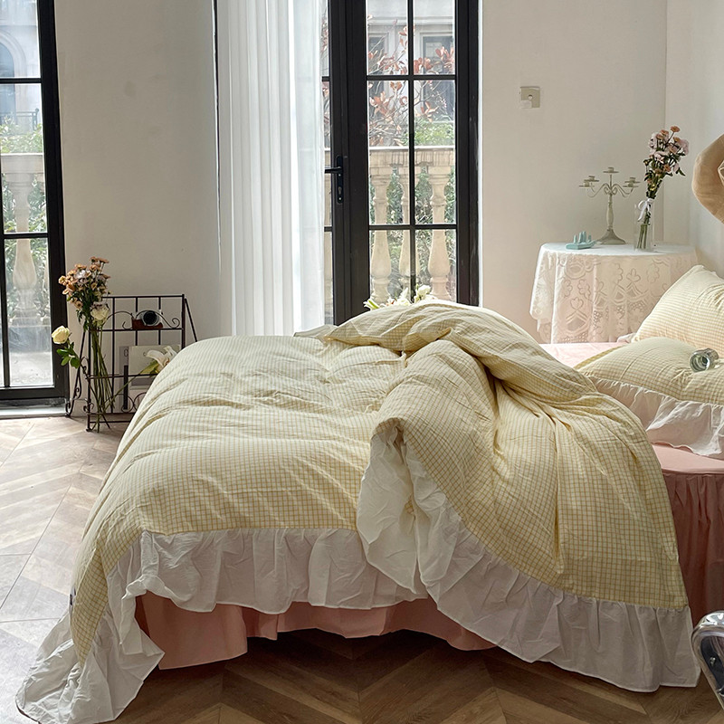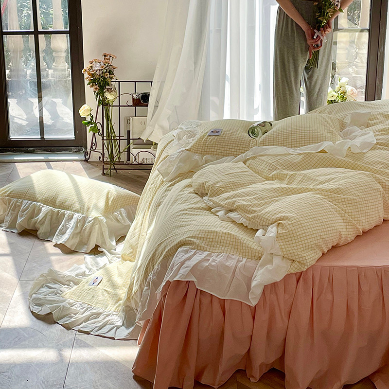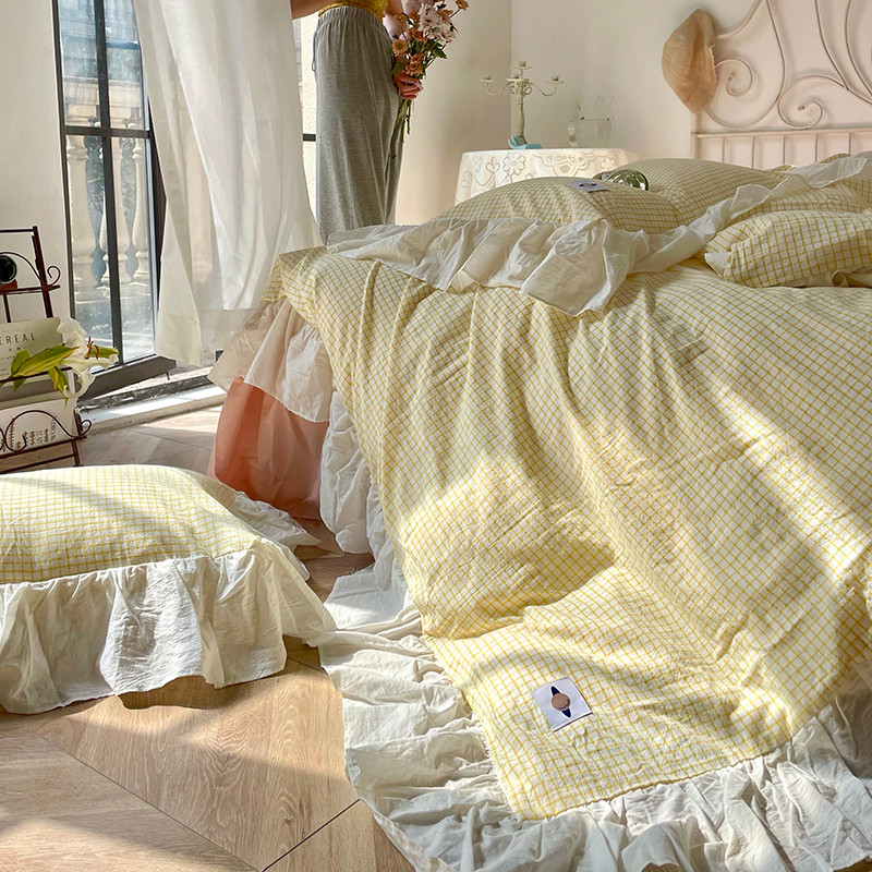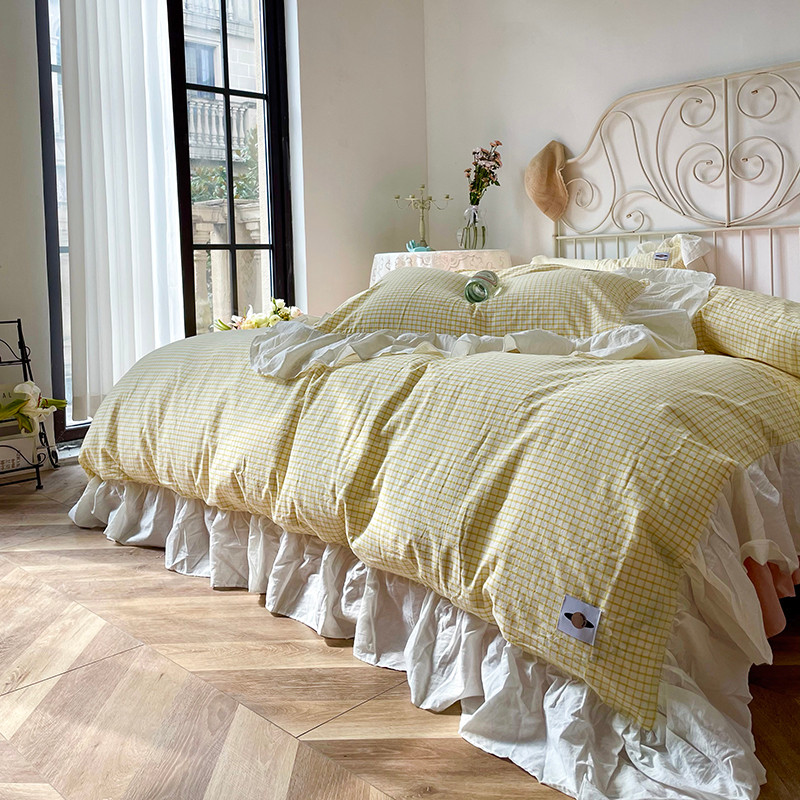 洋铭区 2021新款法式清新水洗棉四件套 柠檬格