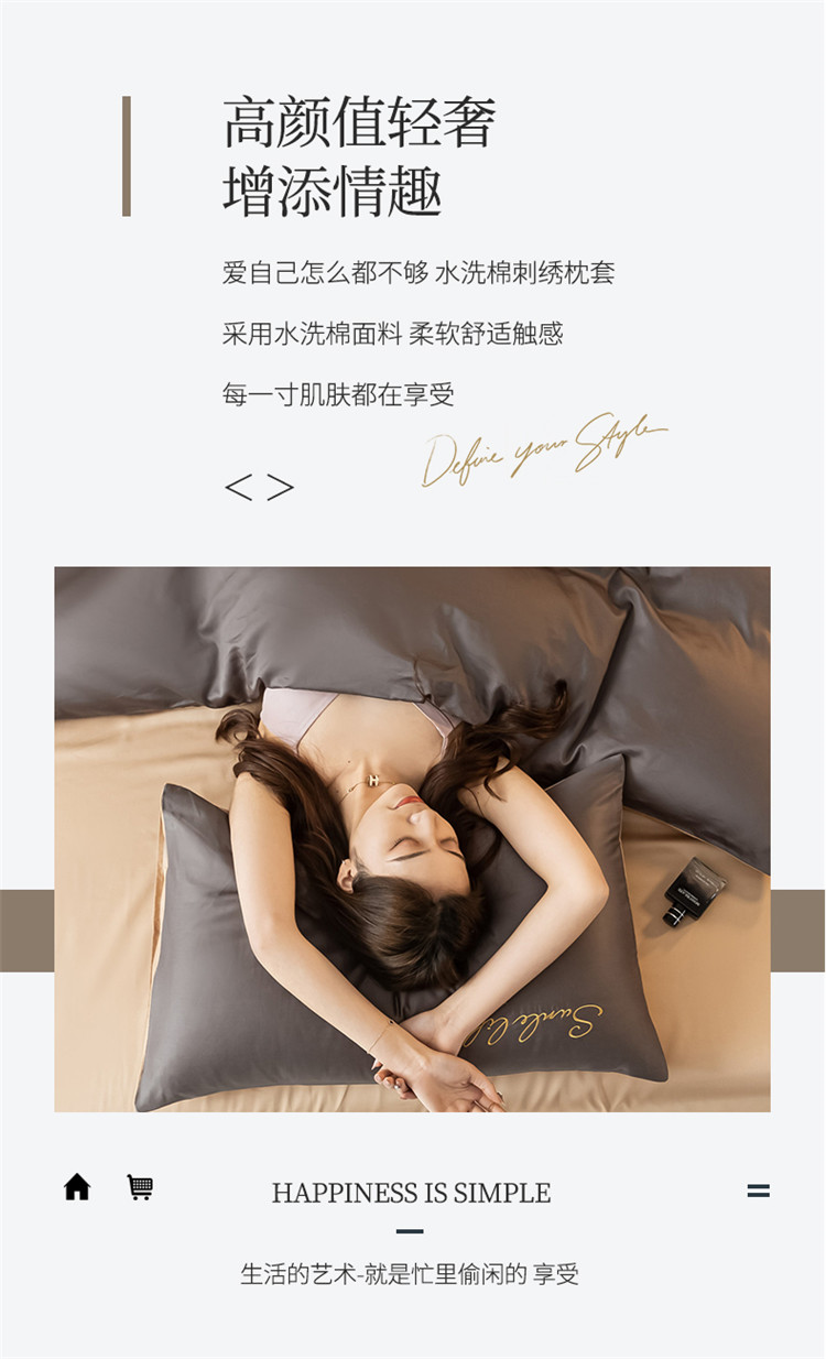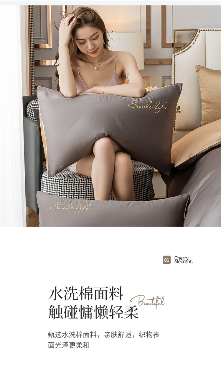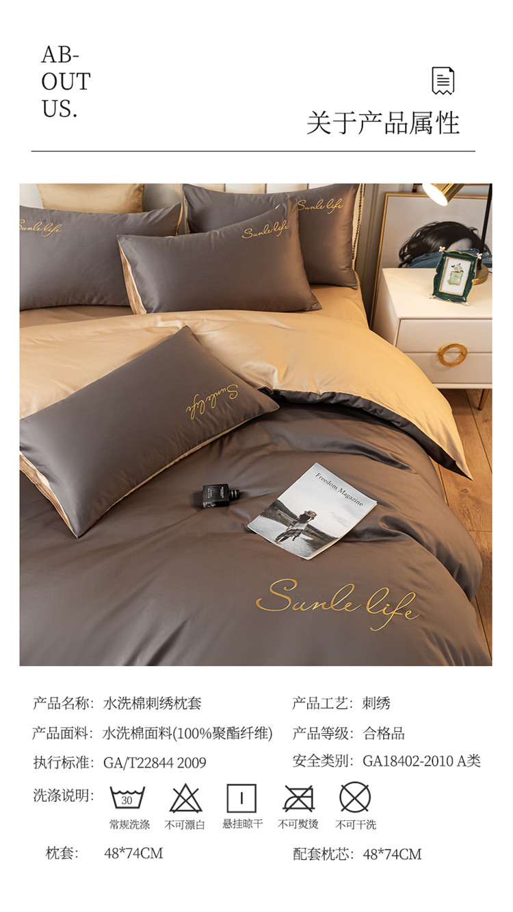 商品名称:古吉梦 2024新款水洗棉-S双拼单品枕套 高级灰
