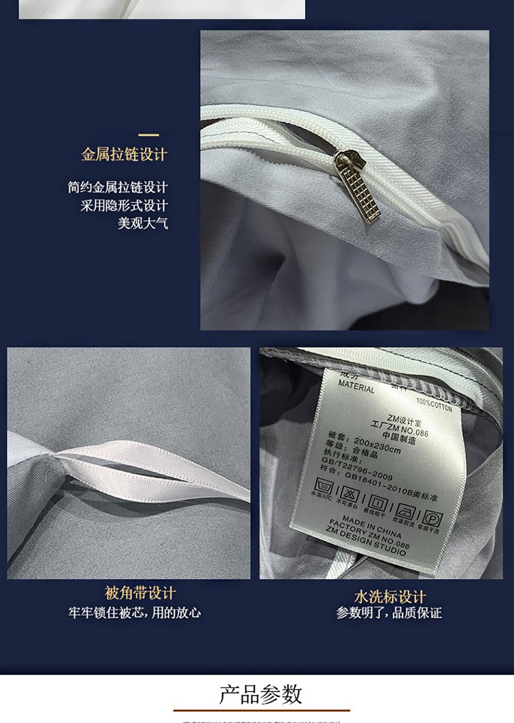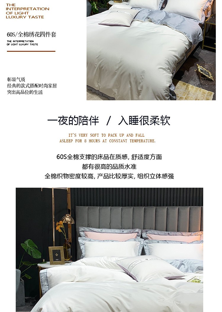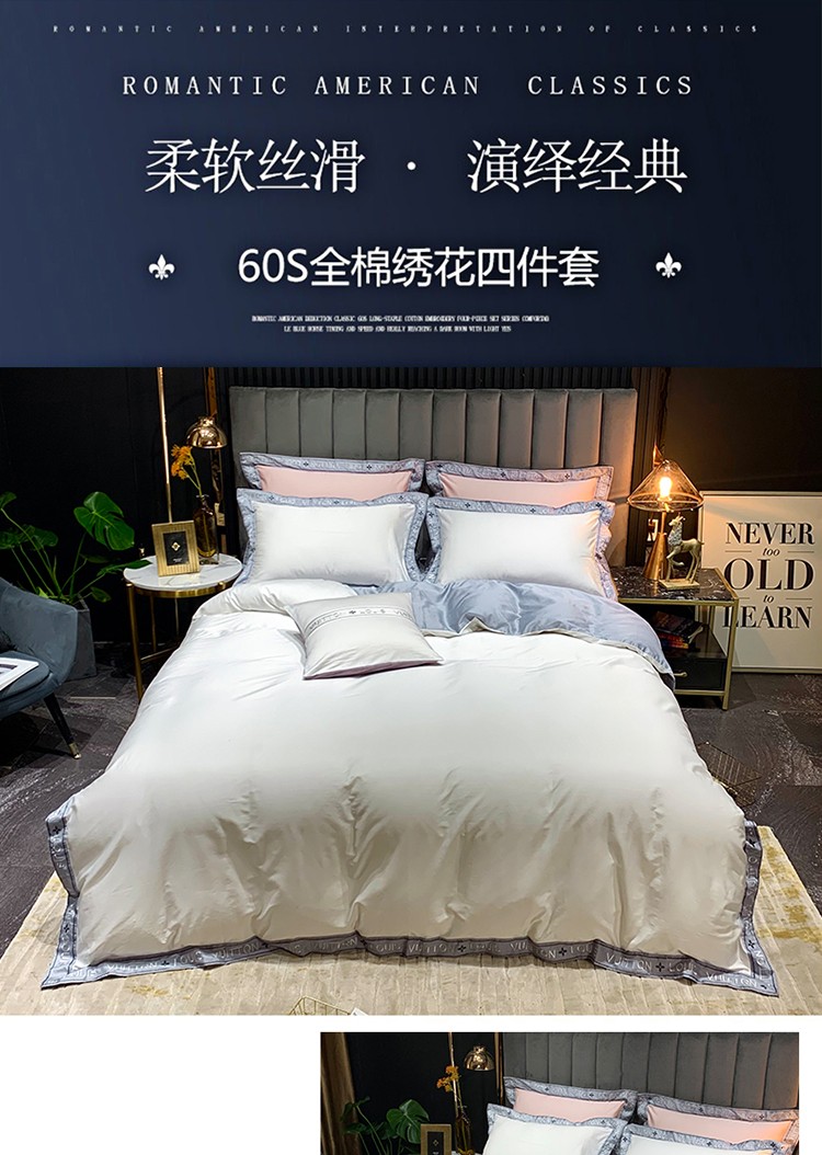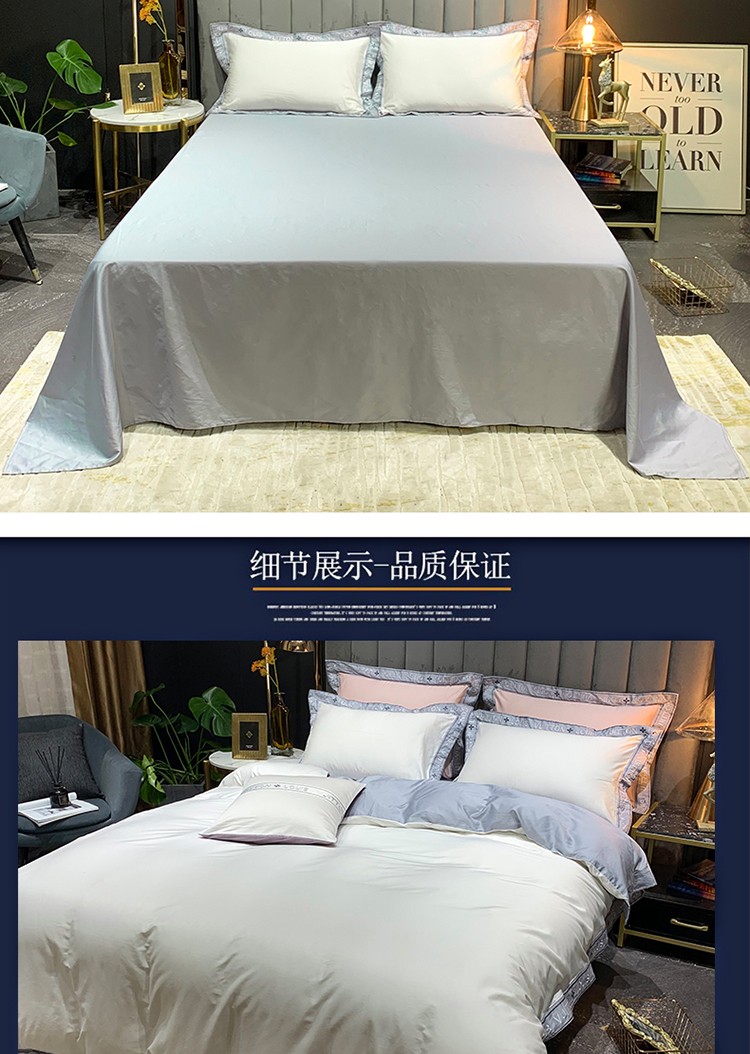 商品名称:青竹苑2021新款轻奢风60S长绒棉四件套贵族白加灰