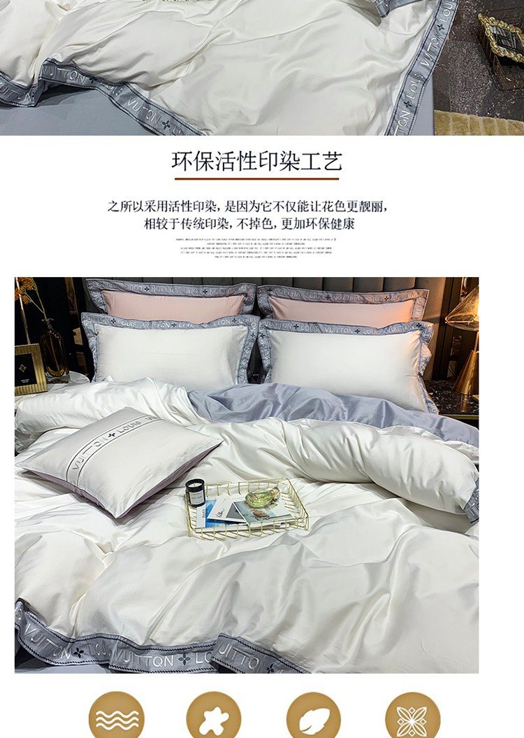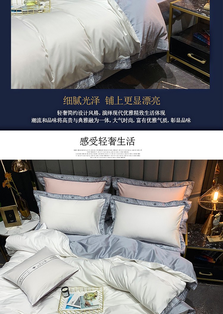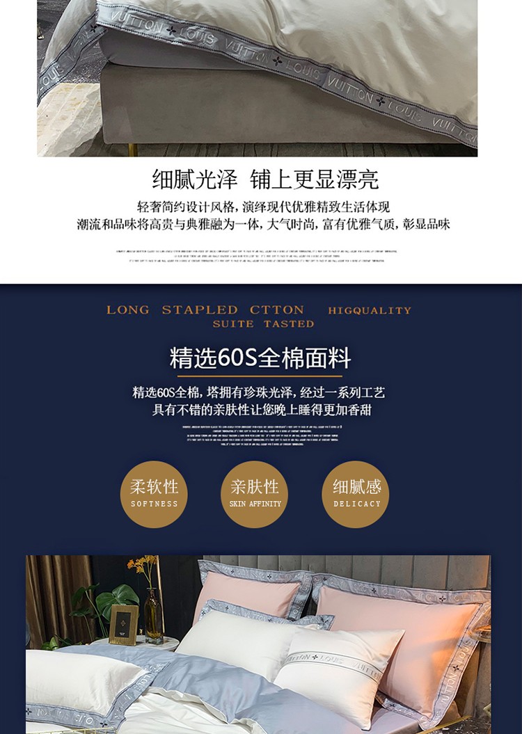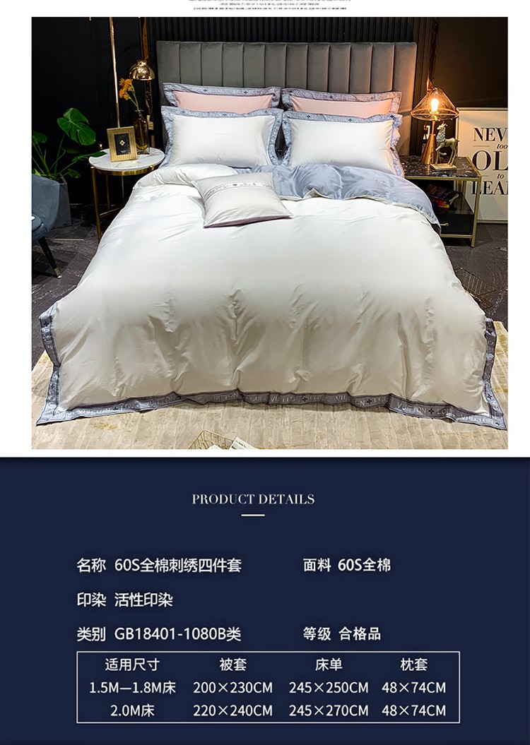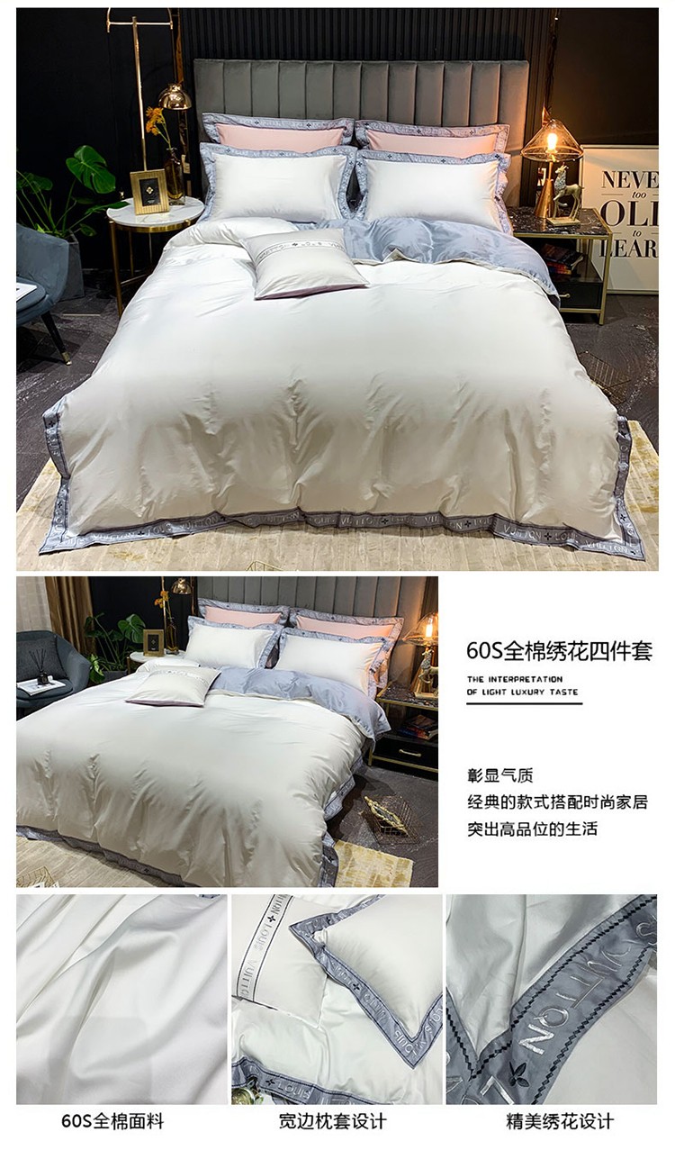 商品名称:青竹苑2021新款轻奢风60S长绒棉四件套贵族白加灰