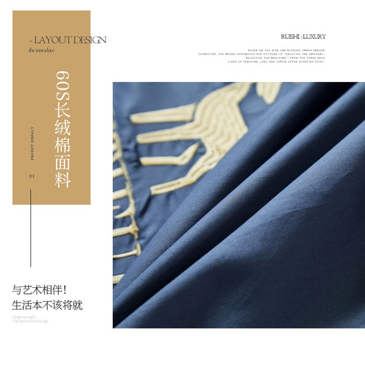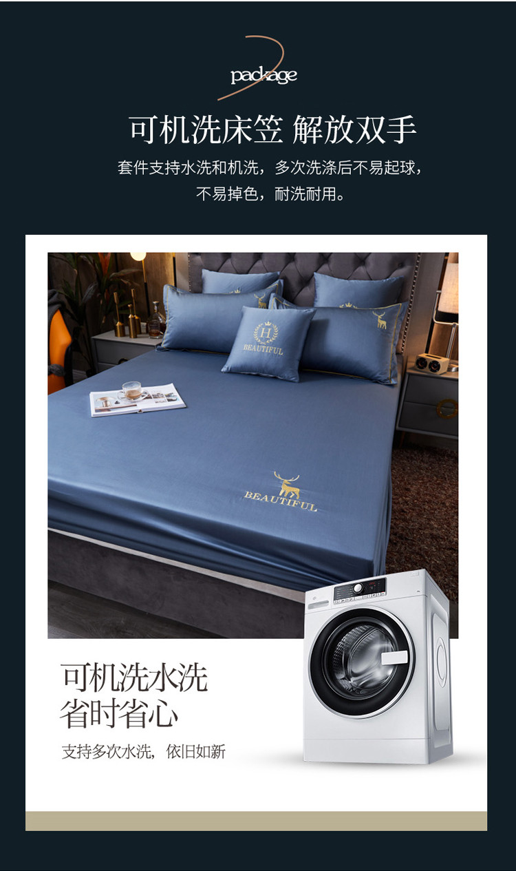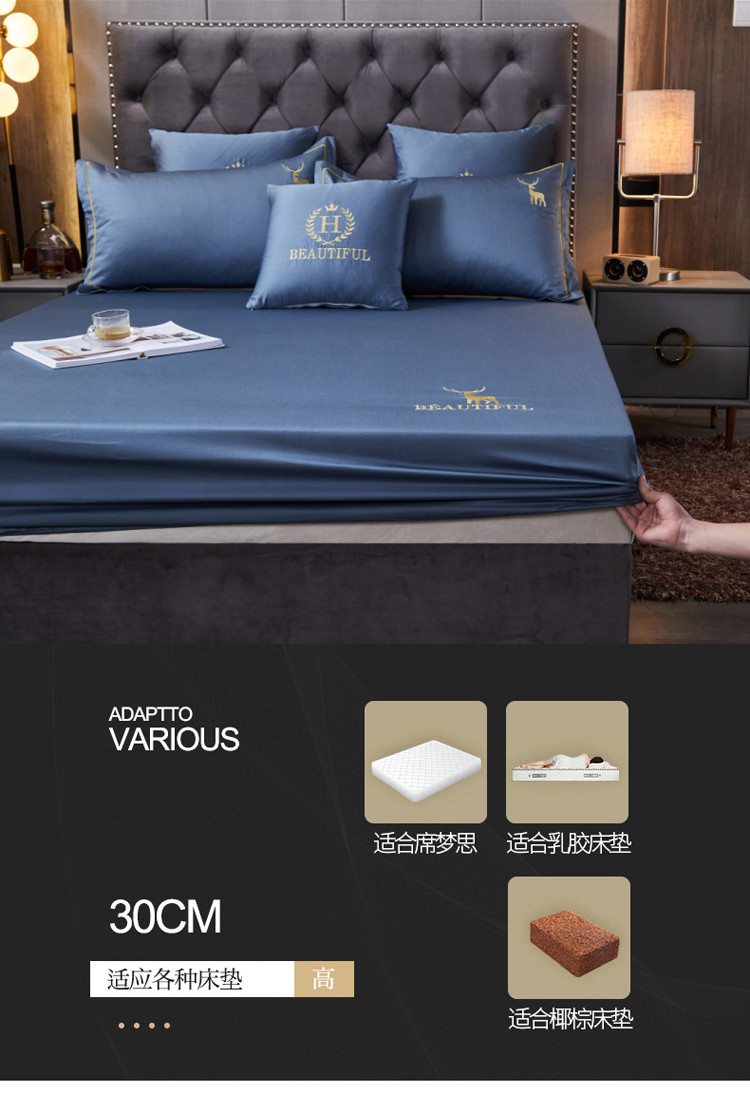 商品名称:菊上 2021新款60长绒棉-单品床笠(幸福鹿系列) 海青蓝