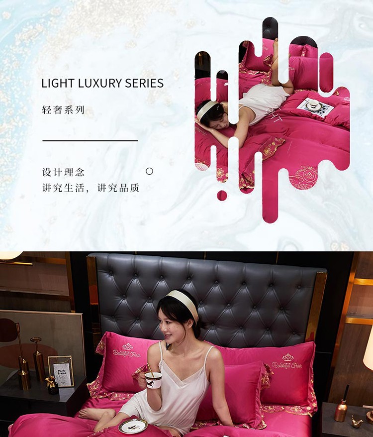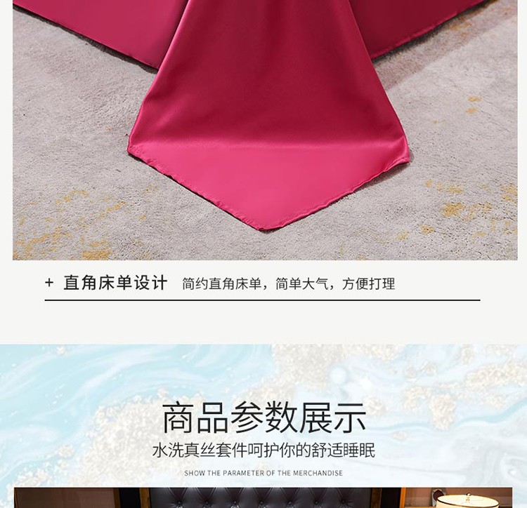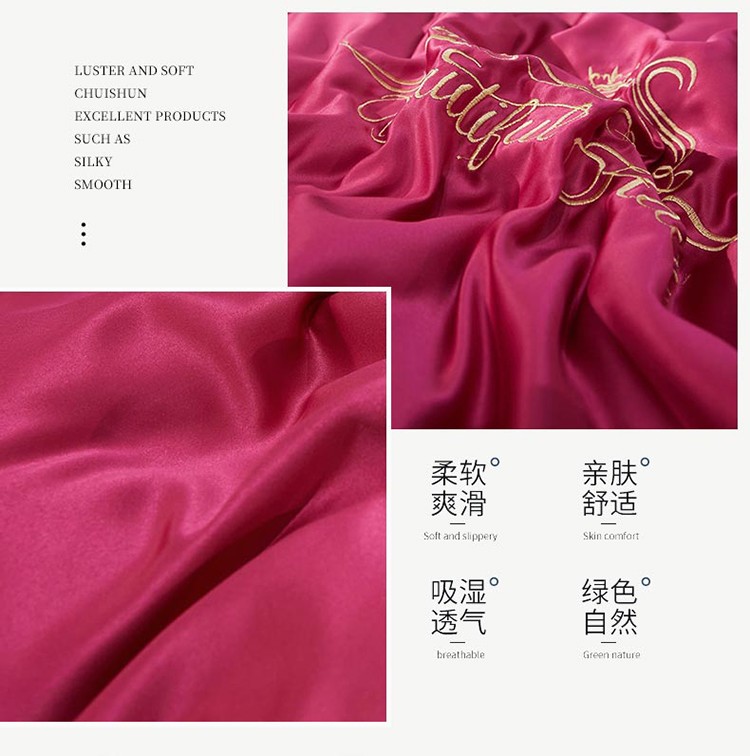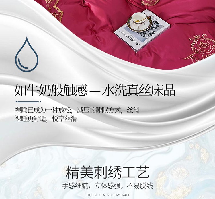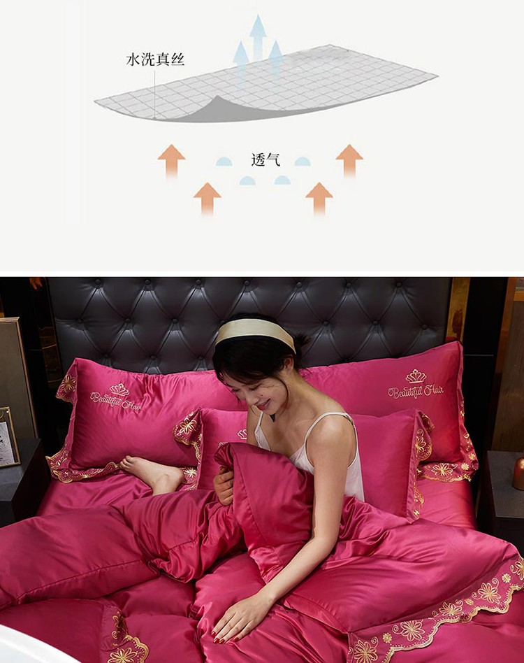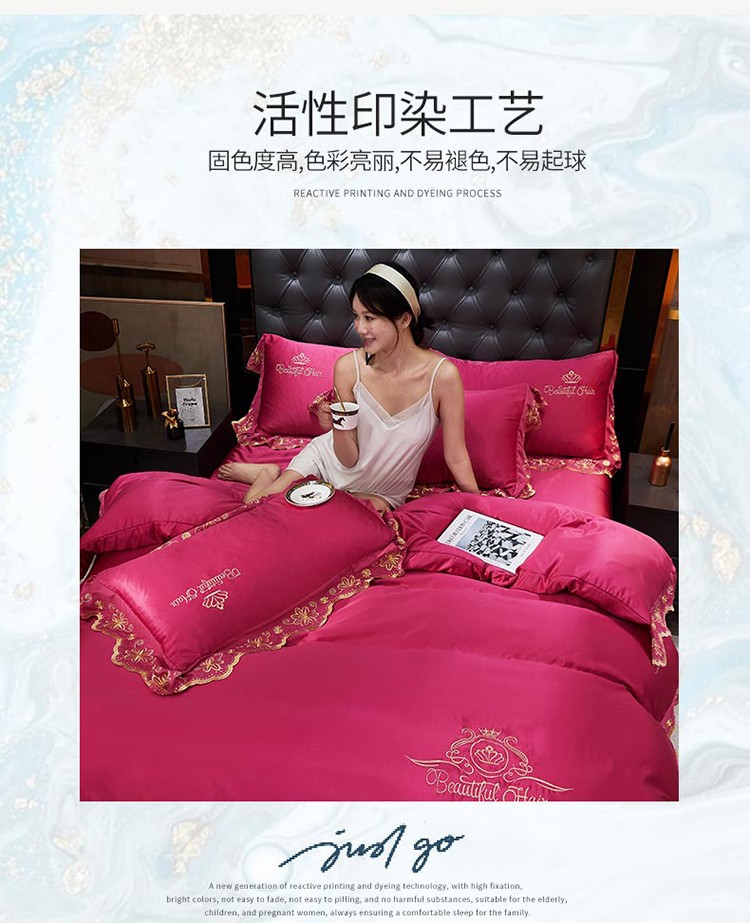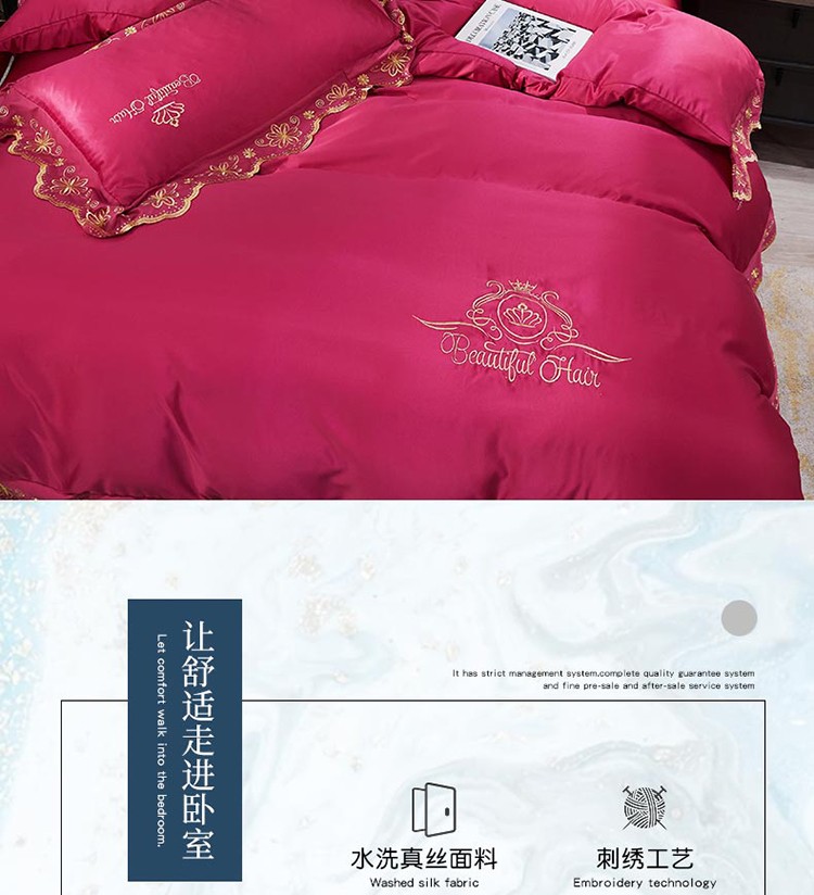 商品名称:铠畅 新款纳威轻奢绣花水洗真丝四件套春夏蕾丝刺绣床单款天丝四件套 枣红