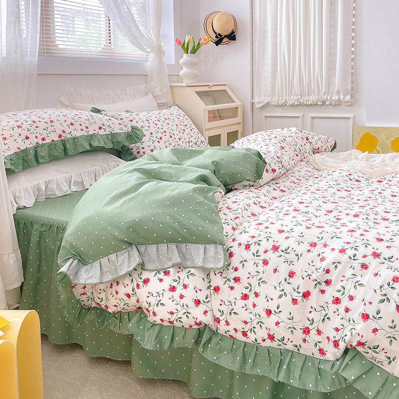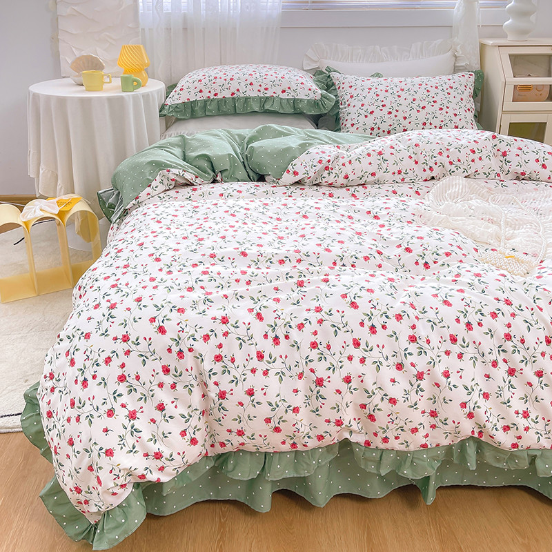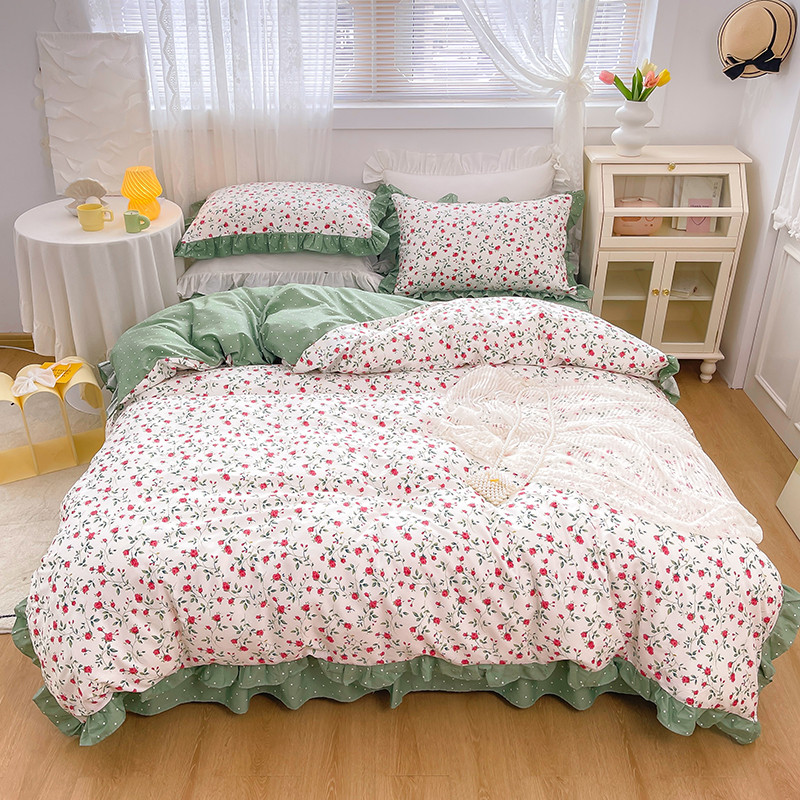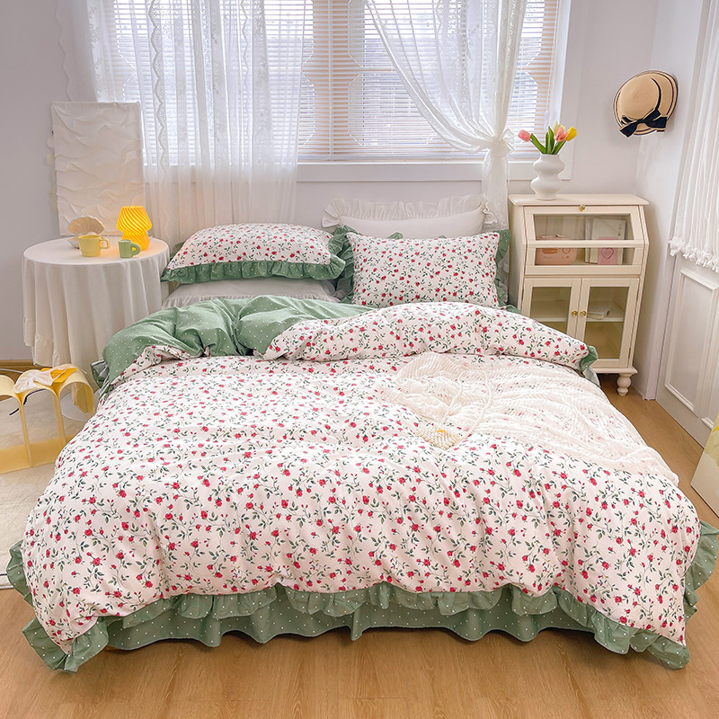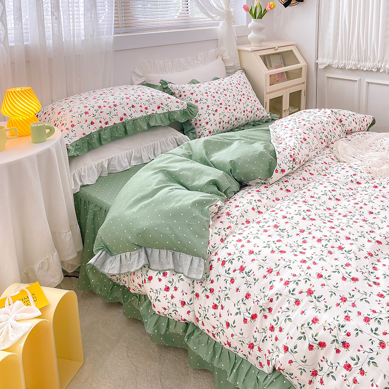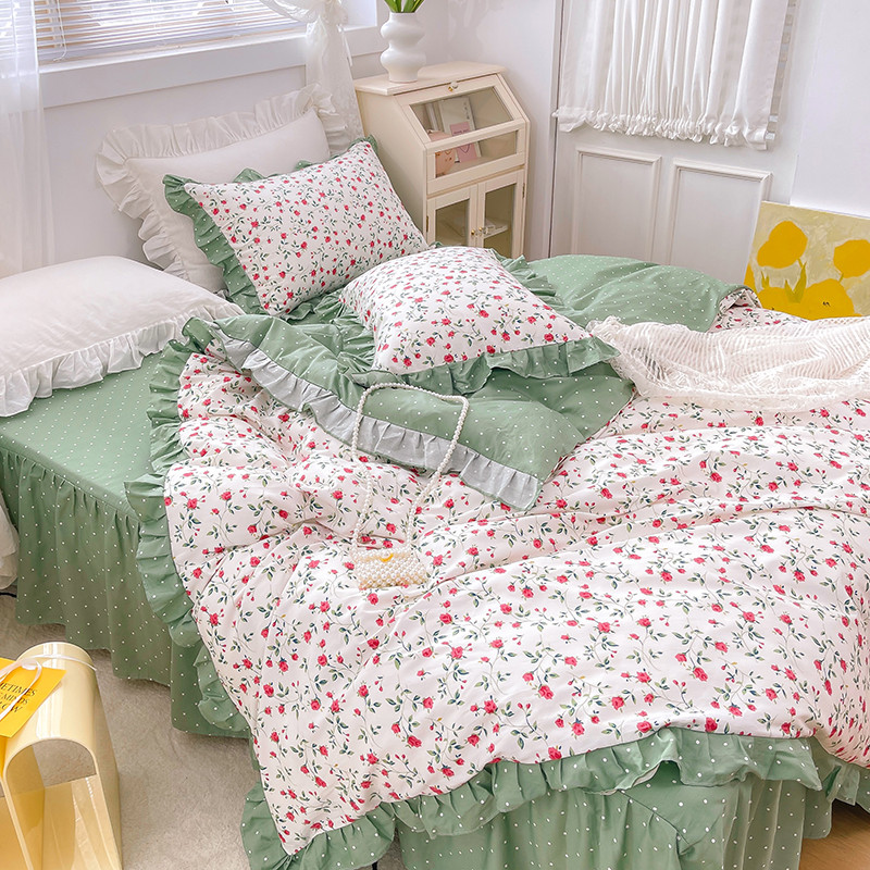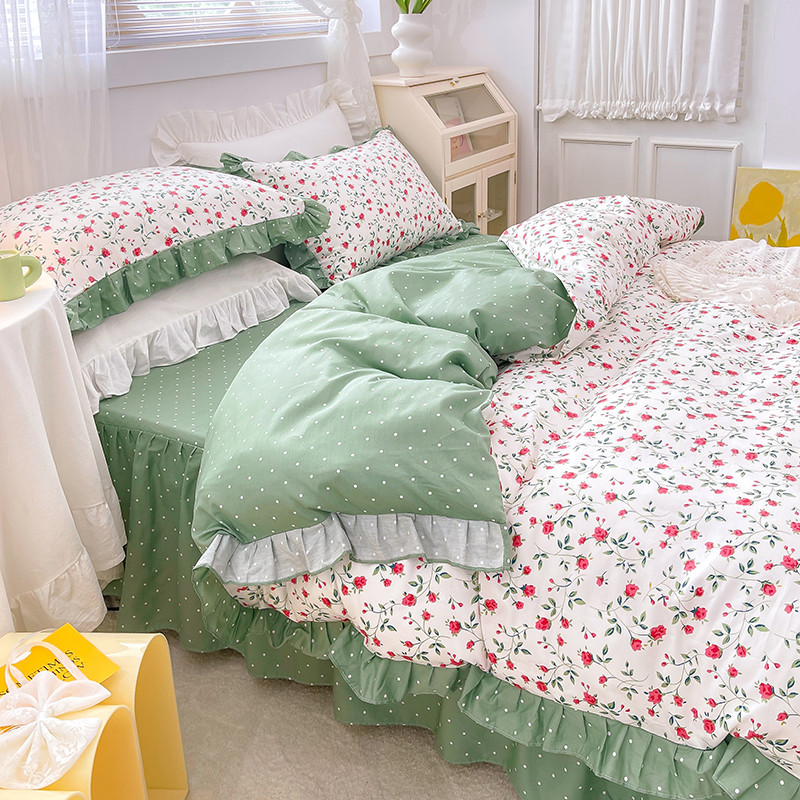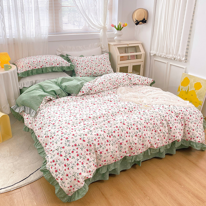 金丝鸟 2021新款全棉韩版床裙款四件套 法尔曼床裙款