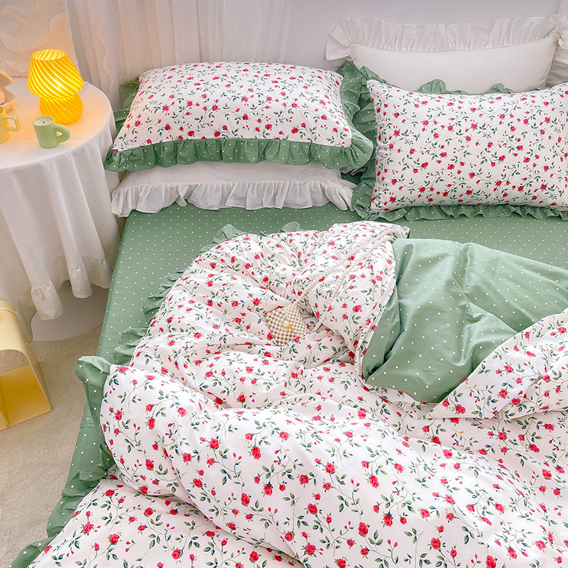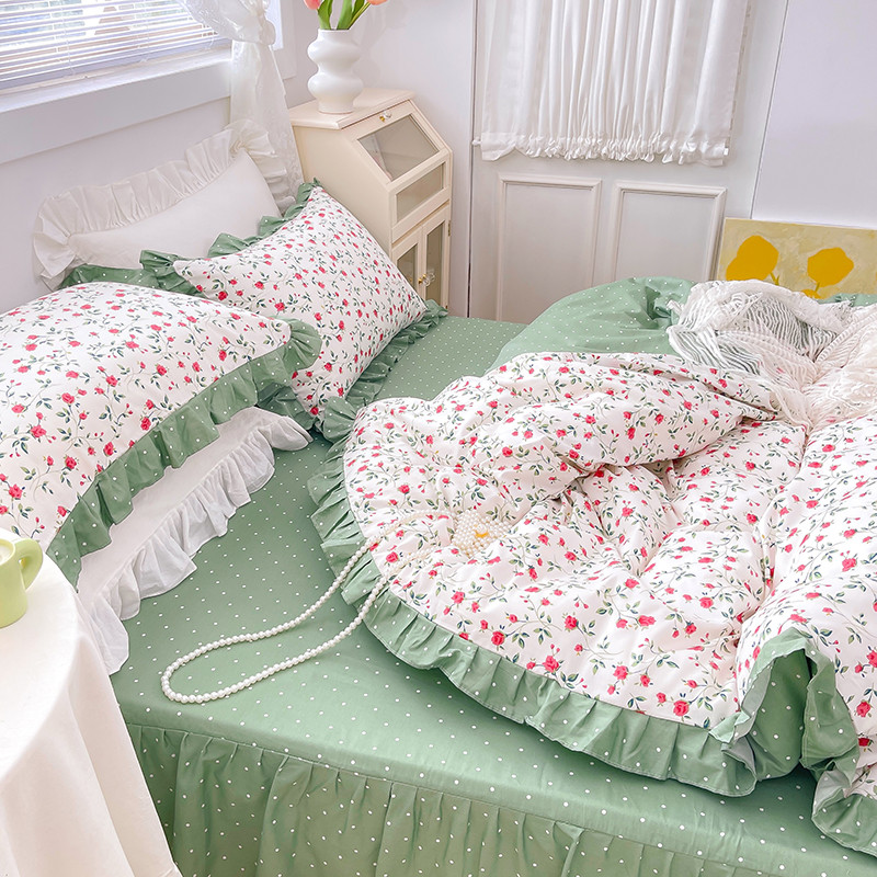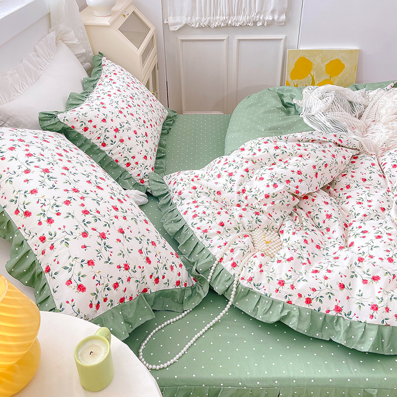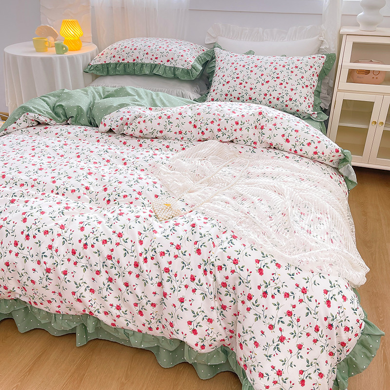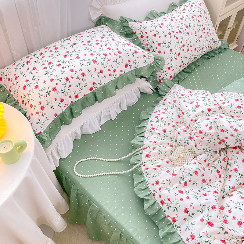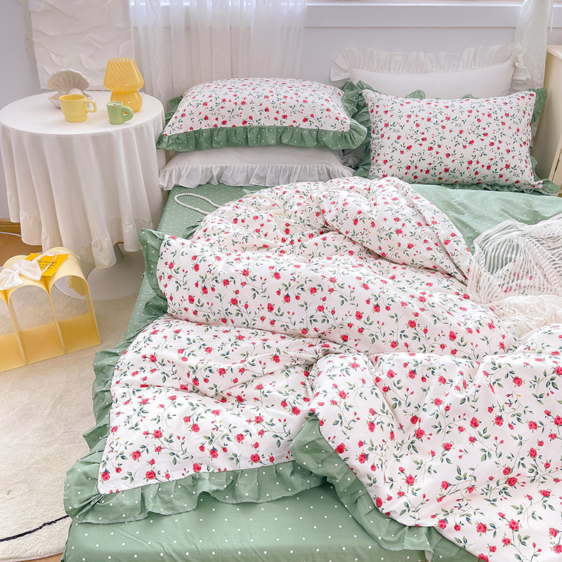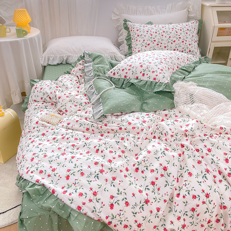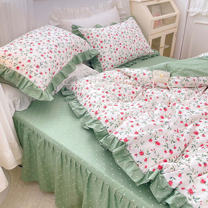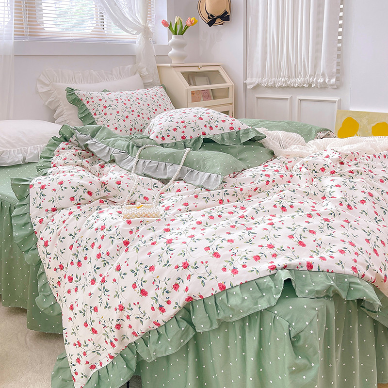 金丝鸟 2021新款全棉韩版床裙款四件套 法尔曼床裙款