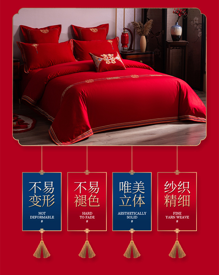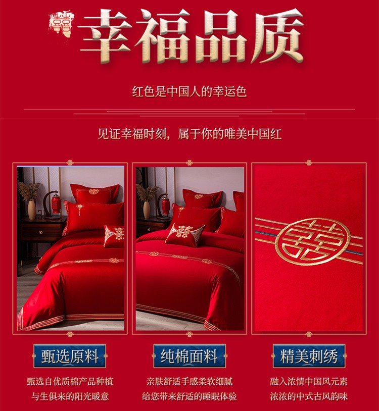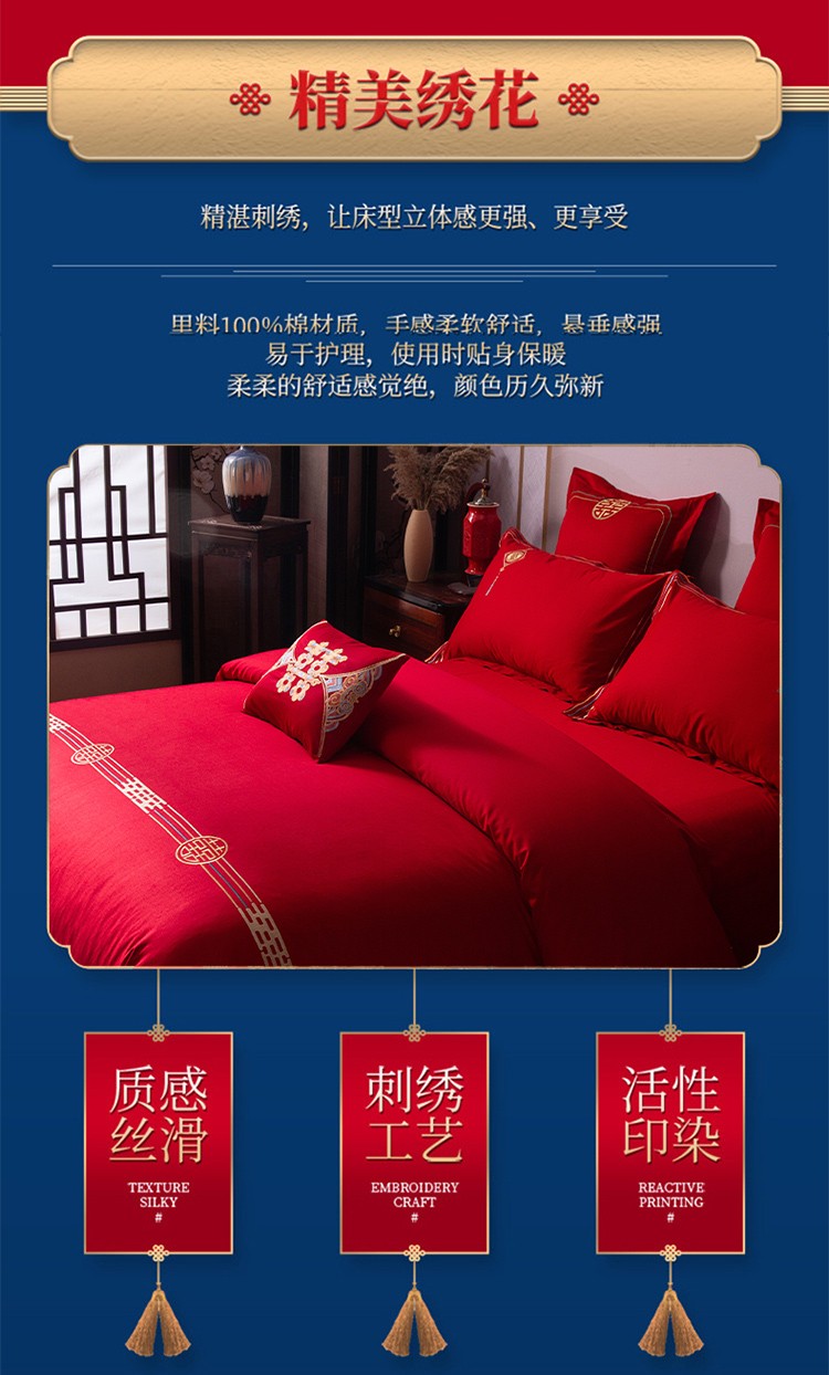 当前位置: 91家纺网 > 商品网购 > 床品套件 > 四件套 > 全棉普通四件套 > 博之洋婚庆 新款全棉绣花婚庆四件套 红鸾天禧