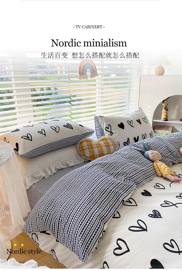 (总)2023新款40支纱全棉13070锁边工艺款四件套系列,格子爱心,嘉兰,咖条,朗尼,小兔兔,星星兔