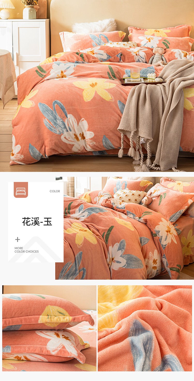总凡客 2021秋冬新款总重3.8kg高克重牛奶绒印花四件套