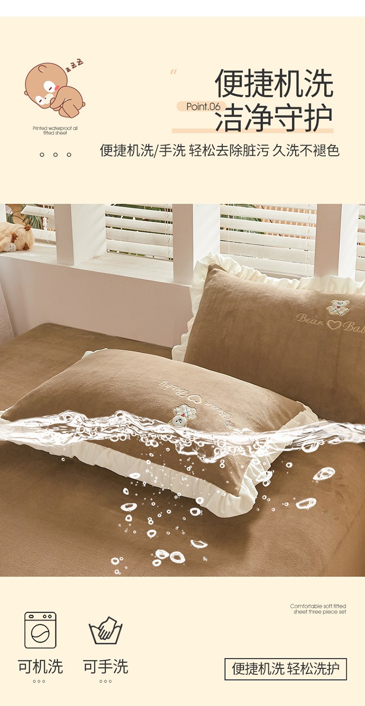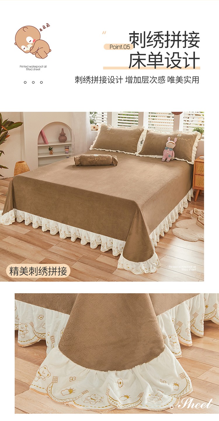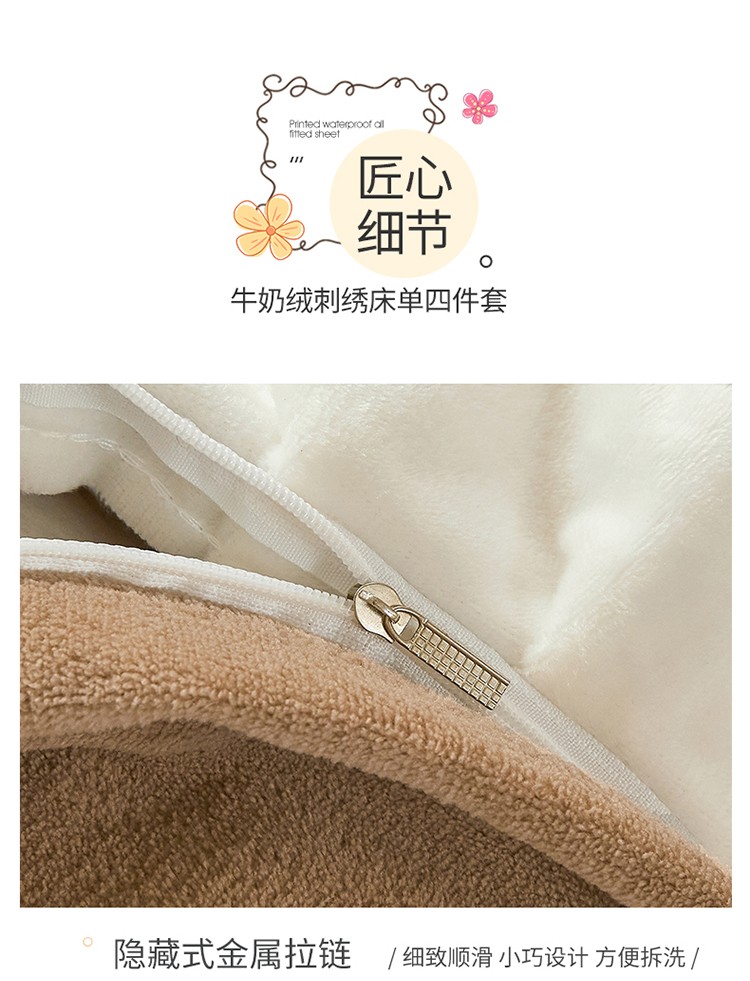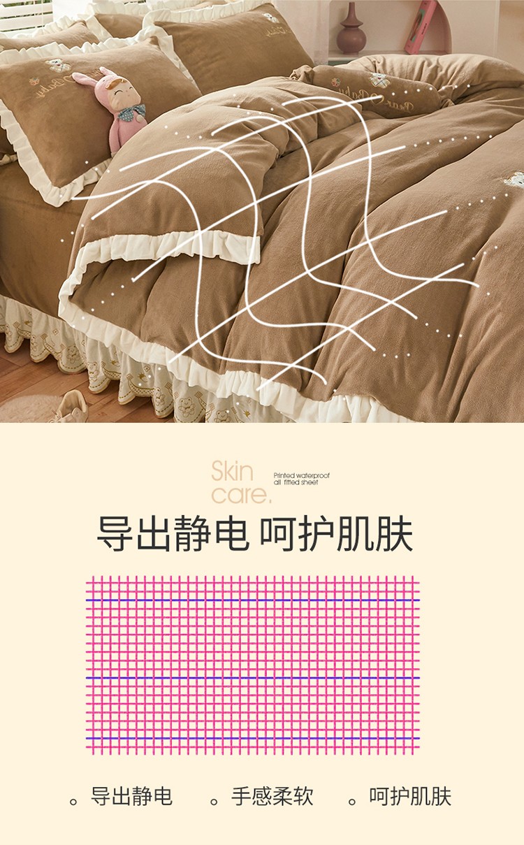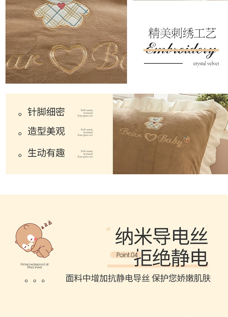 商品名称:宜凡家纺 2021新款牛奶绒绣花熊床单四件套 可爱熊-咖啡
