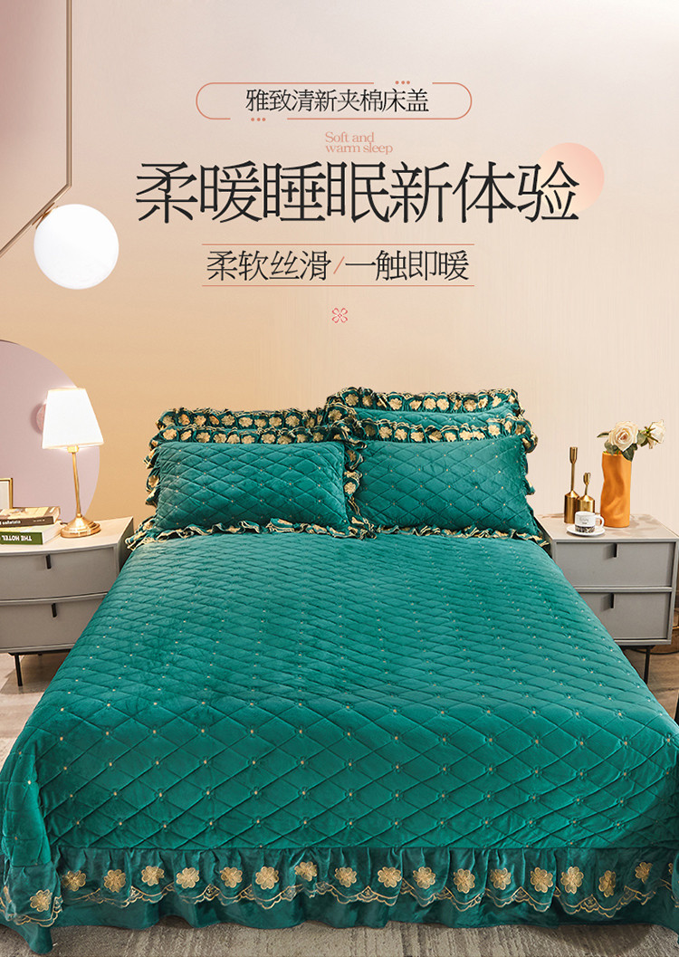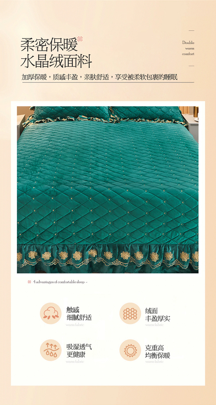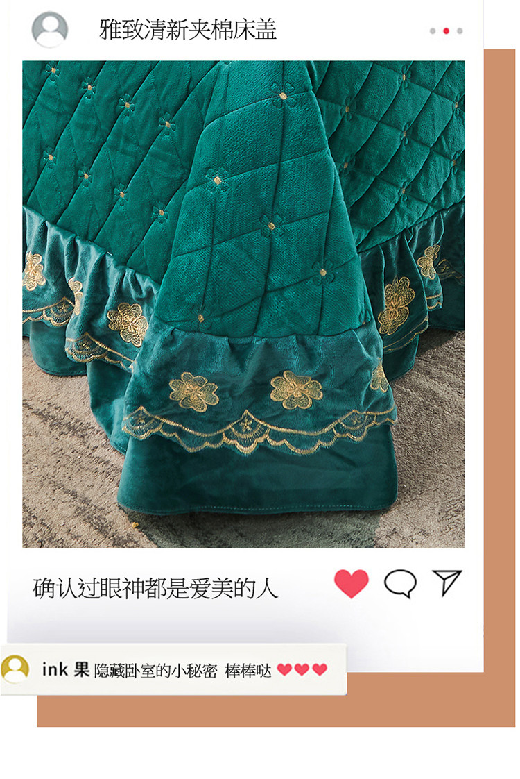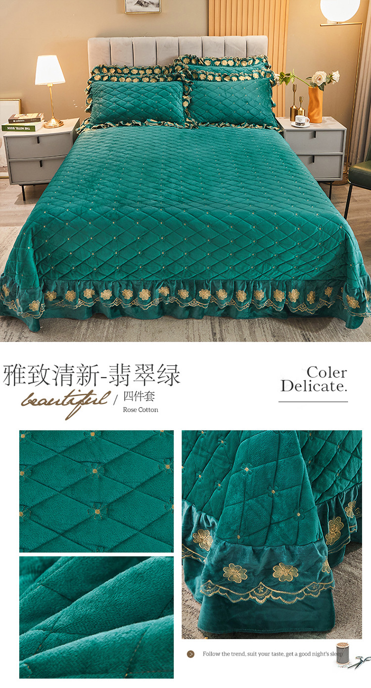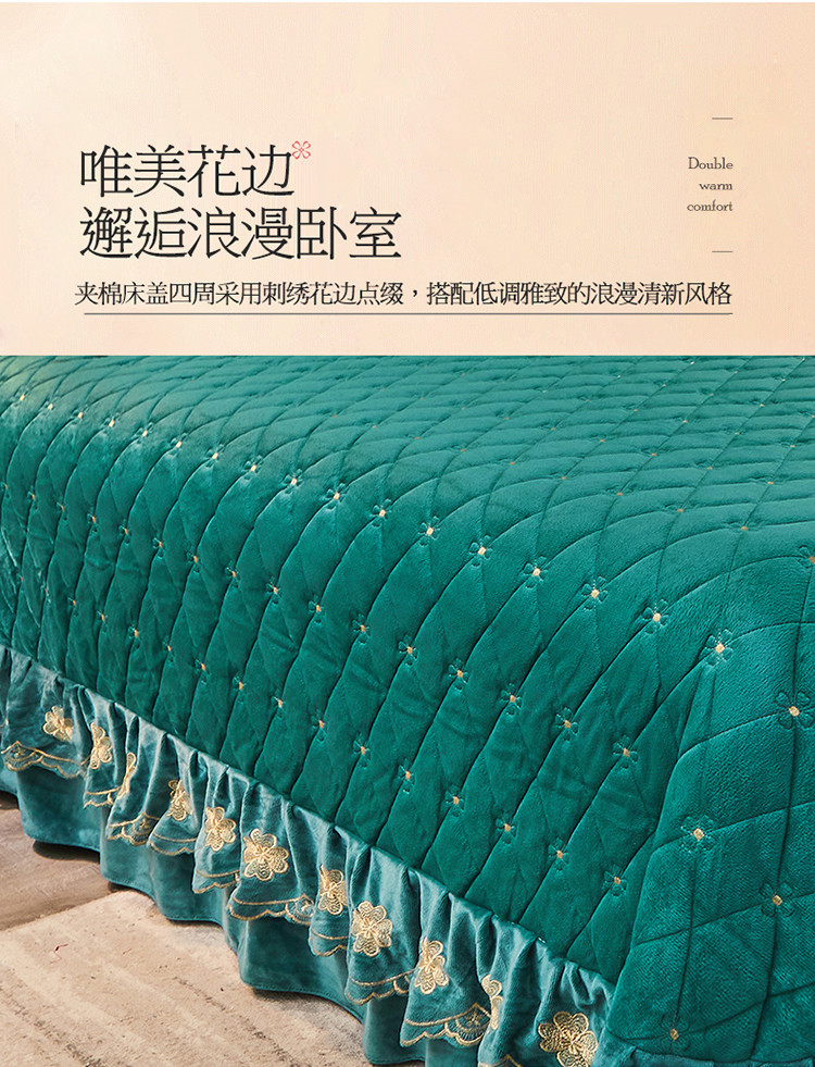 (总)恒爱 2022秋冬水晶绒翩翩花舞夹棉床裙四件套,大红色,豆沙红,橄榄绿,公主粉,桔色,咖啡色,孔雀绿,拉菲红,罗兰紫,玫红色,美人玉,米白色,米驼色,抹茶绿,浅灰色,紫色