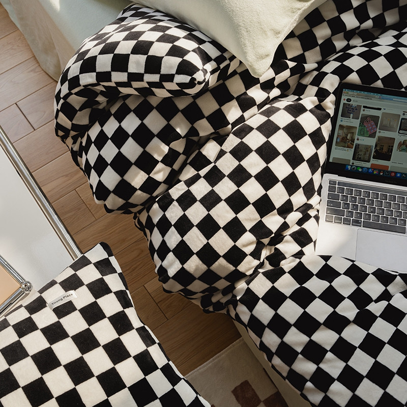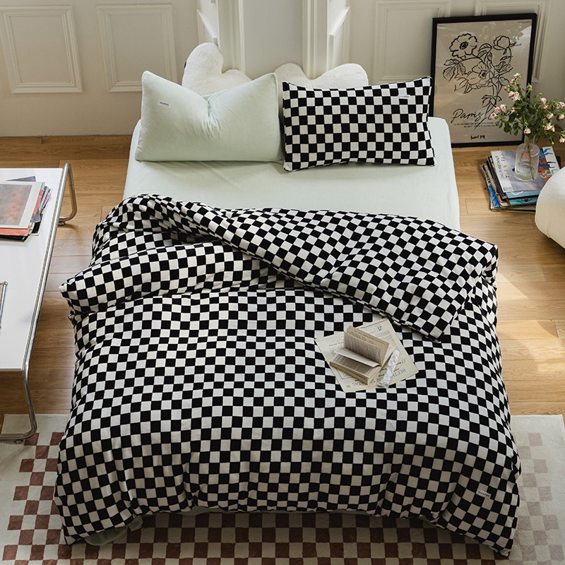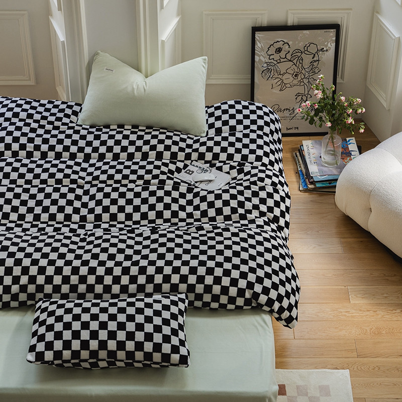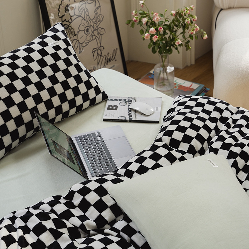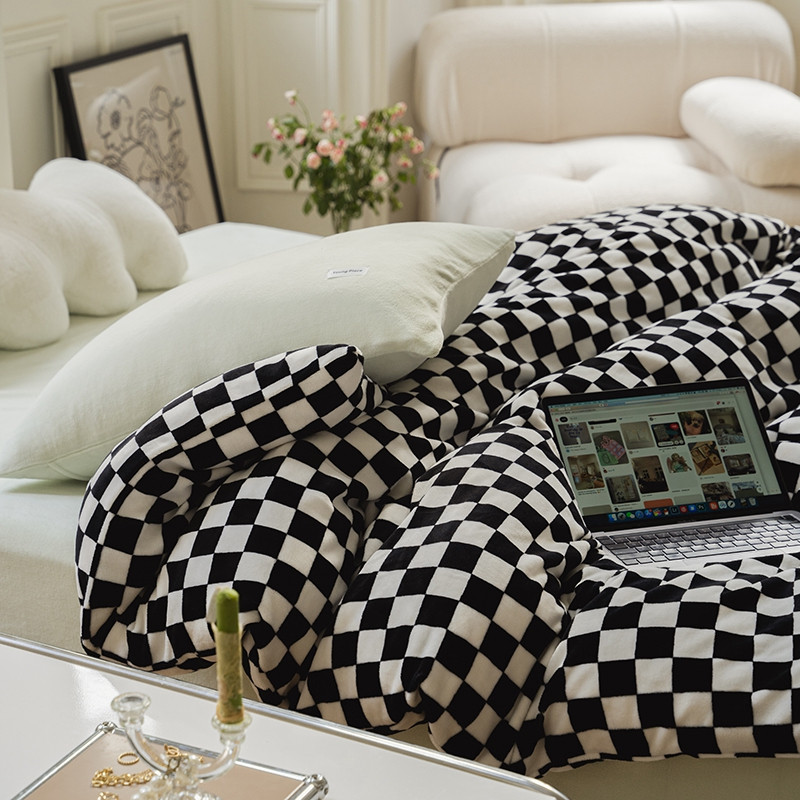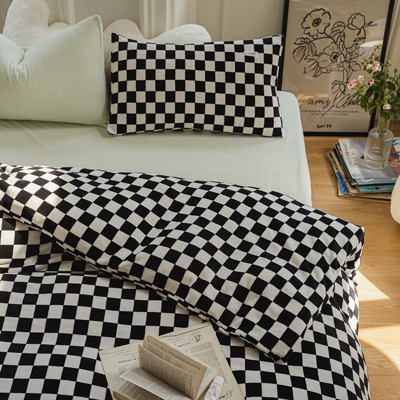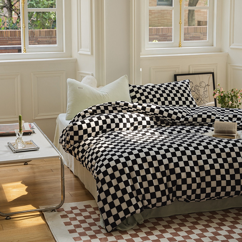 洋铭区 2021冬季新品棋盘格牛奶绒四件套 初恋黑格