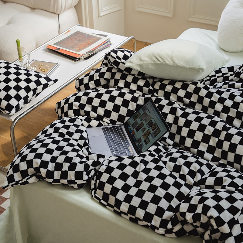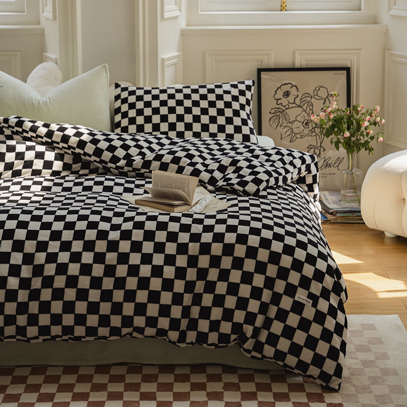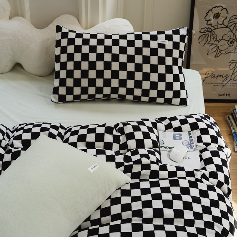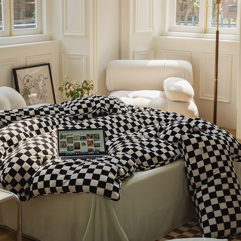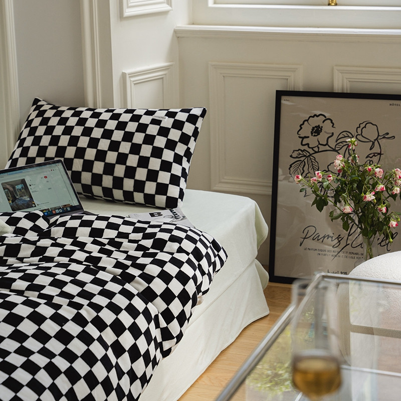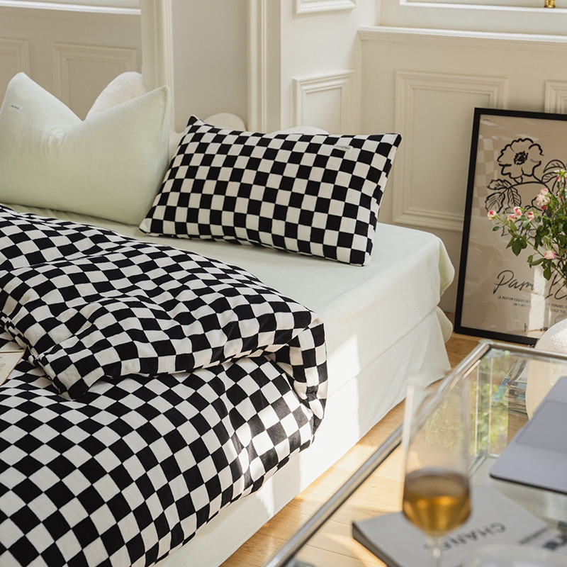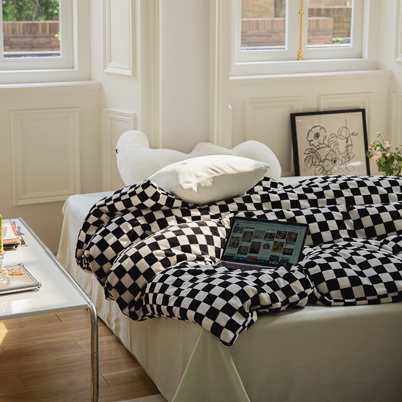 洋铭区 2021冬季新品棋盘格牛奶绒四件套 初恋黑格