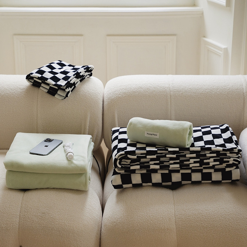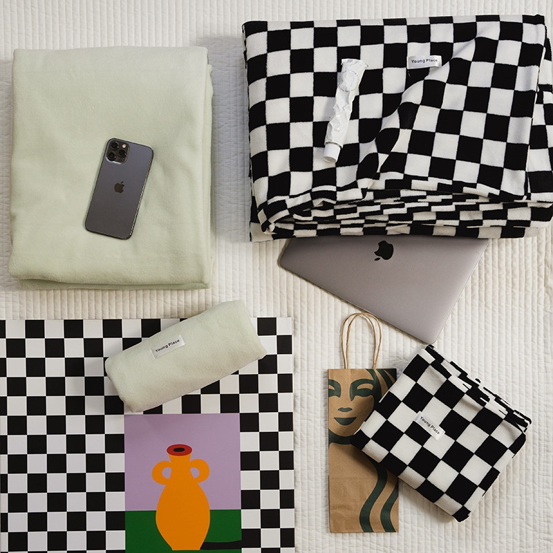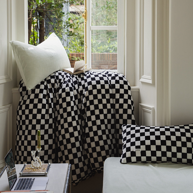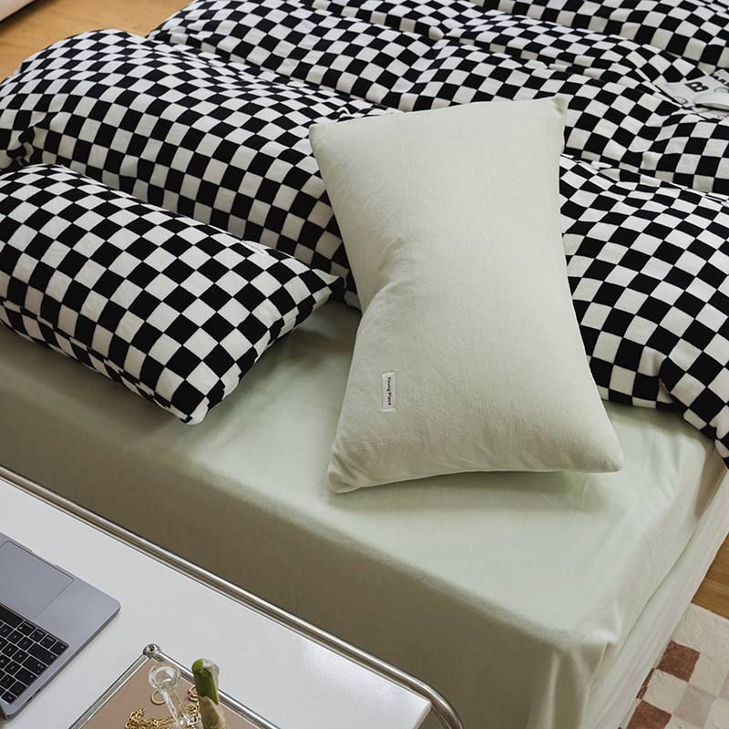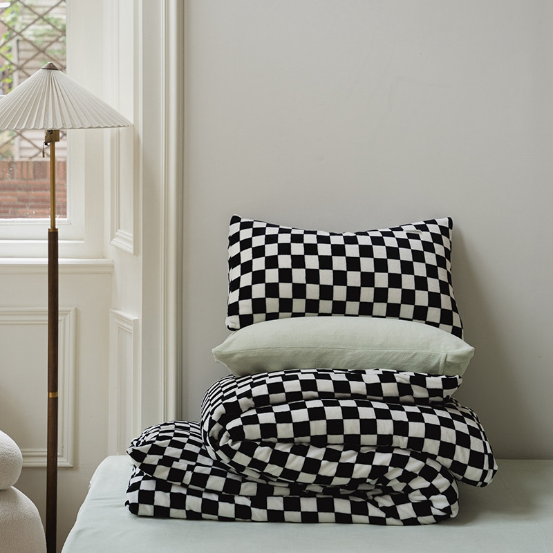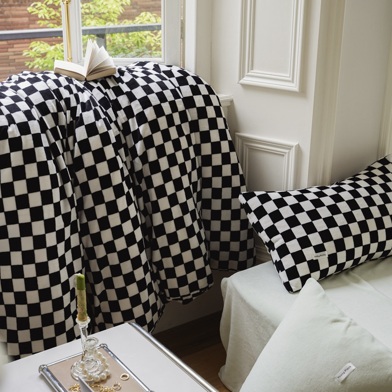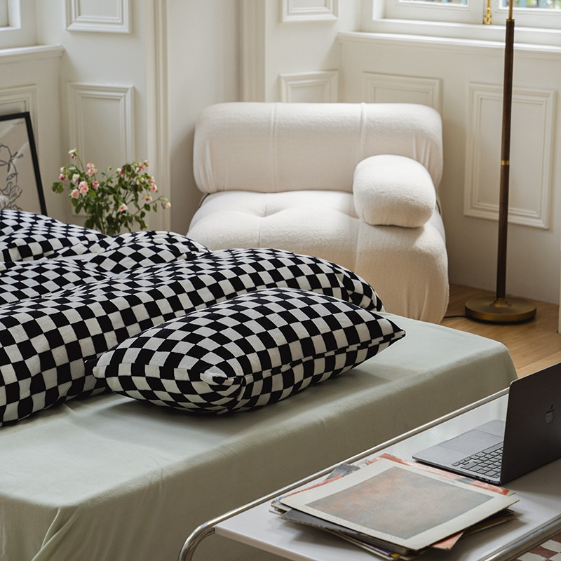 洋铭区 2021冬季新品棋盘格牛奶绒四件套 初恋黑格