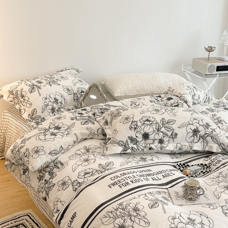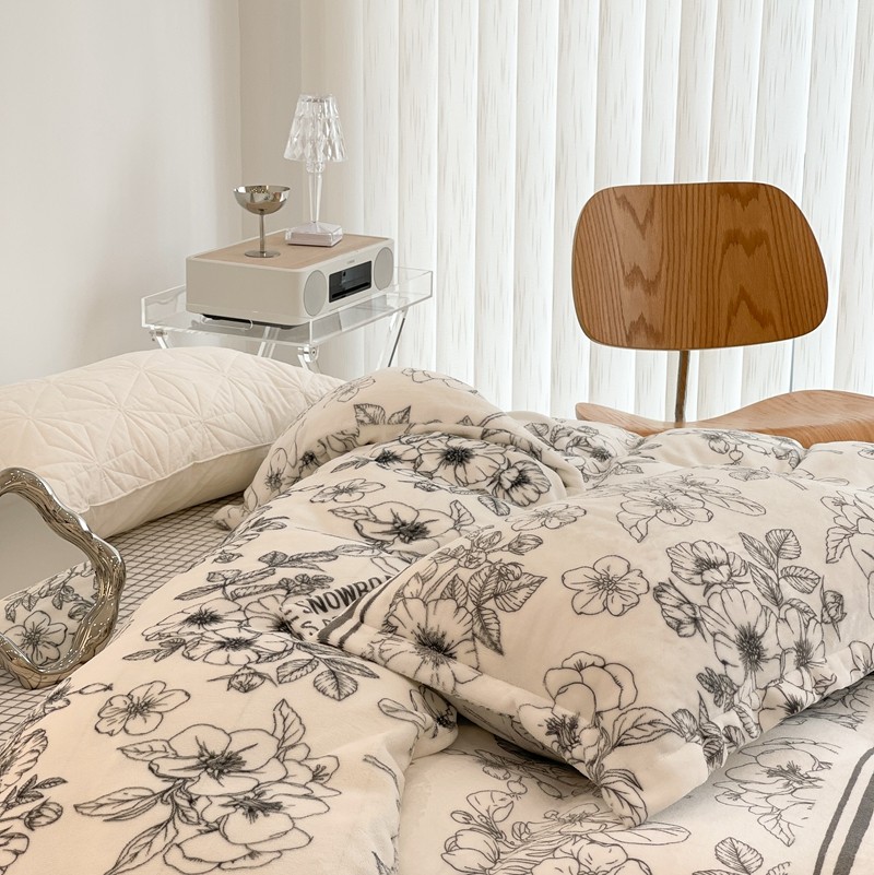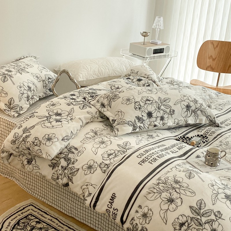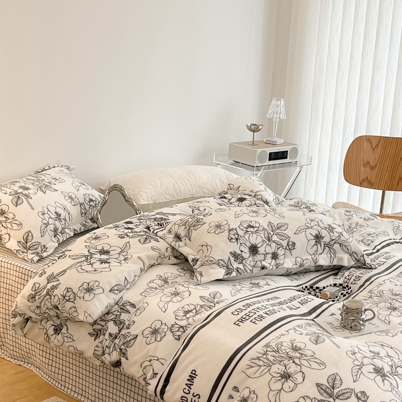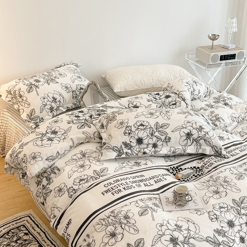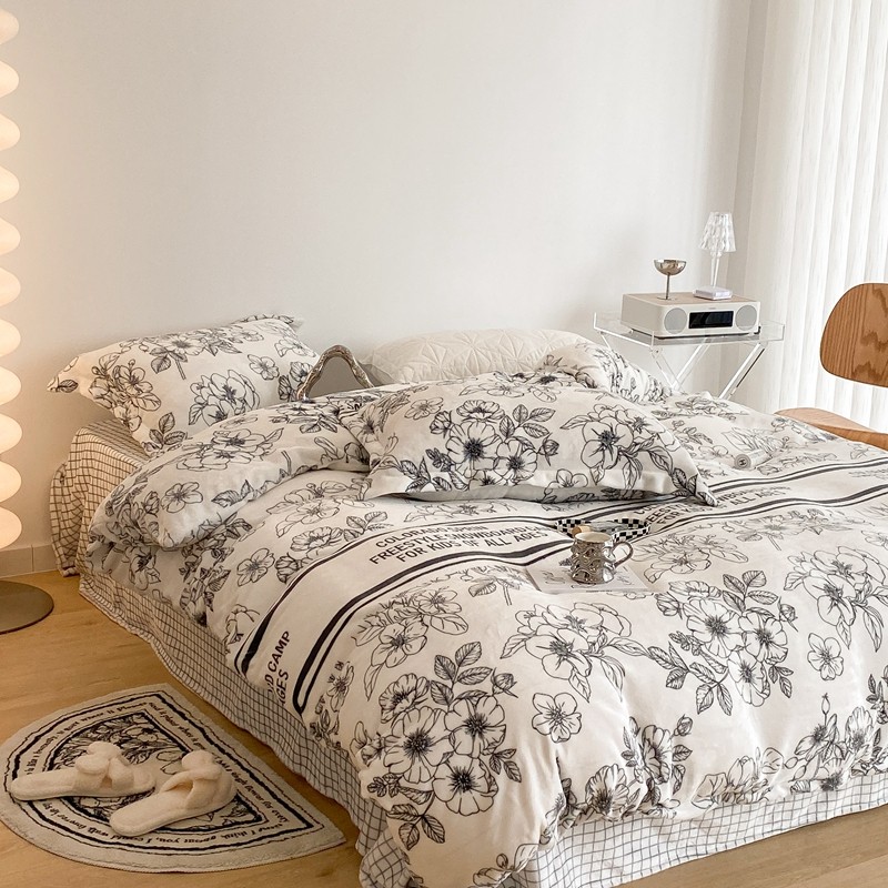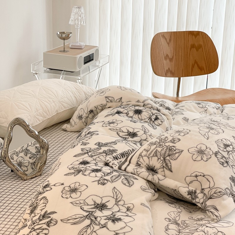 (总)昔可家纺 2024新款印花牛奶绒四件套系列-洛丽塔风,萝莉小兔,小熊烘焙屋,小熊玩偶屋