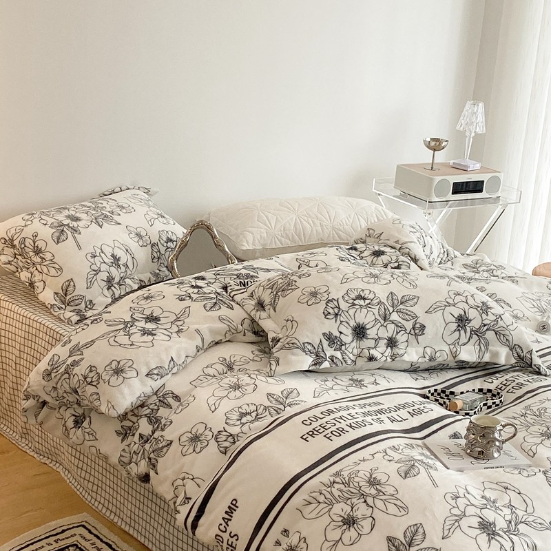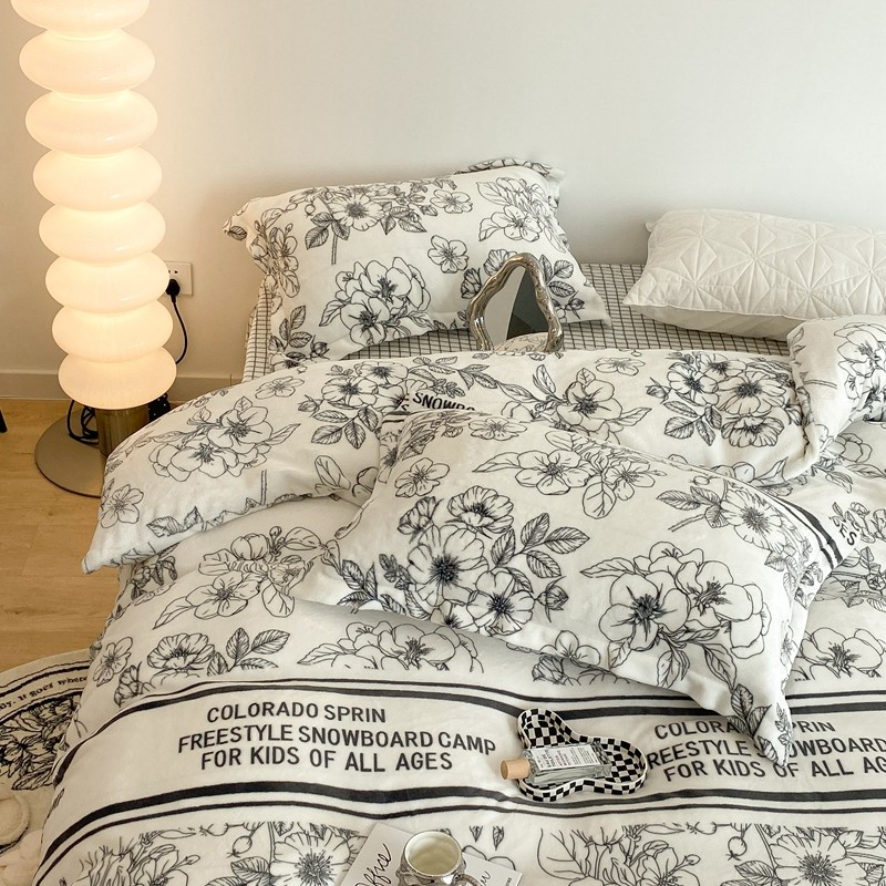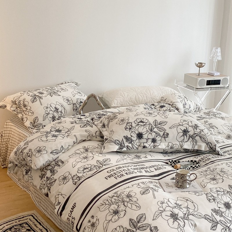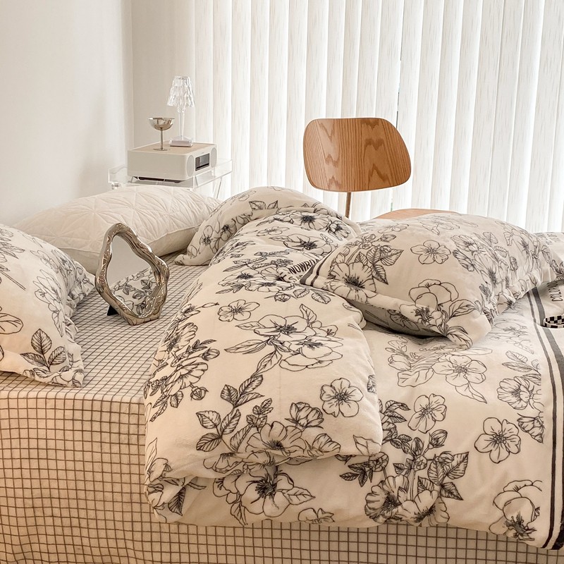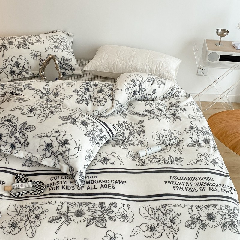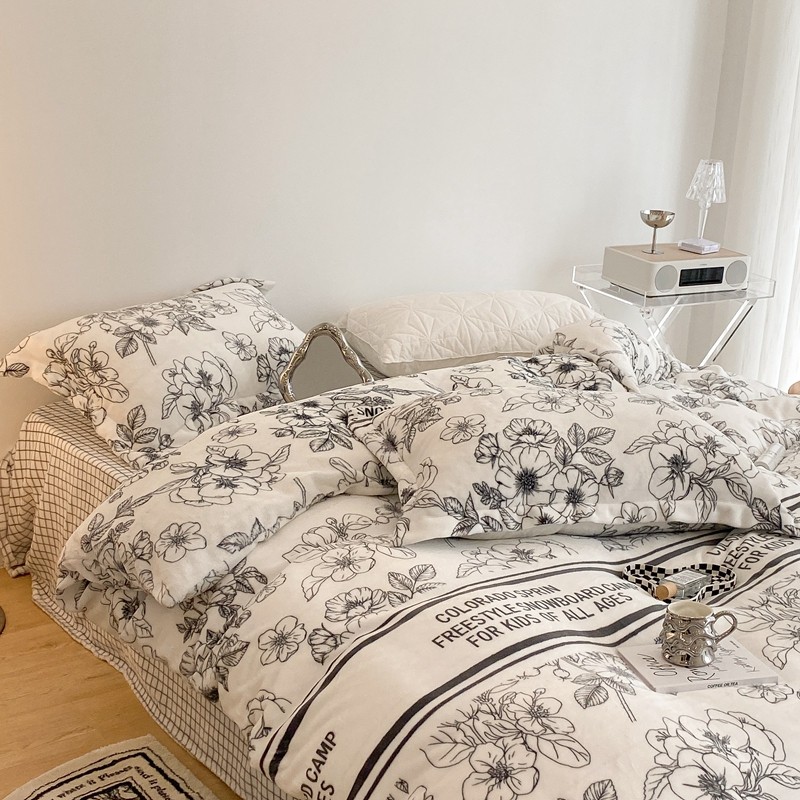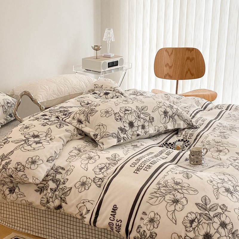 (总)昔可家纺 2024新款印花牛奶绒四件套系列-洛丽塔风,萝莉小兔,小熊烘焙屋,小熊玩偶屋