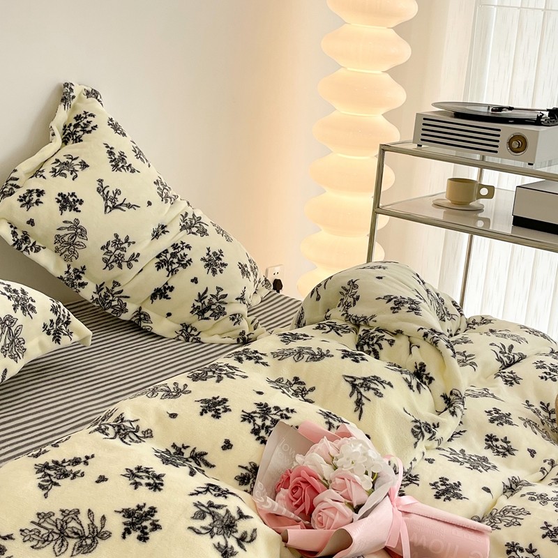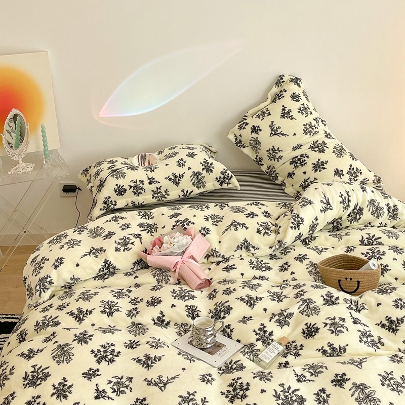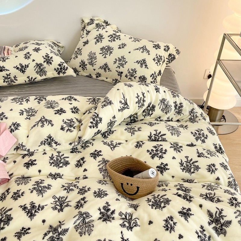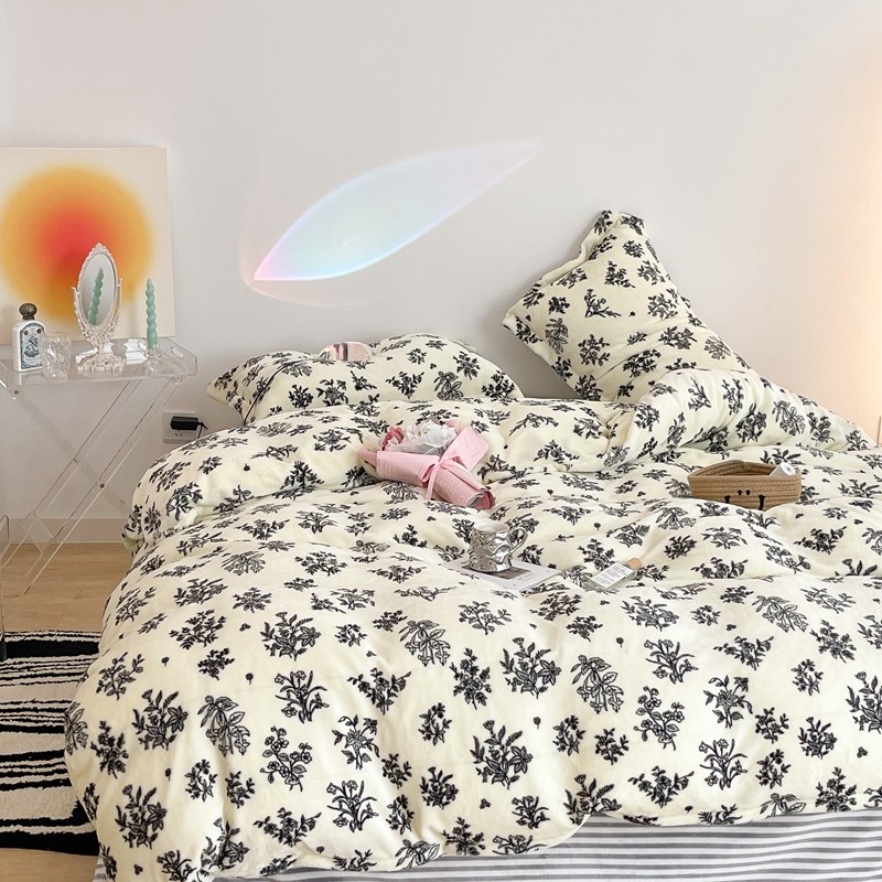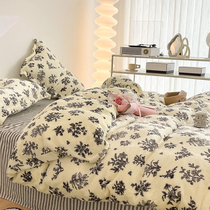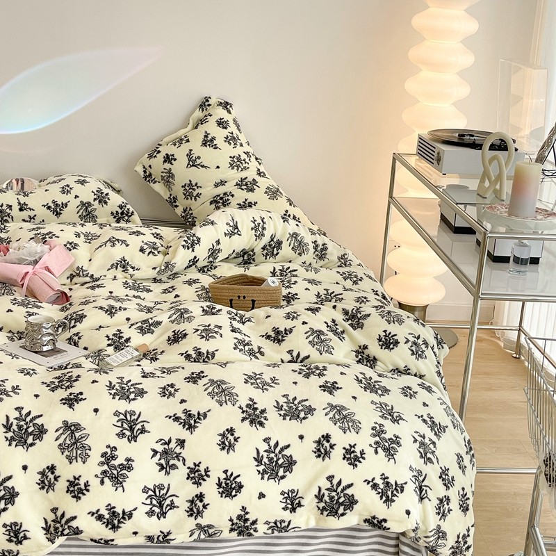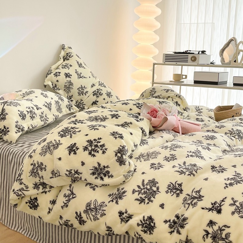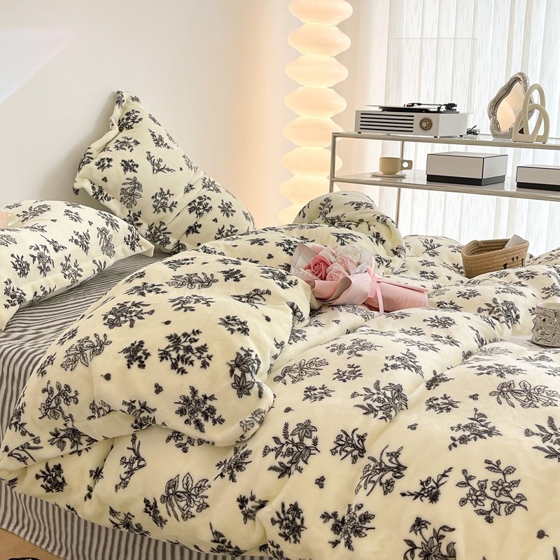 昔可家纺 2021新款牛奶绒四件套-三批 素描水墨花