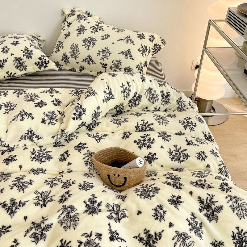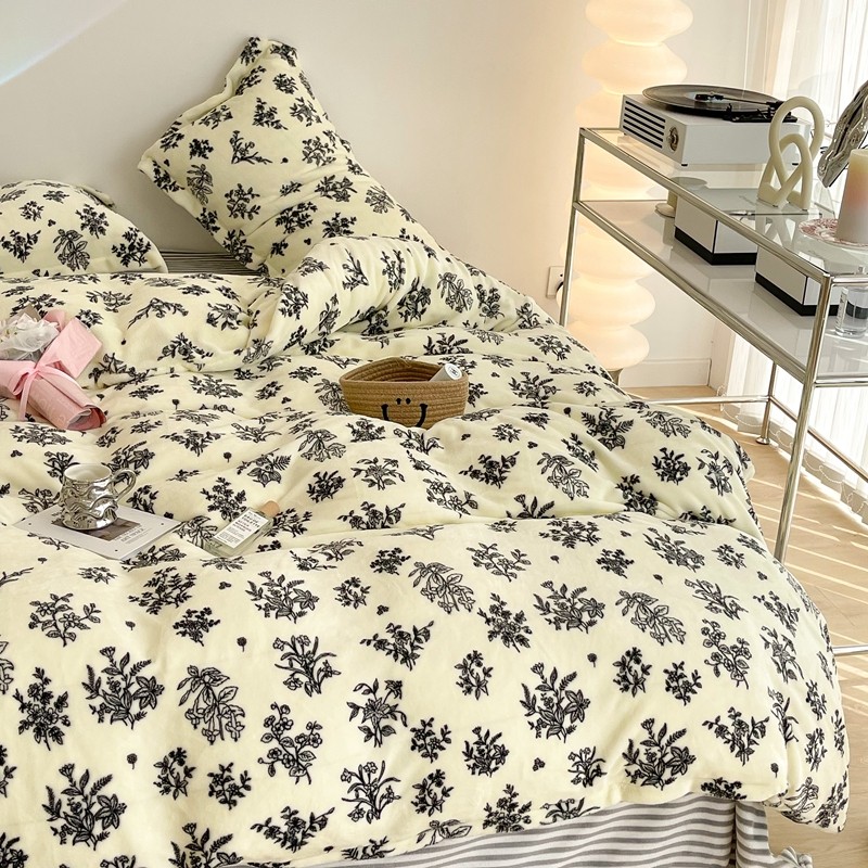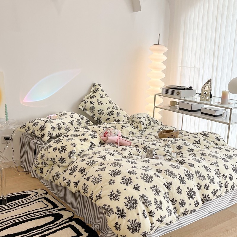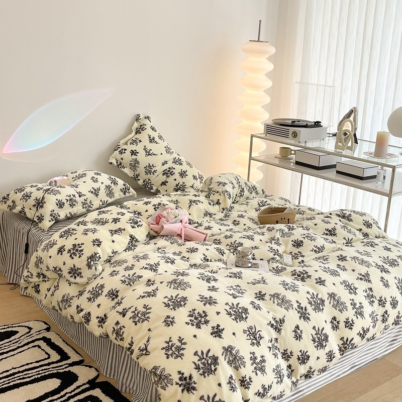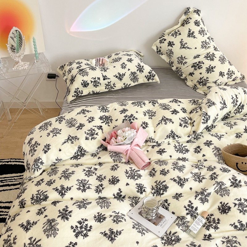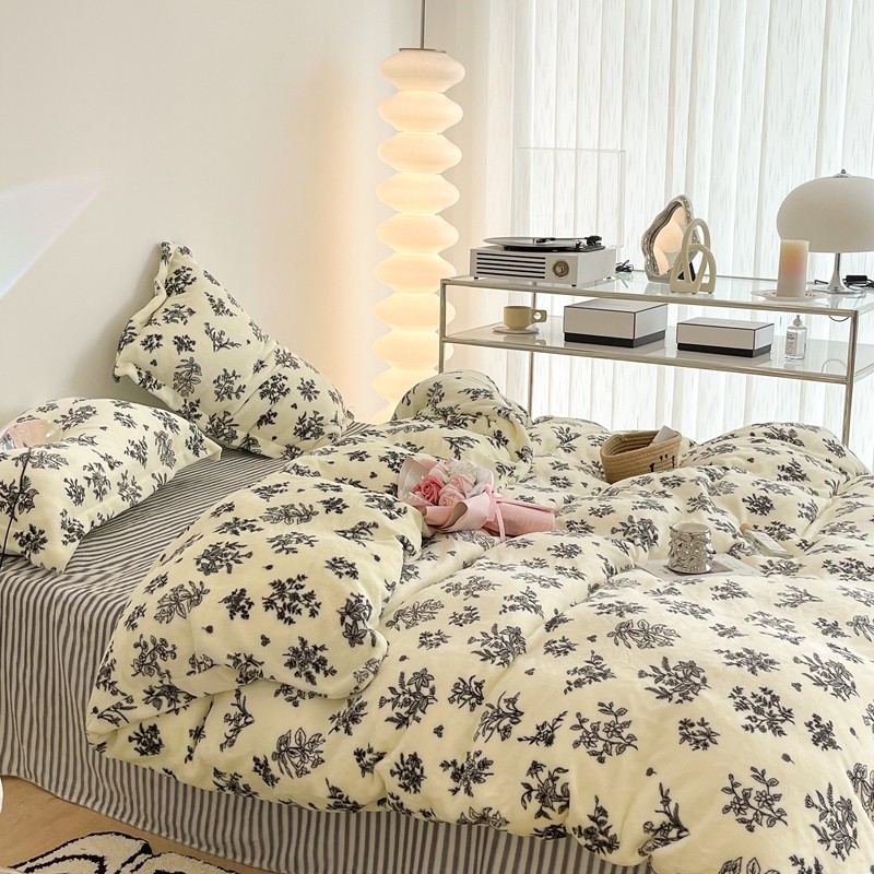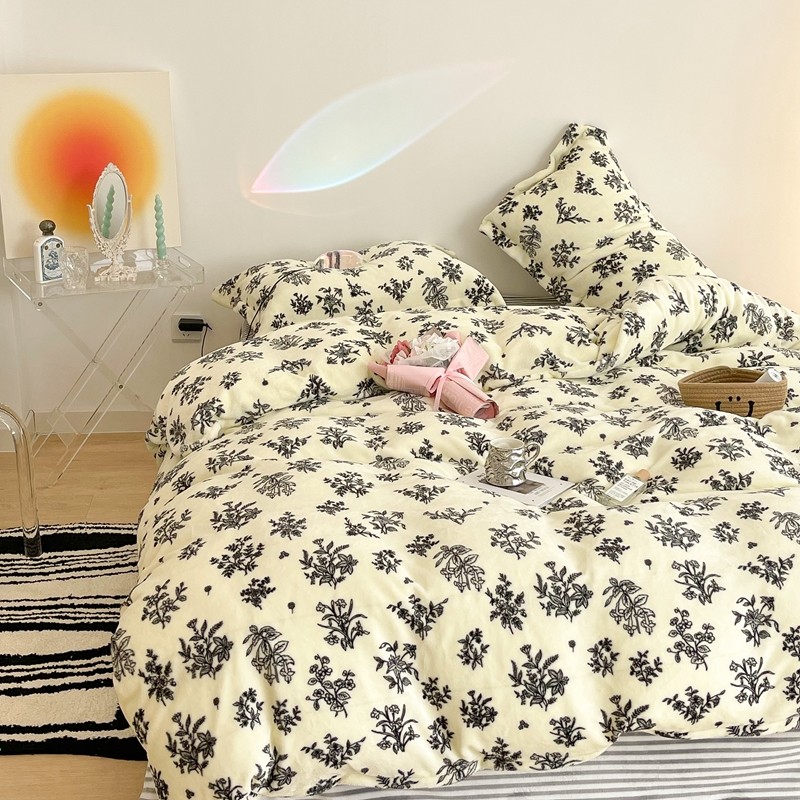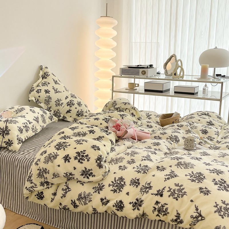 昔可家纺 2021新款牛奶绒四件套-三批 素描水墨花