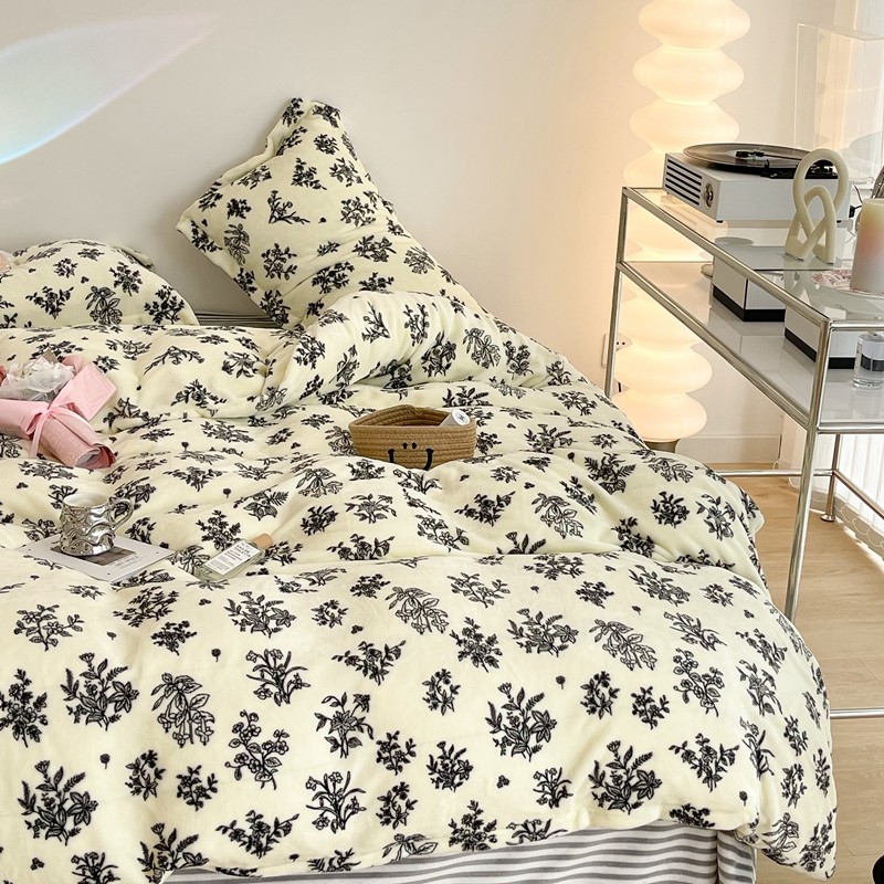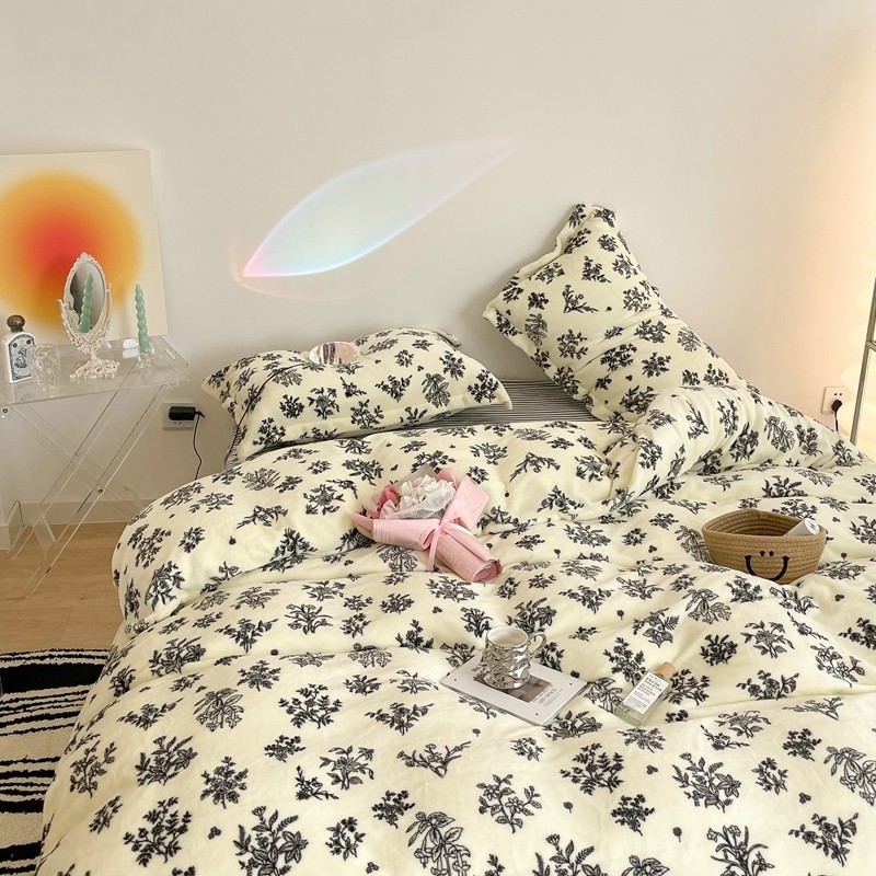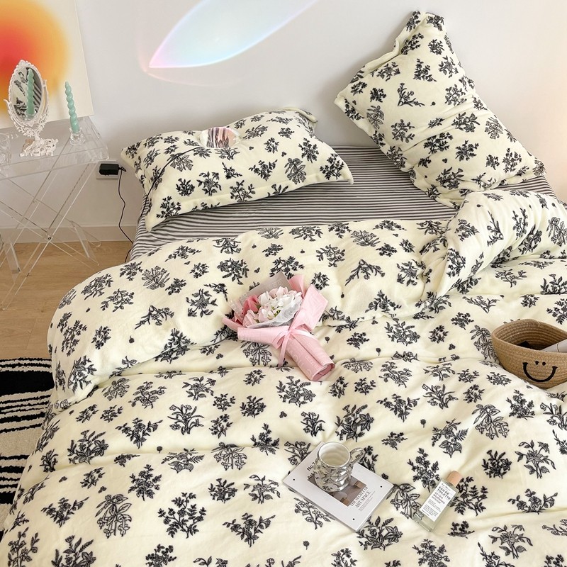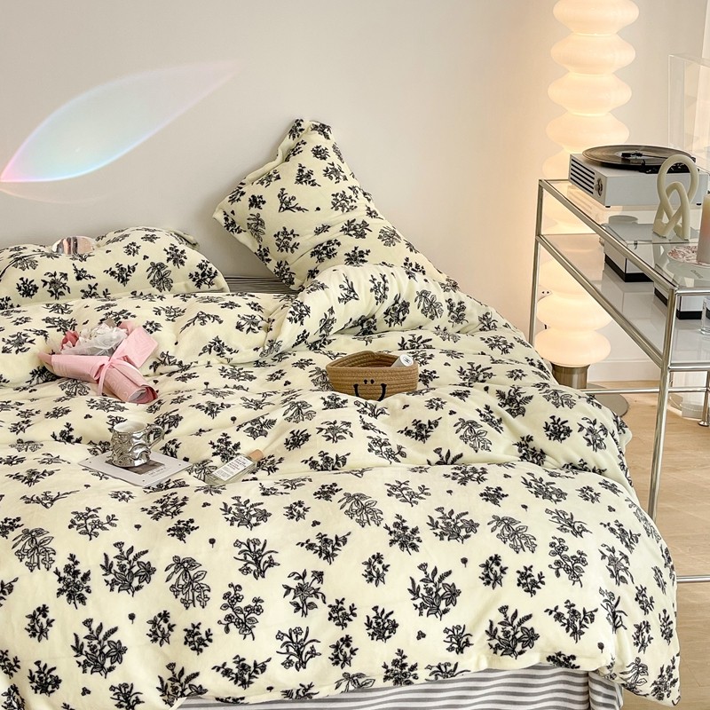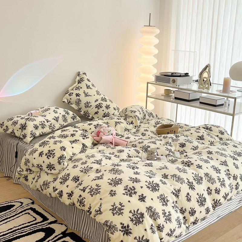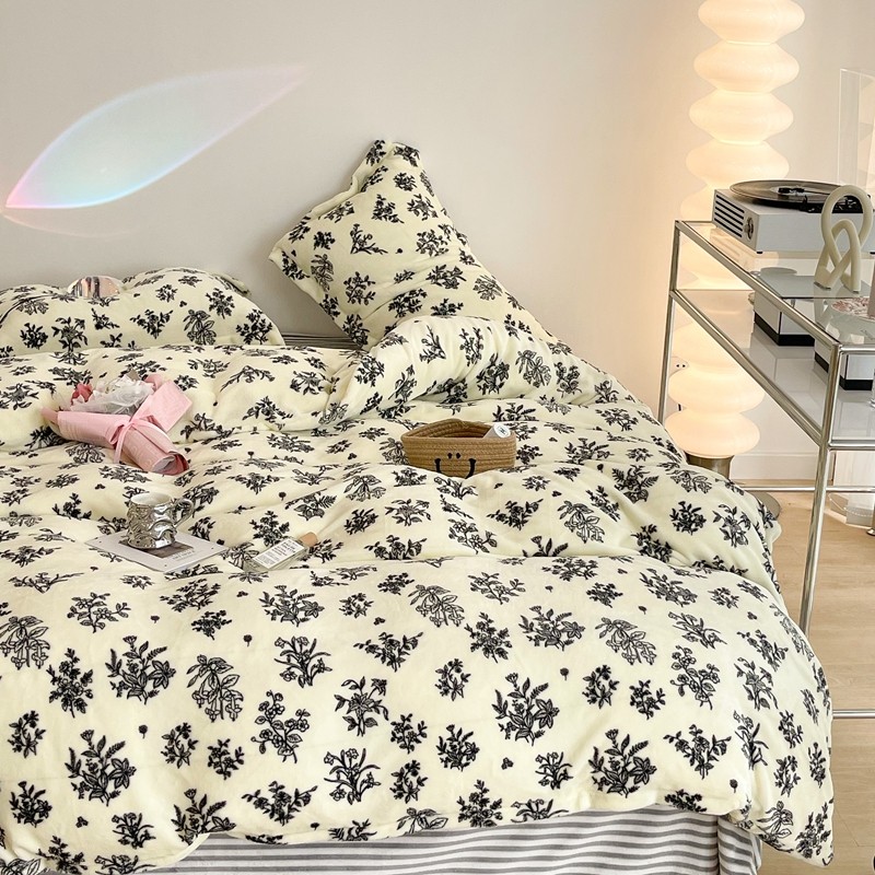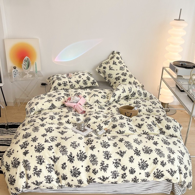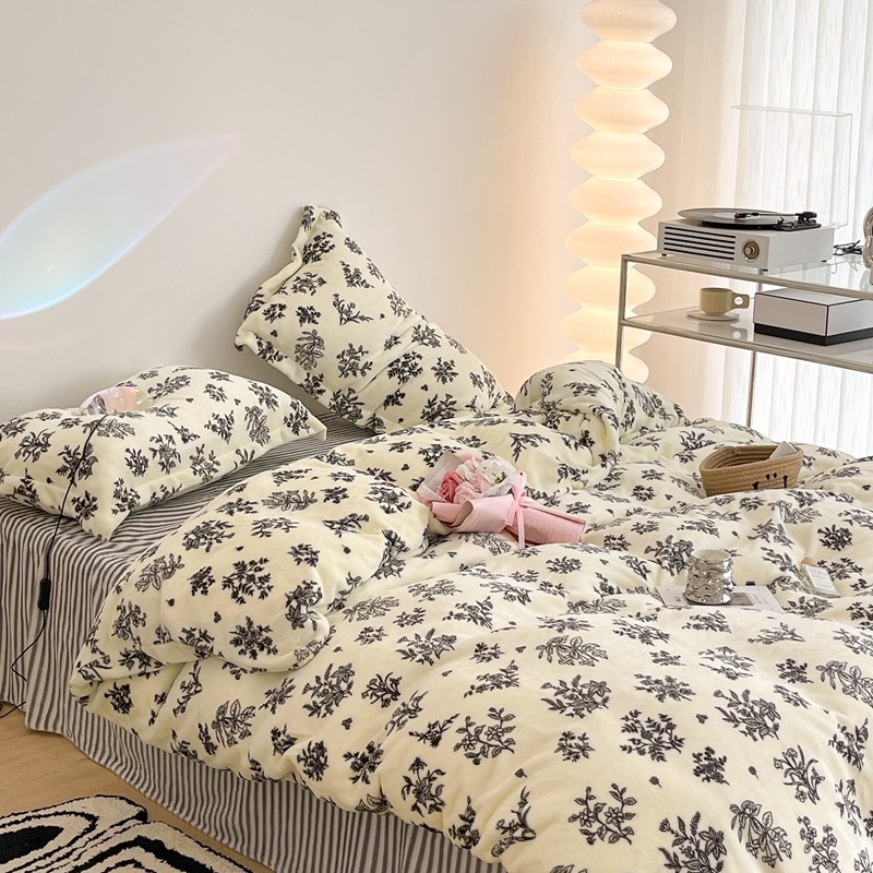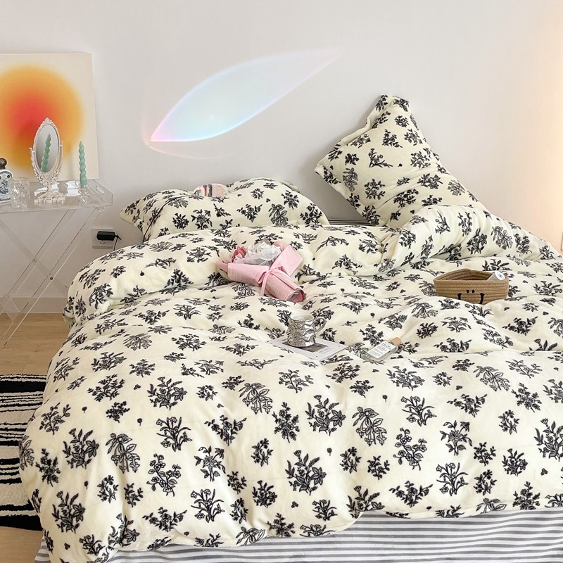 昔可家纺 2021新款牛奶绒四件套-三批 素描水墨花