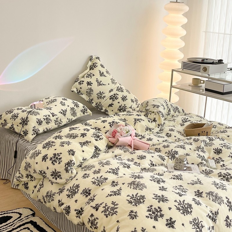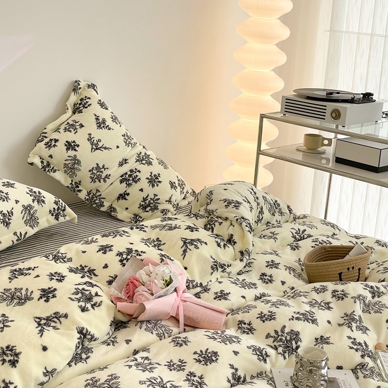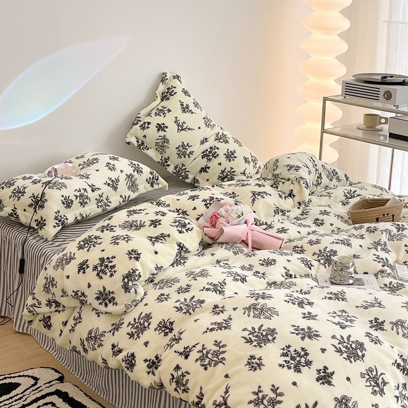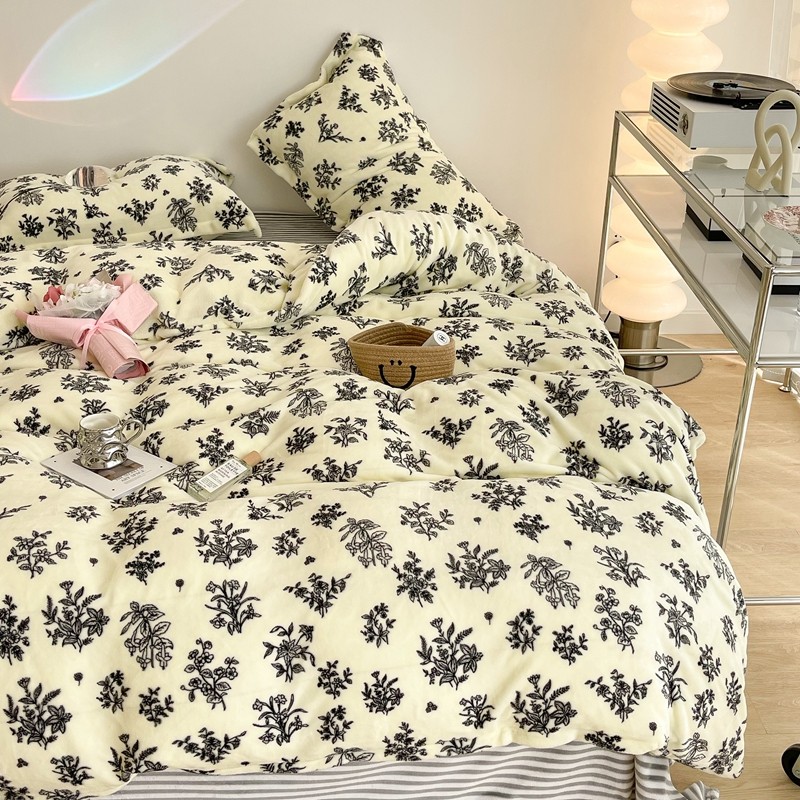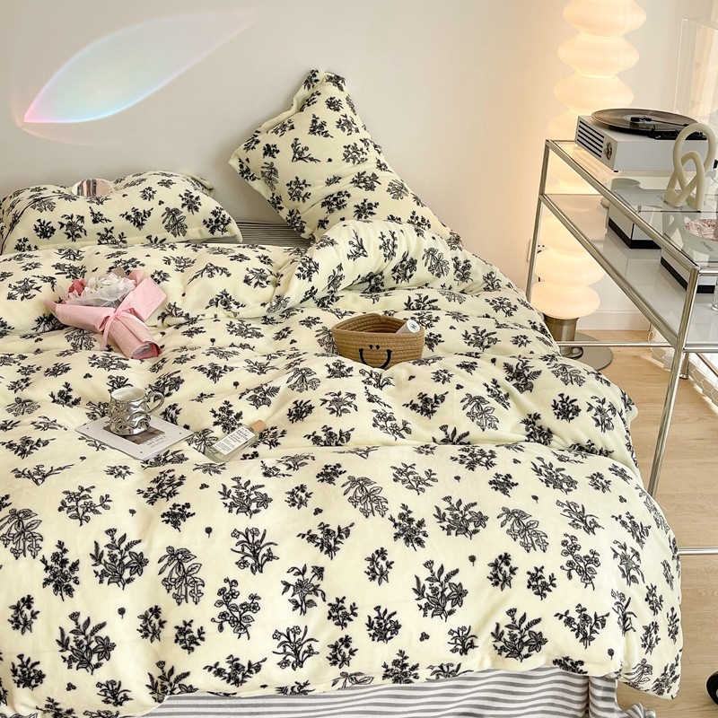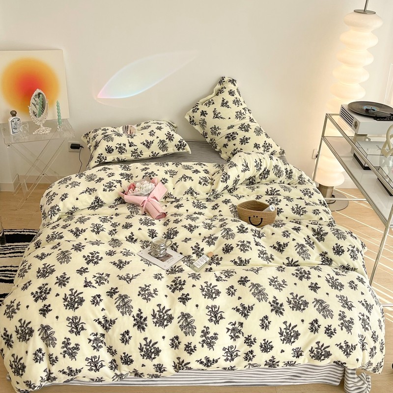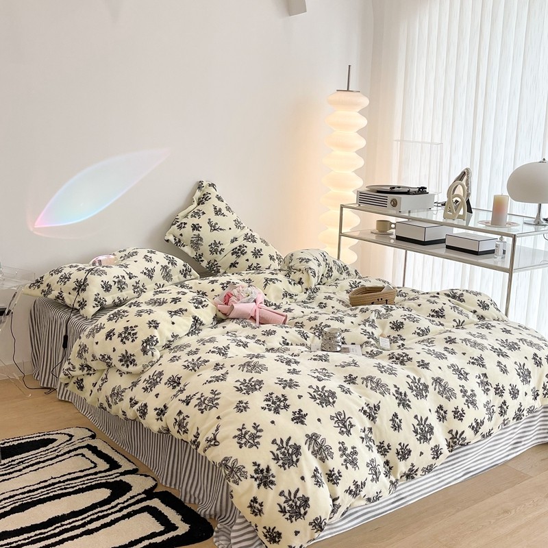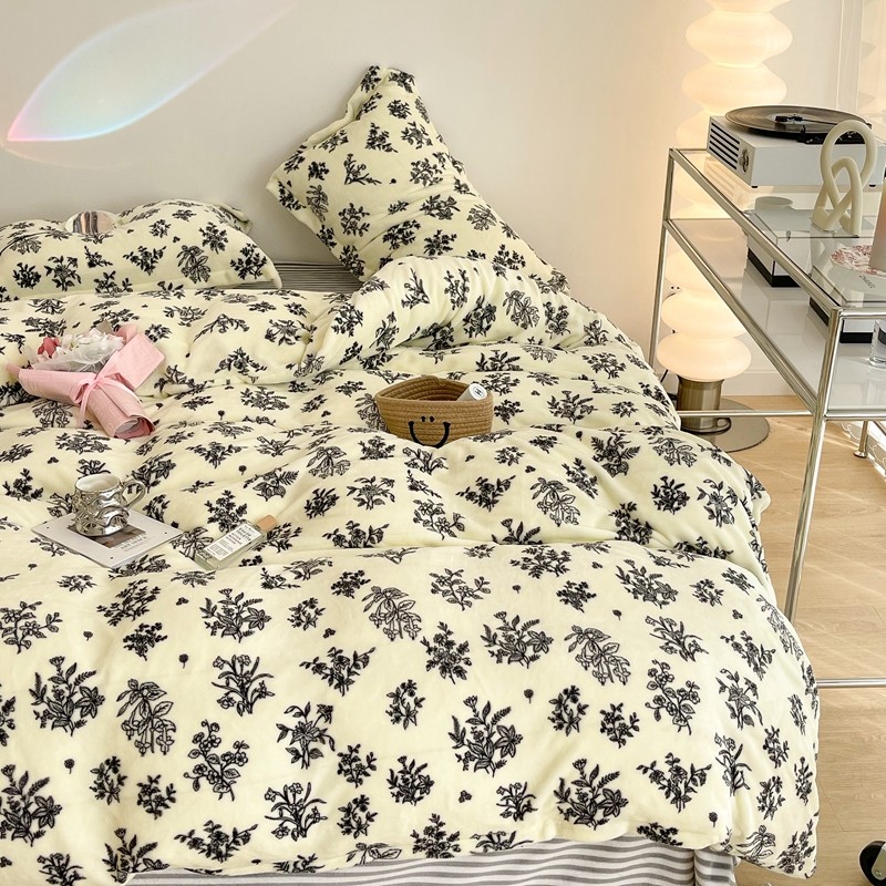 昔可家纺 2021新款牛奶绒四件套-三批 素描水墨花