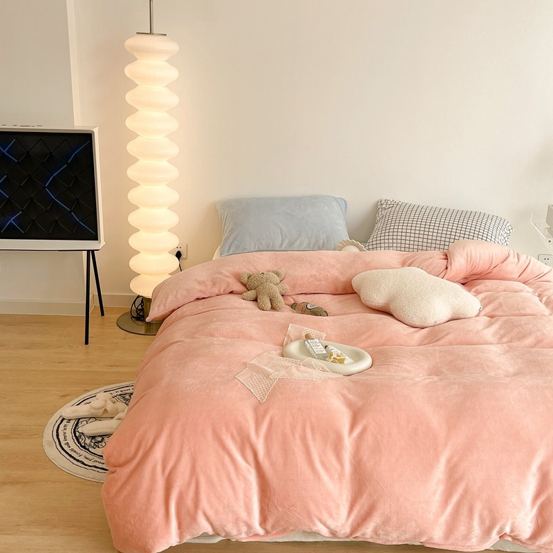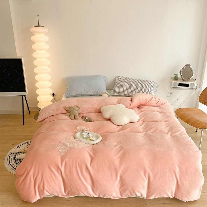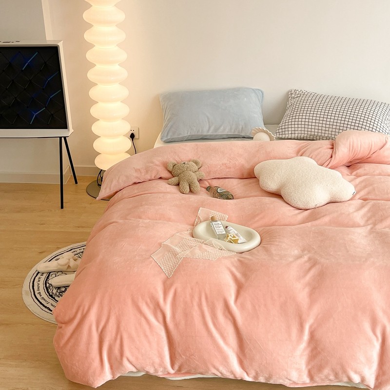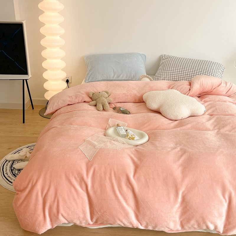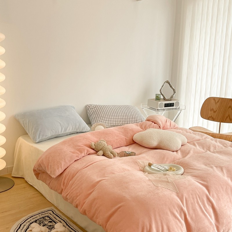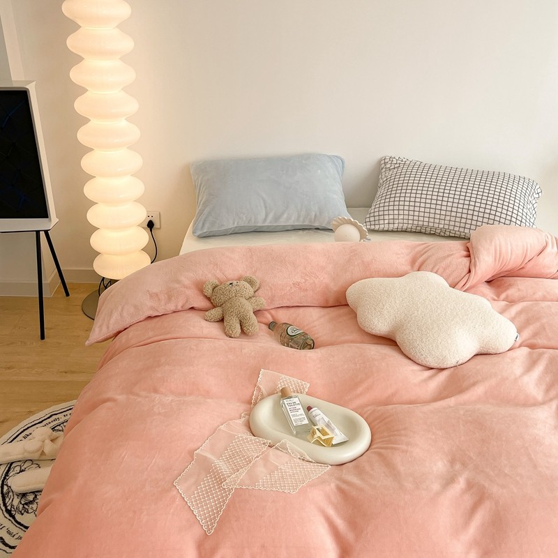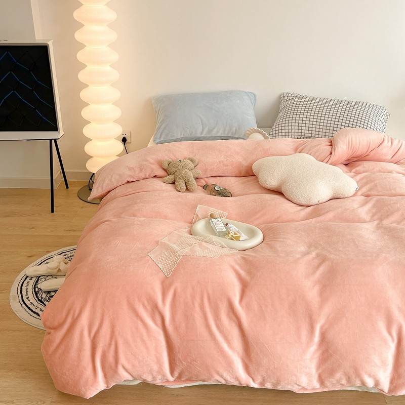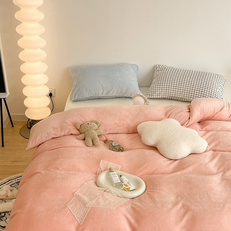 商品名称:昔可家纺 2021新款撞色牛奶绒四件套 烟雾粉
