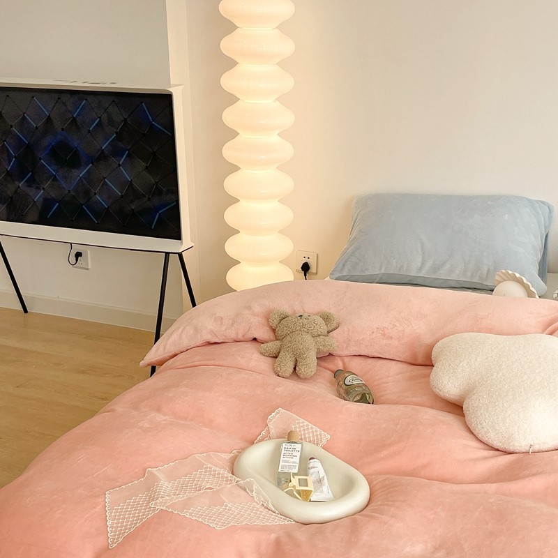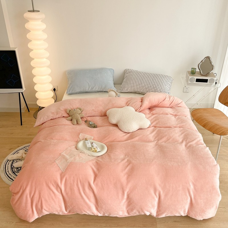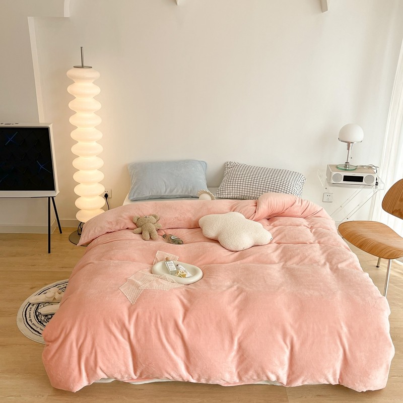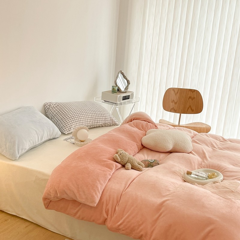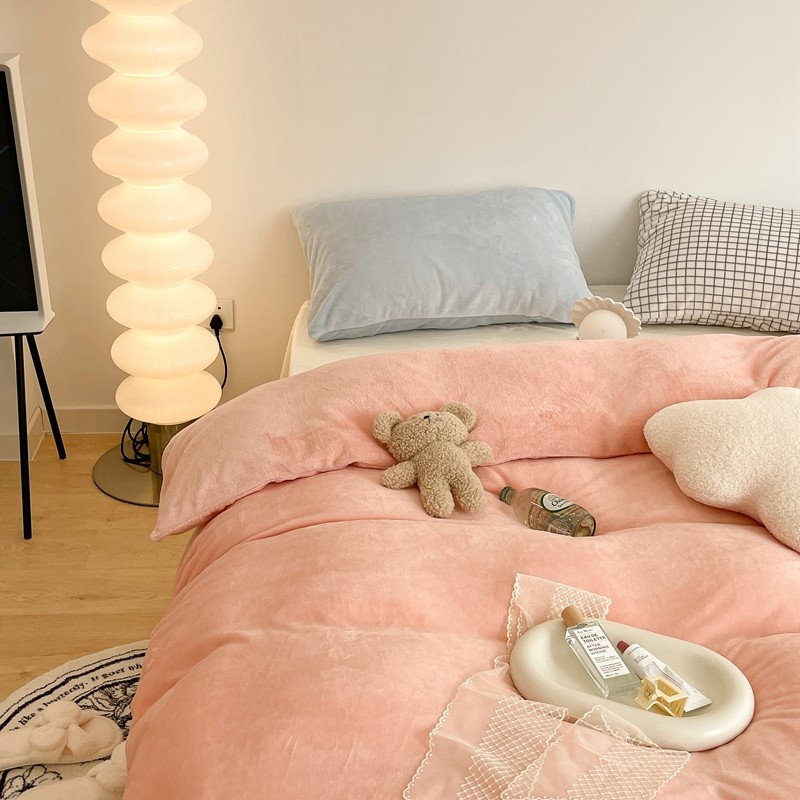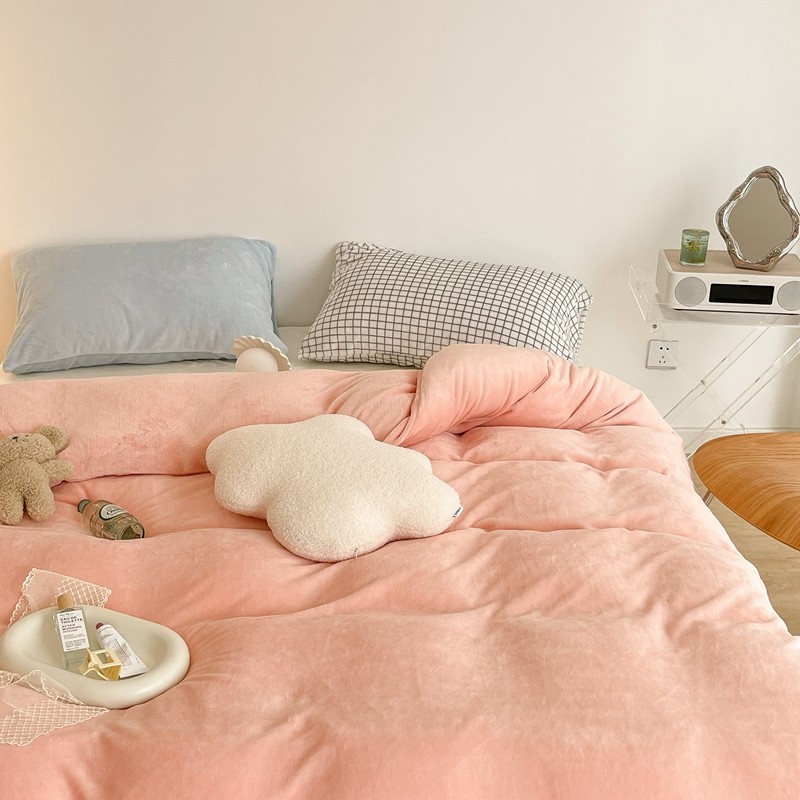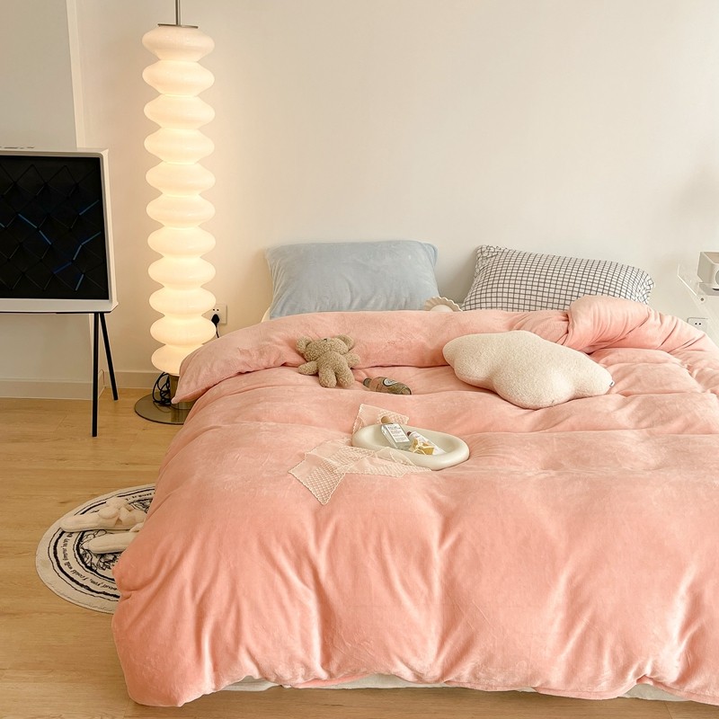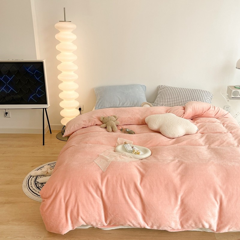 商品名称:昔可家纺 2021新款撞色牛奶绒四件套 烟雾粉
