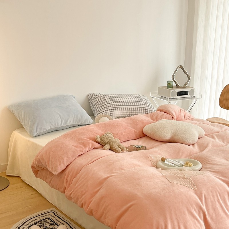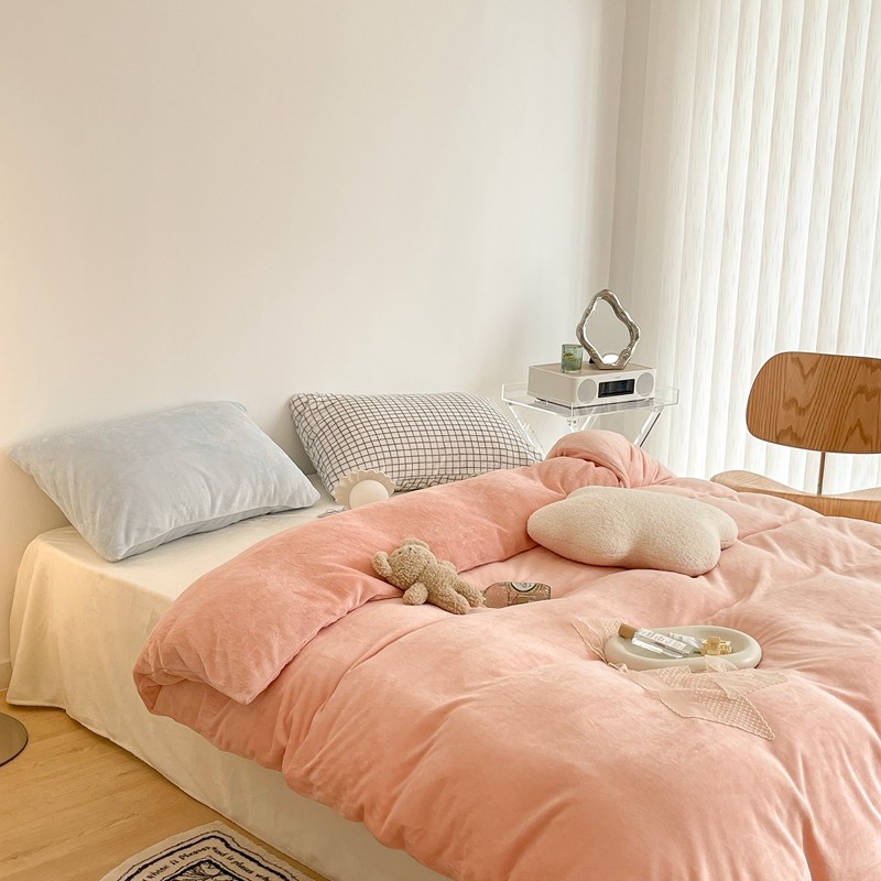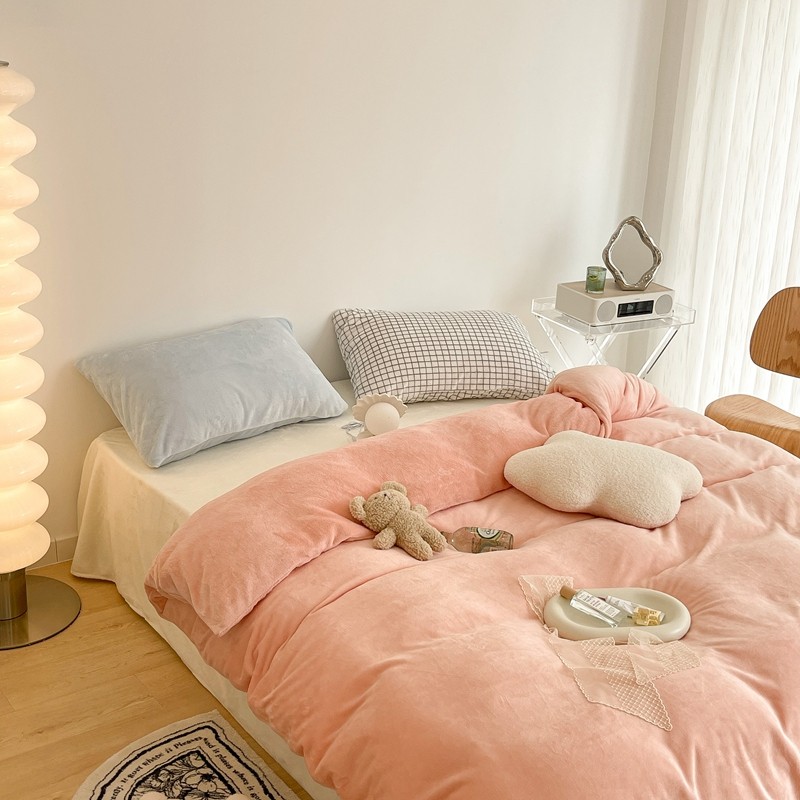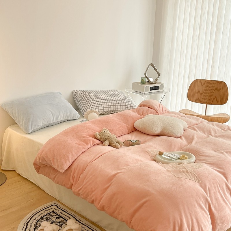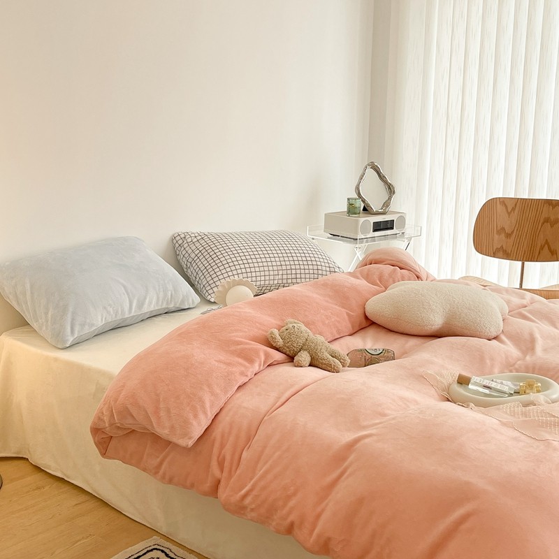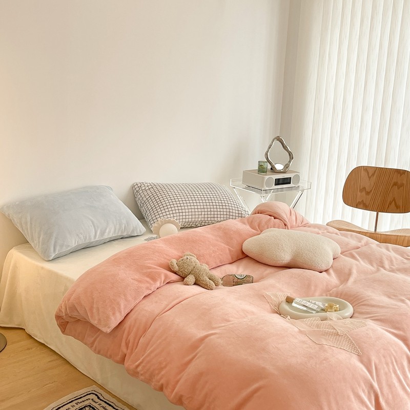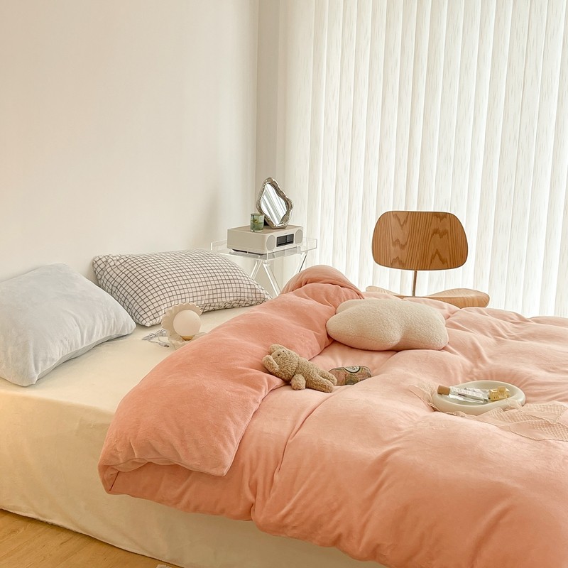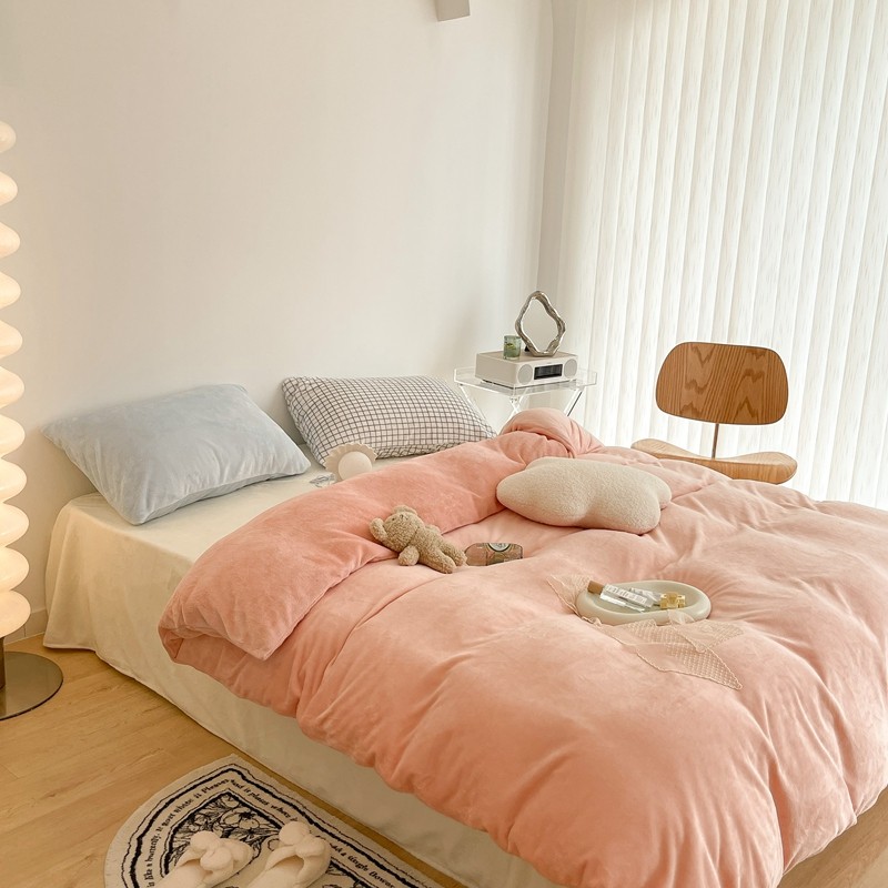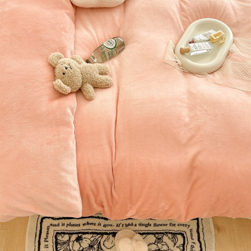 昔可家纺 2021新款撞色牛奶绒四件套 烟雾粉