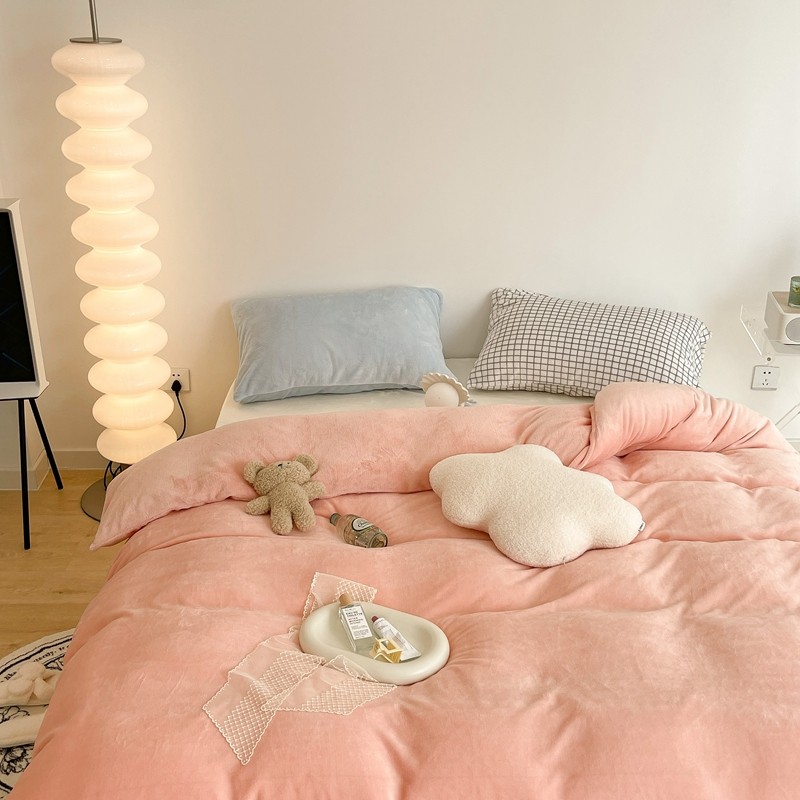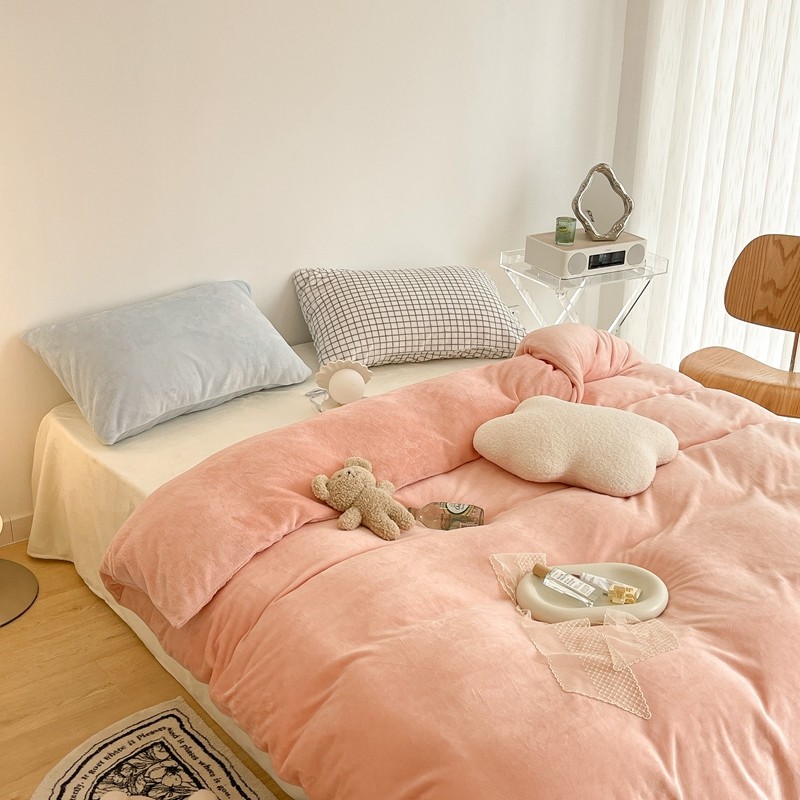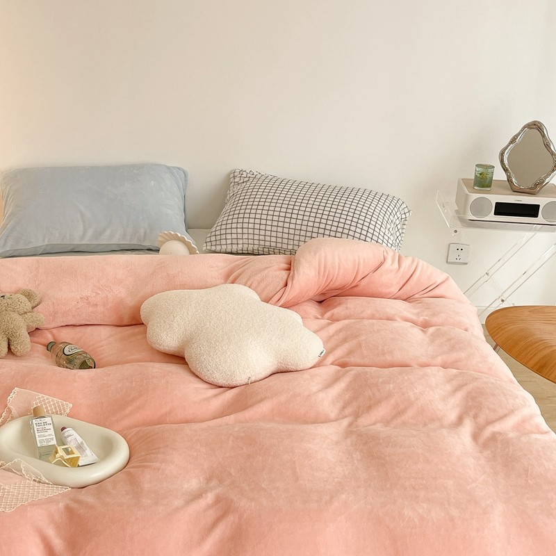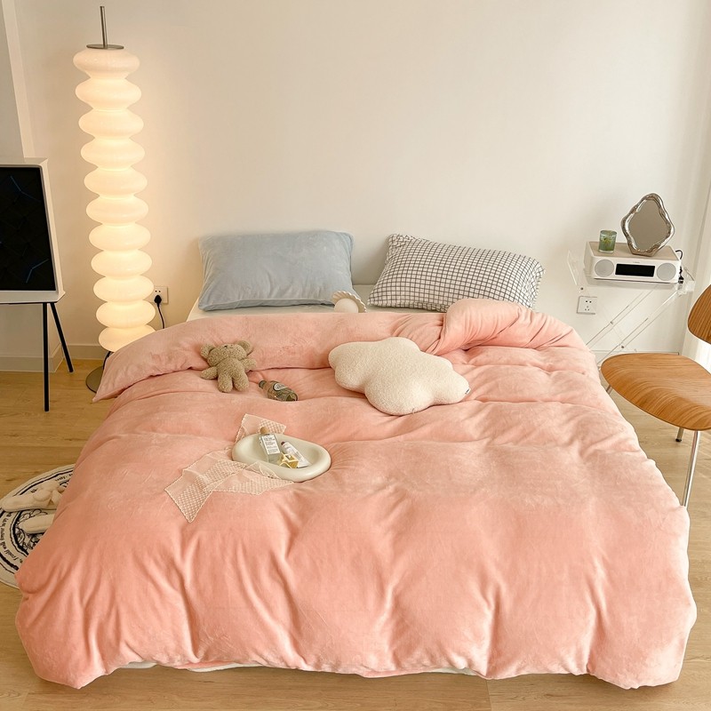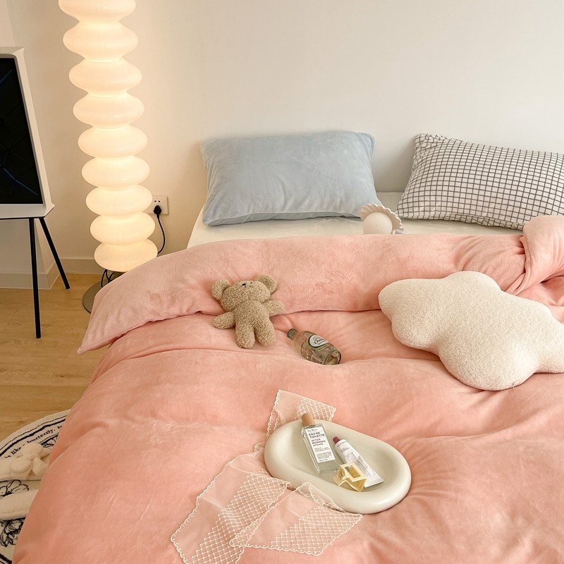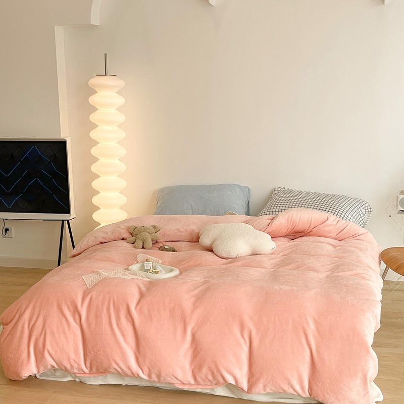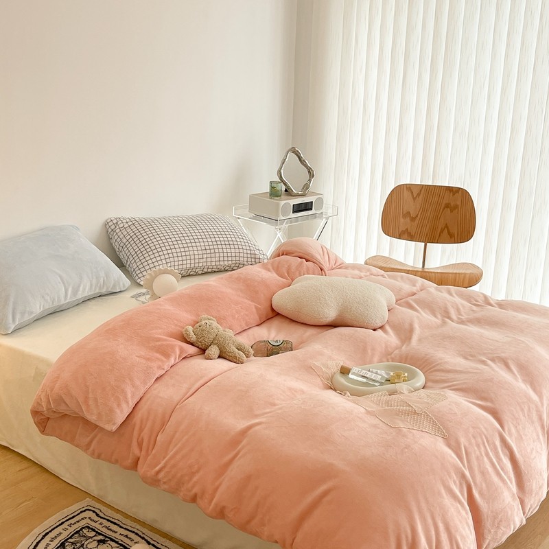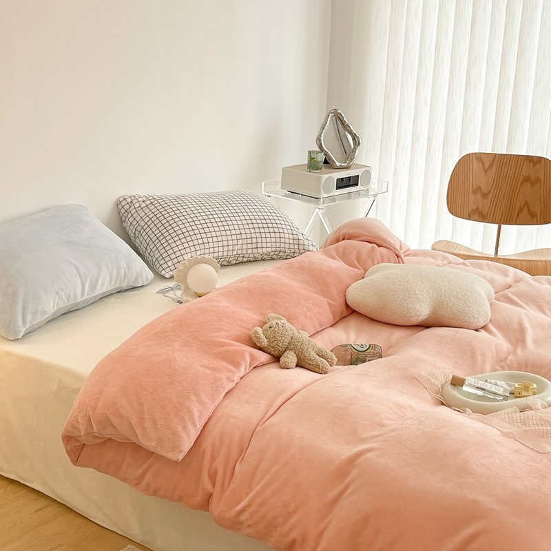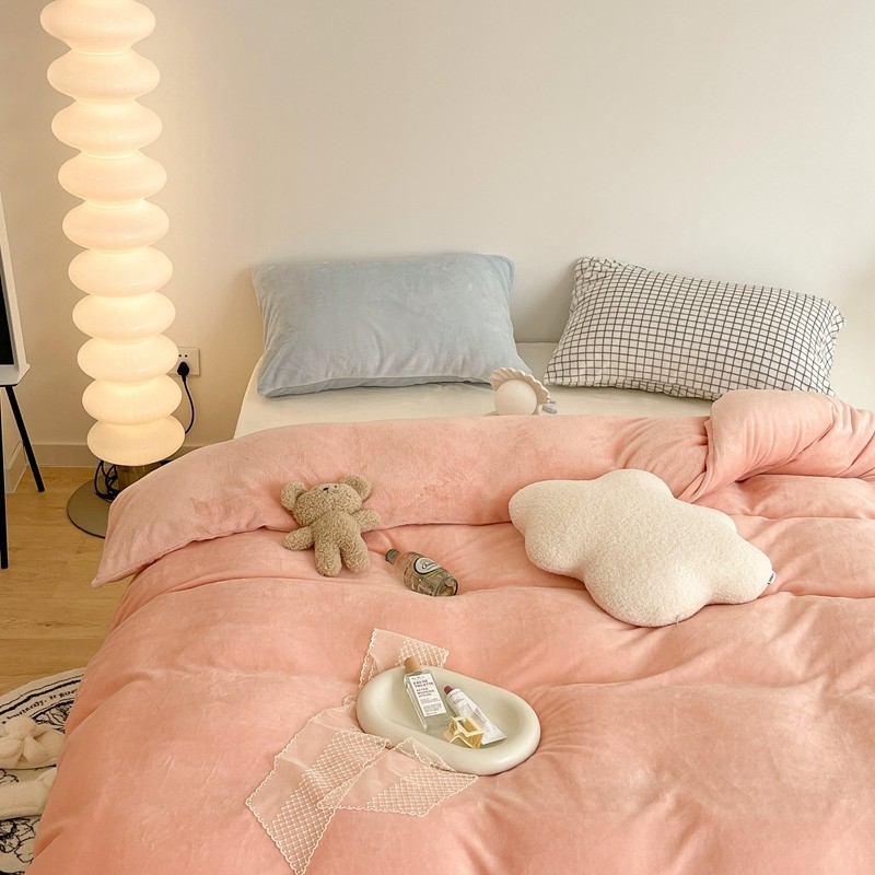昔可家纺 2021新款撞色牛奶绒四件套 烟雾粉