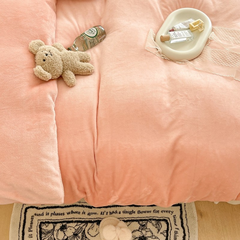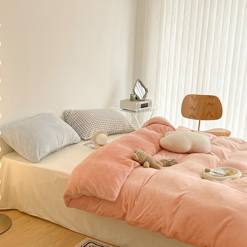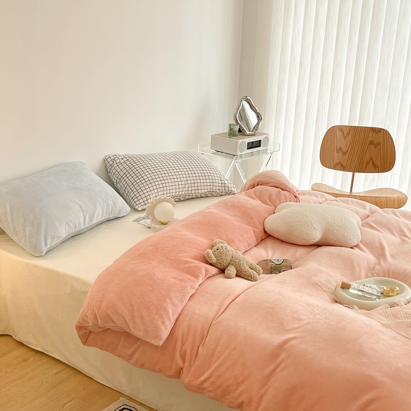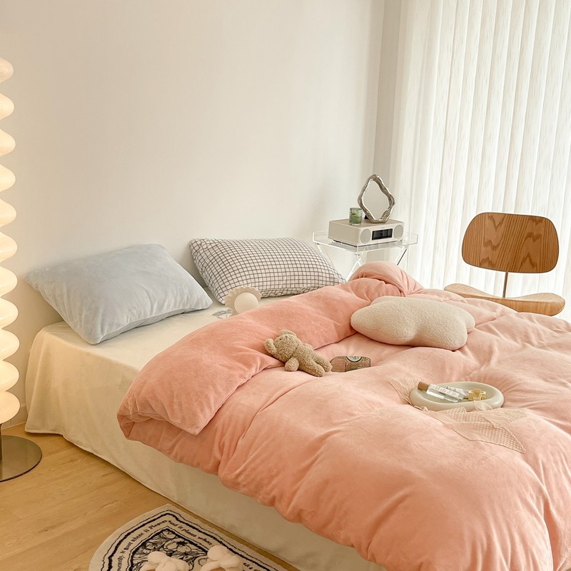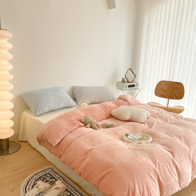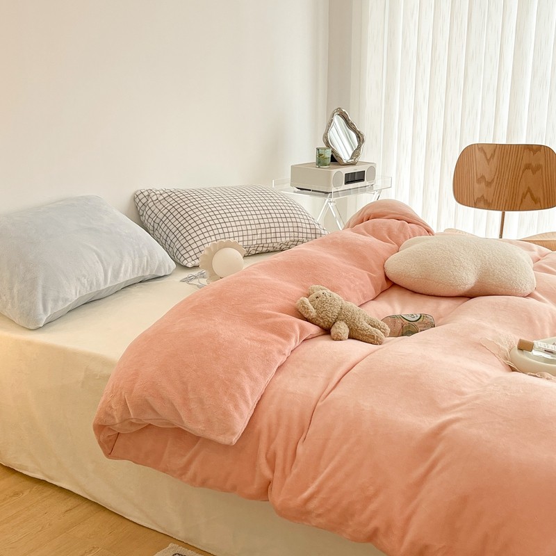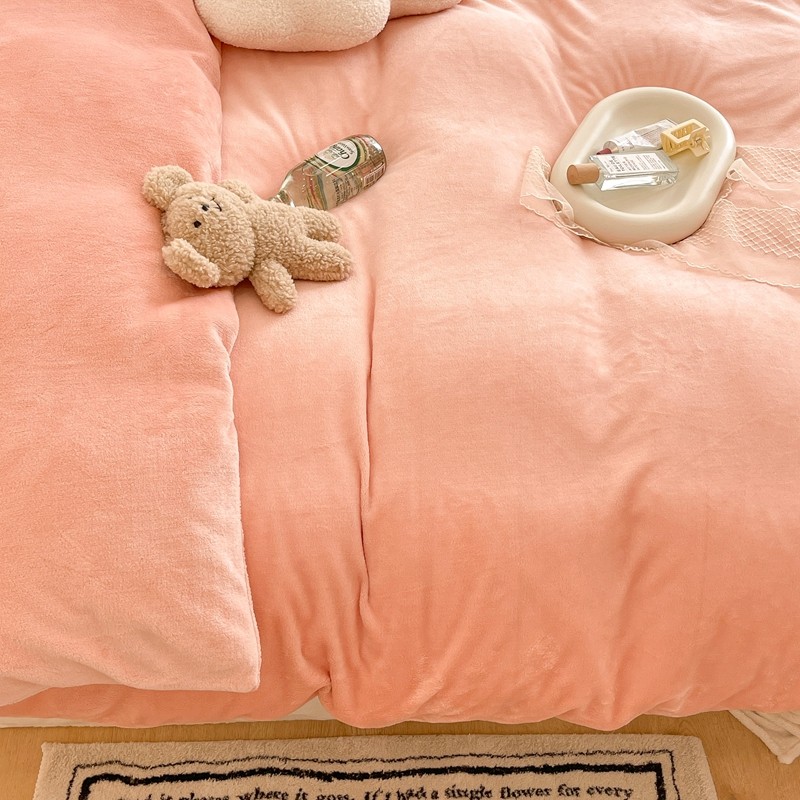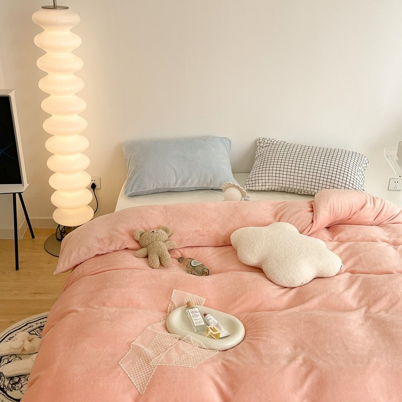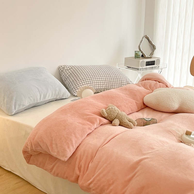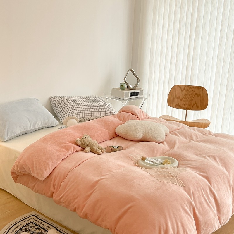 昔可家纺 2021新款撞色牛奶绒四件套 烟雾粉