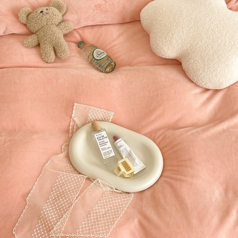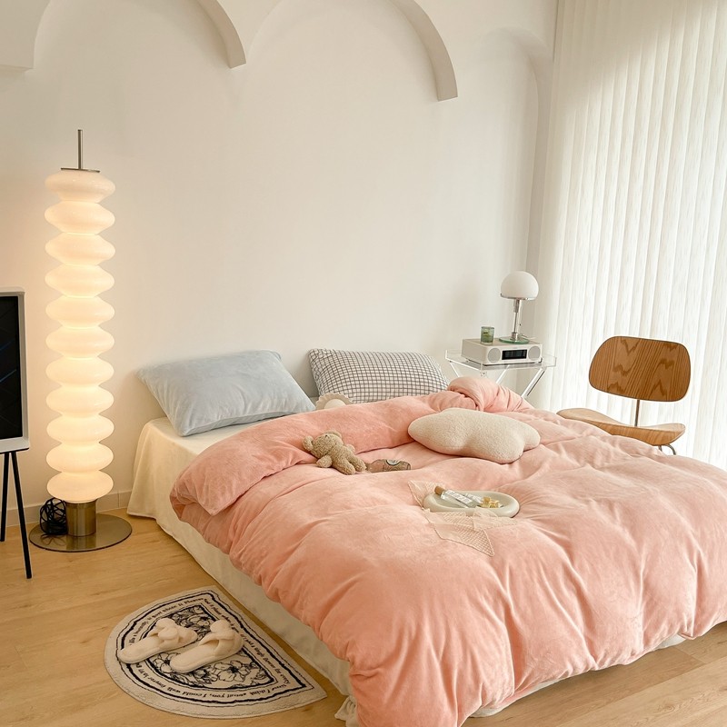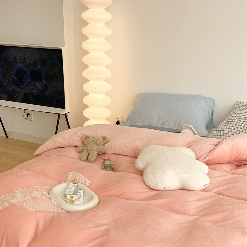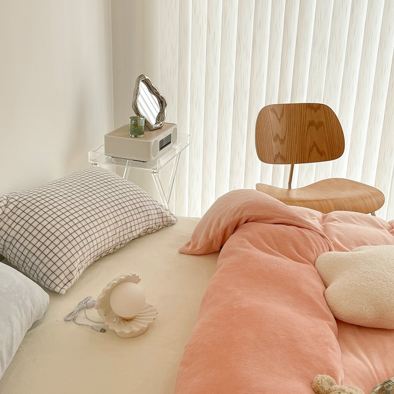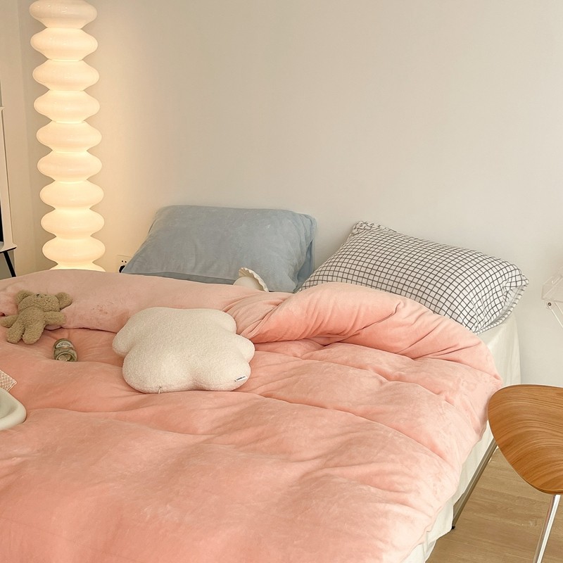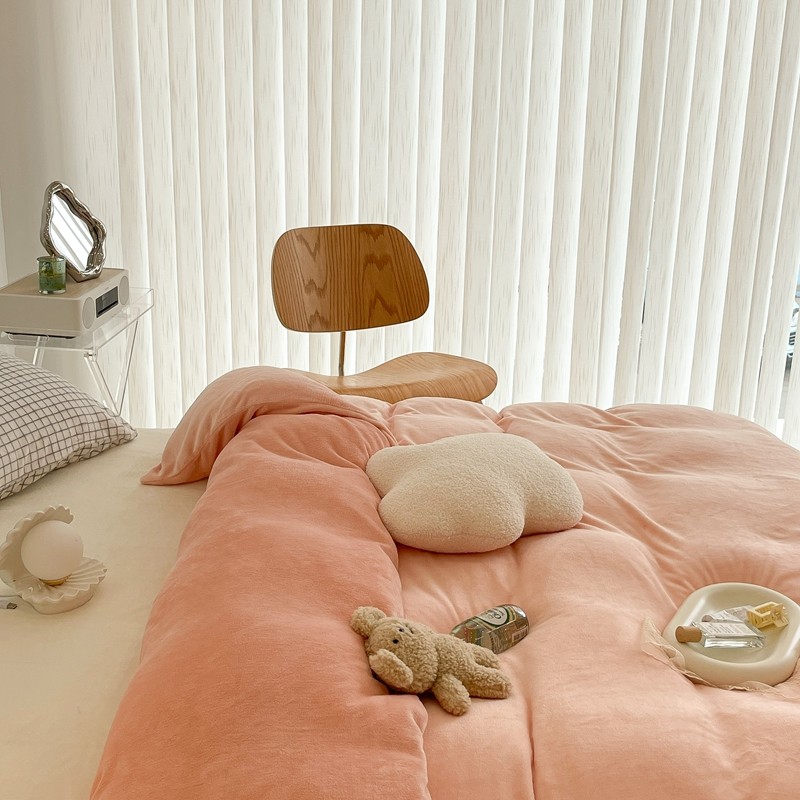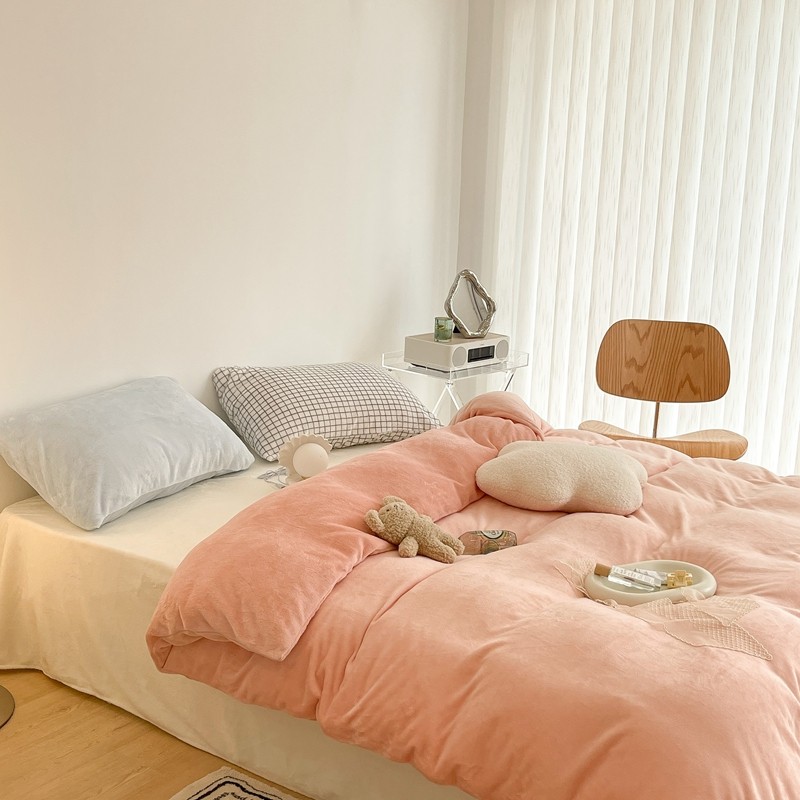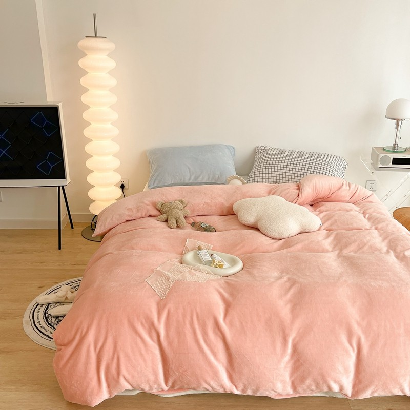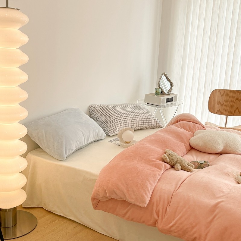 昔可家纺 2021新款撞色牛奶绒四件套 烟雾粉