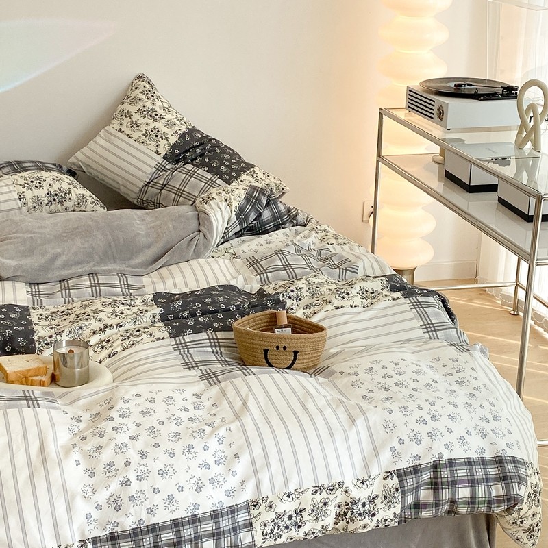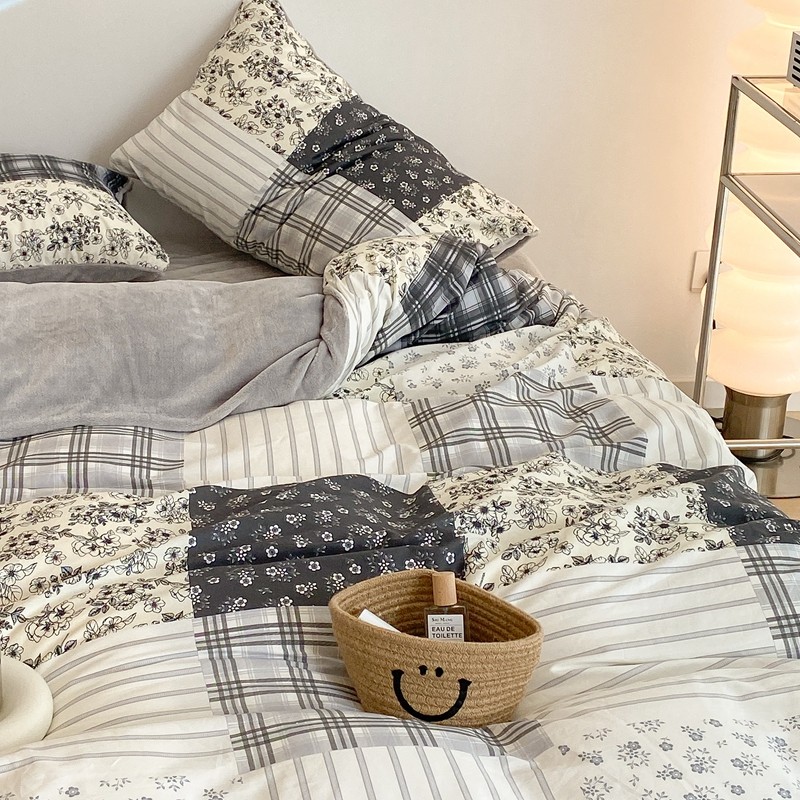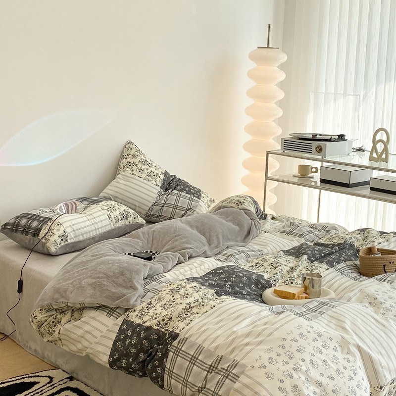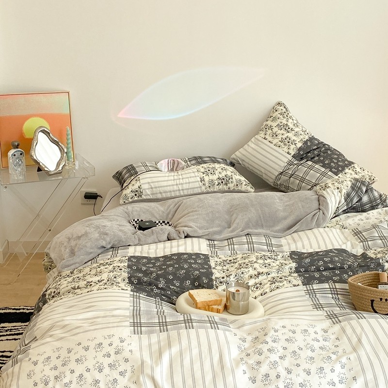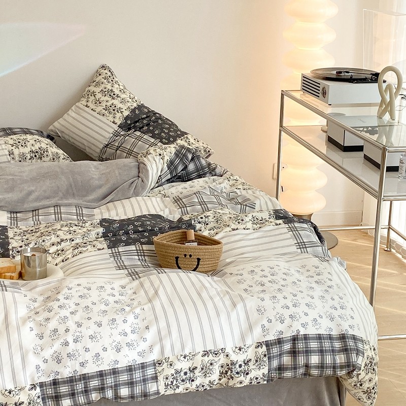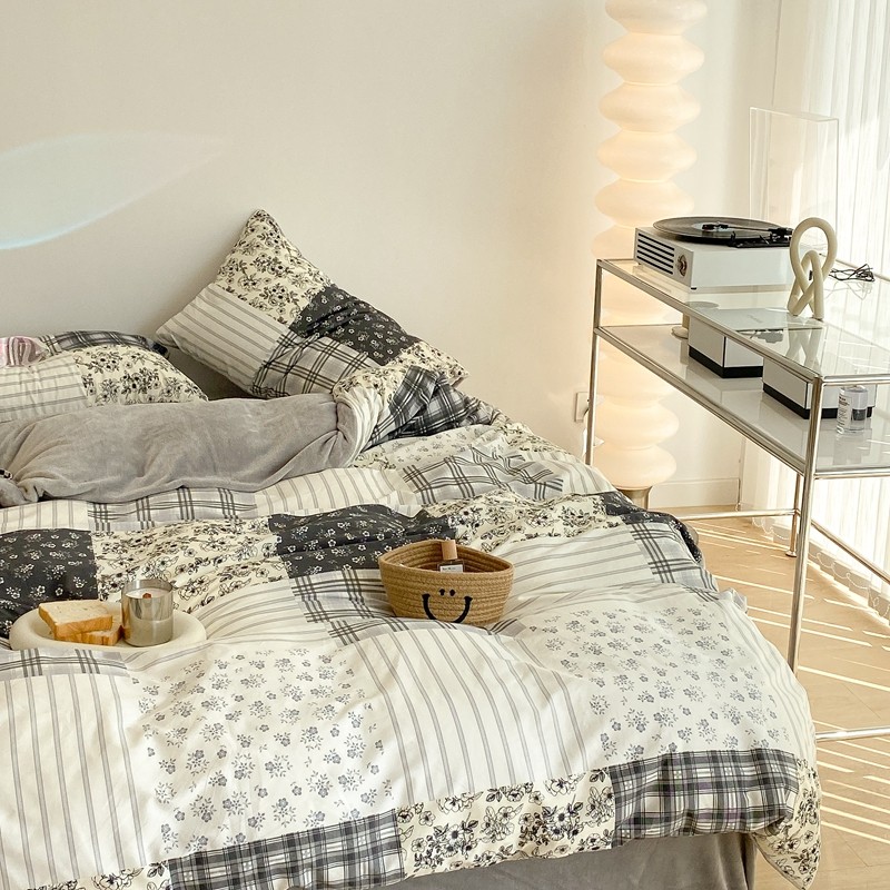 (总)昔可 2023新款全棉ins格子混搭系列四件套,ins简约绿格,粉蓝格,开心果格,学院格纹,粉绿格,海盐兰格,黄绿格,夏日蓝条,芝士黄条,紫芋泥芝士格