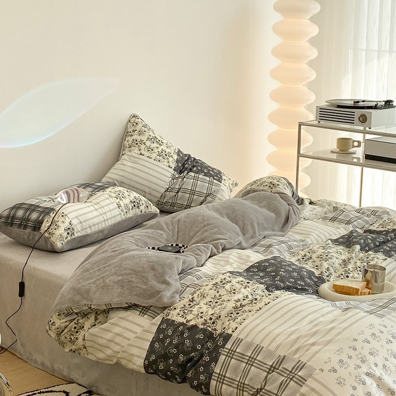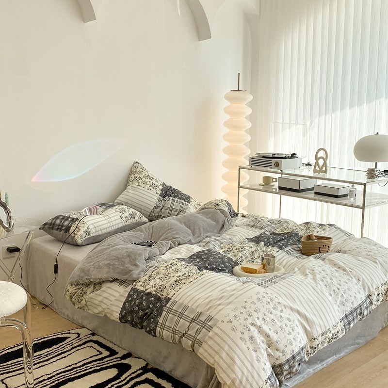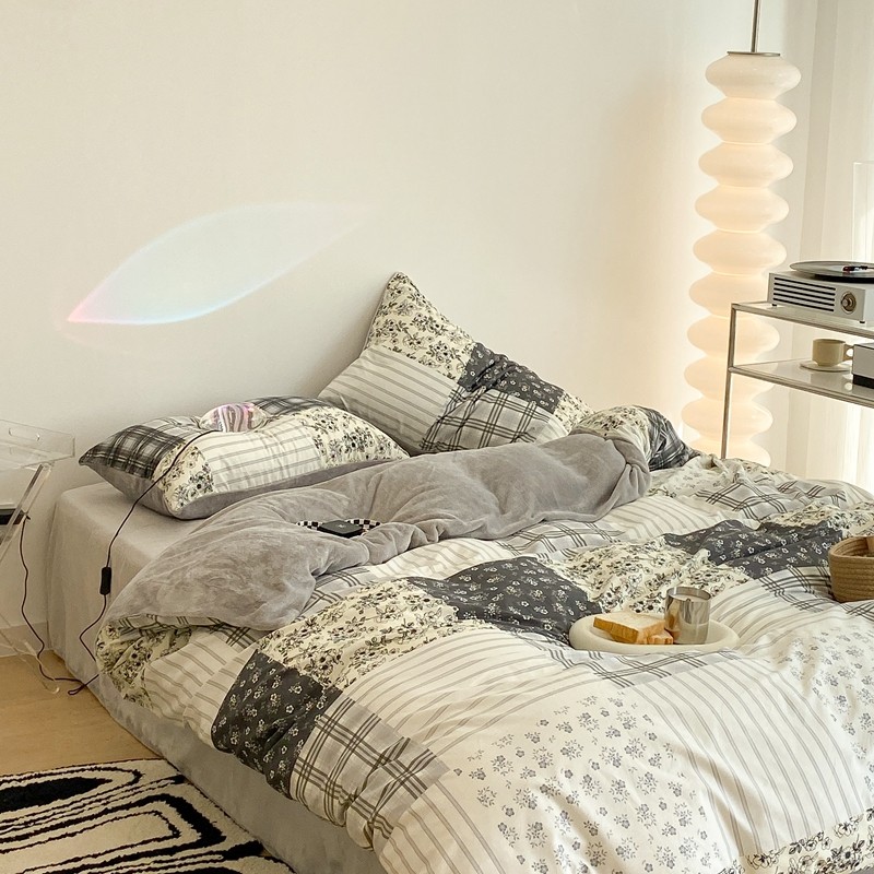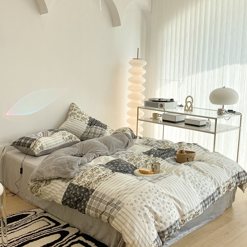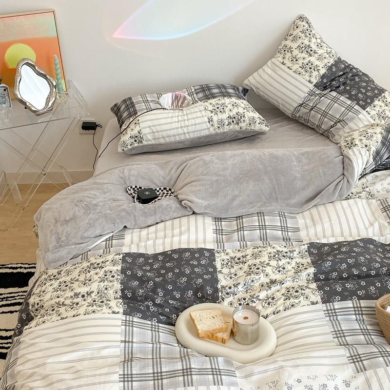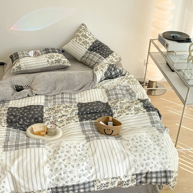 (总)昔可 2023新款全棉ins格子混搭系列四件套,ins简约绿格,粉蓝格,开心果格,学院格纹,粉绿格,海盐兰格,黄绿格,夏日蓝条,芝士黄条,紫芋泥芝士格