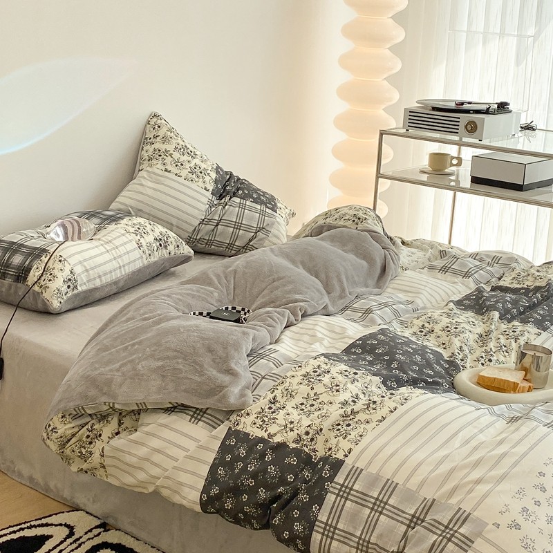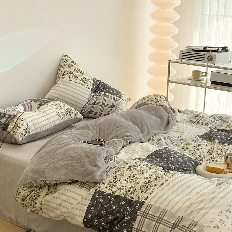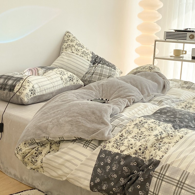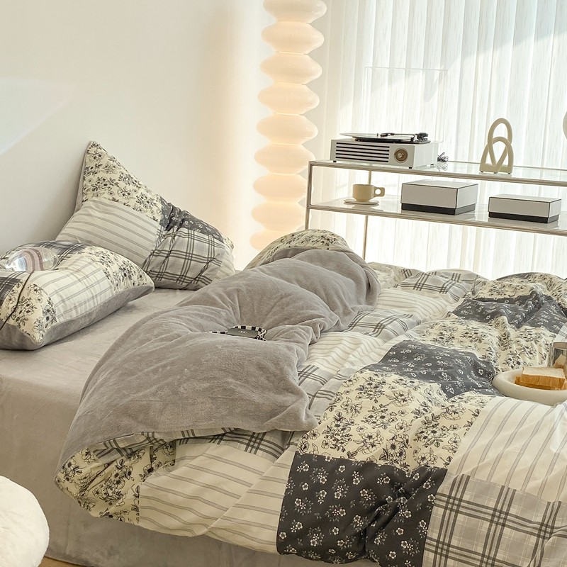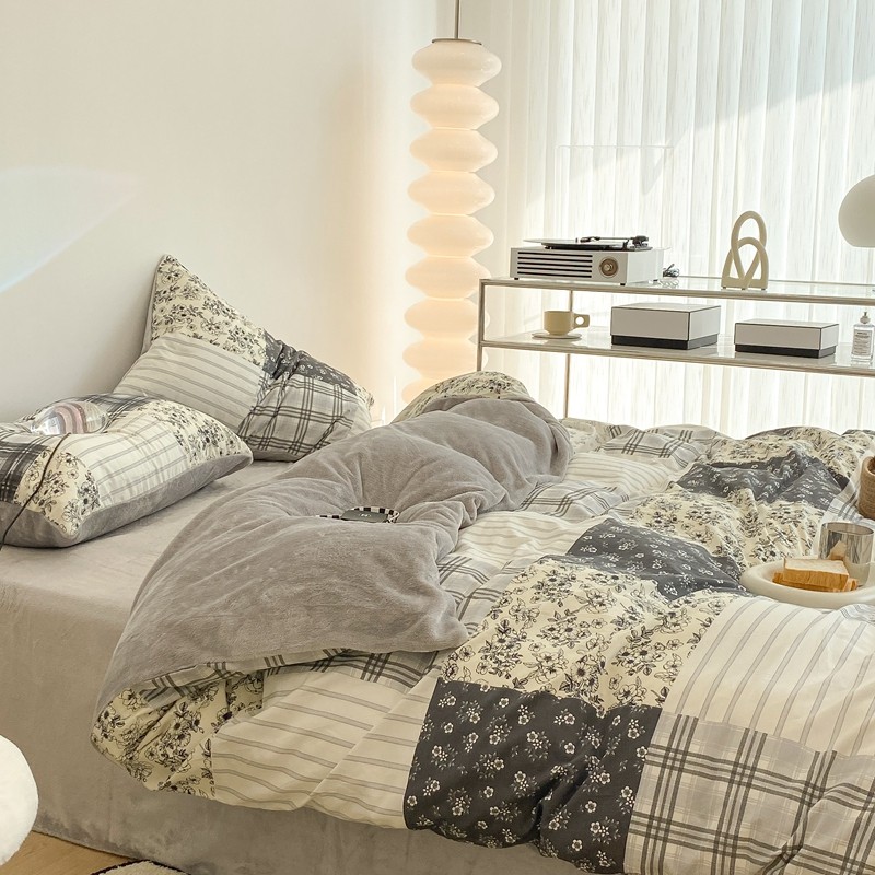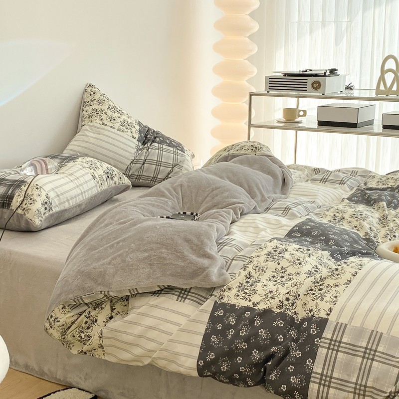 商品名称:昔可家纺 2021新款棉加牛奶绒四件套 浮绘花影