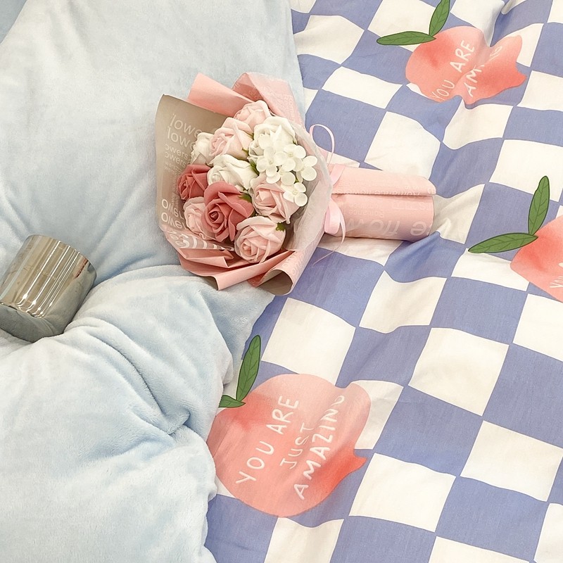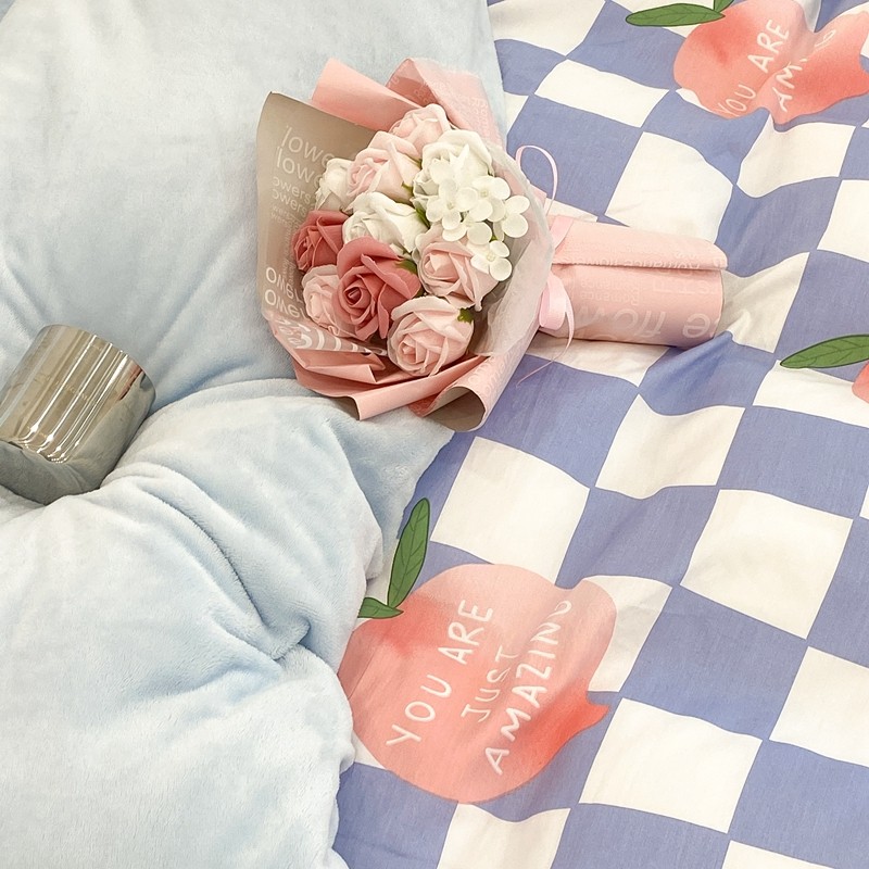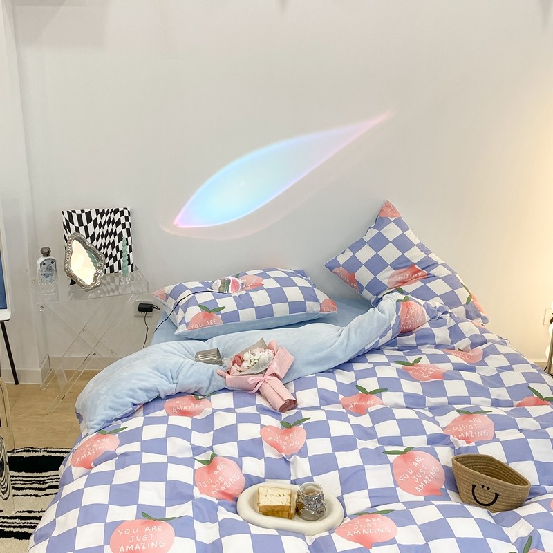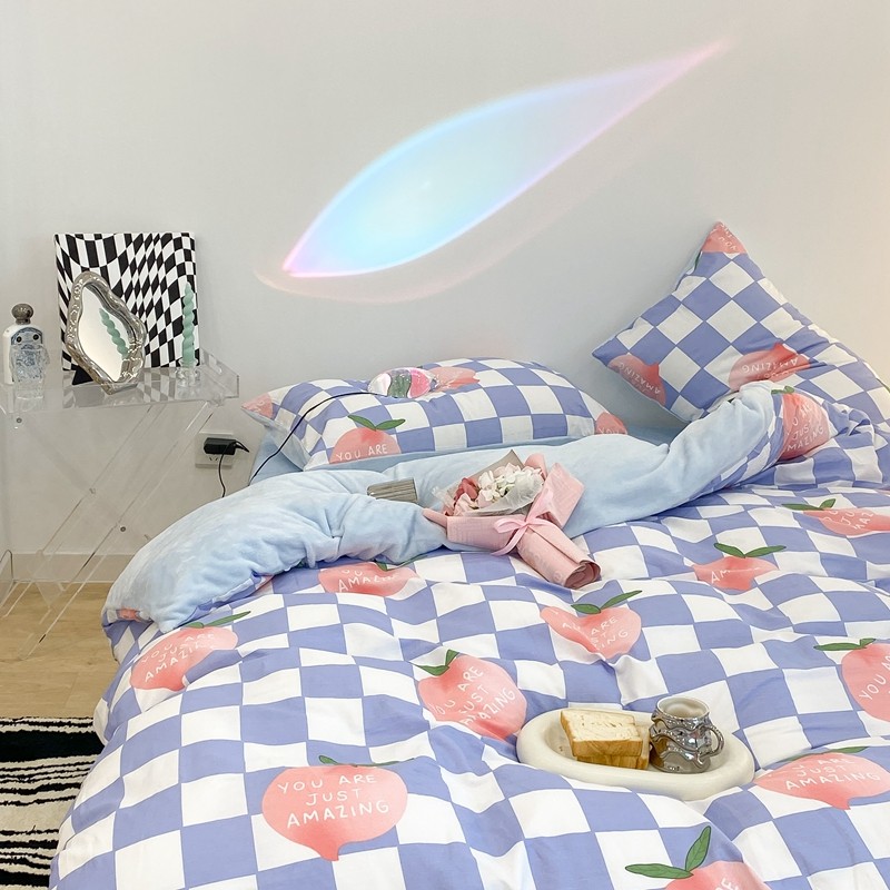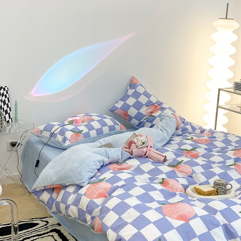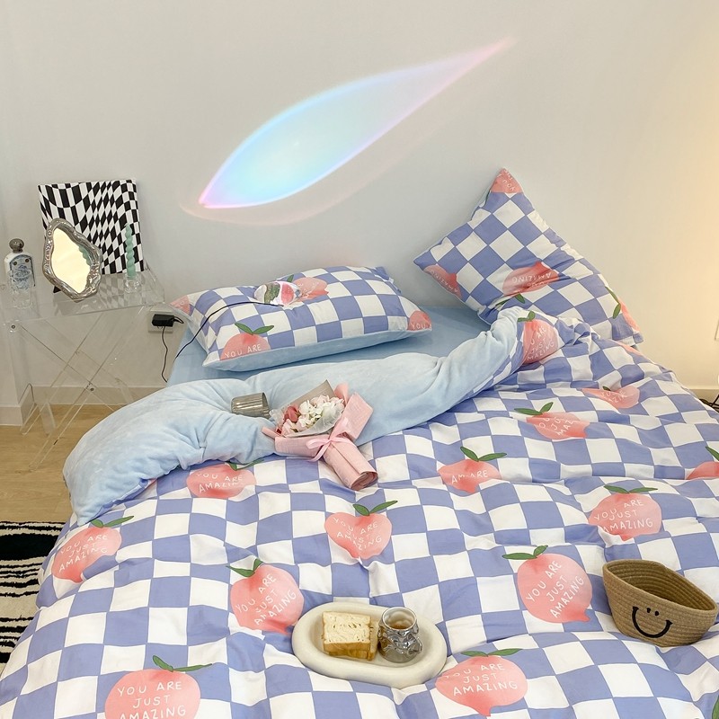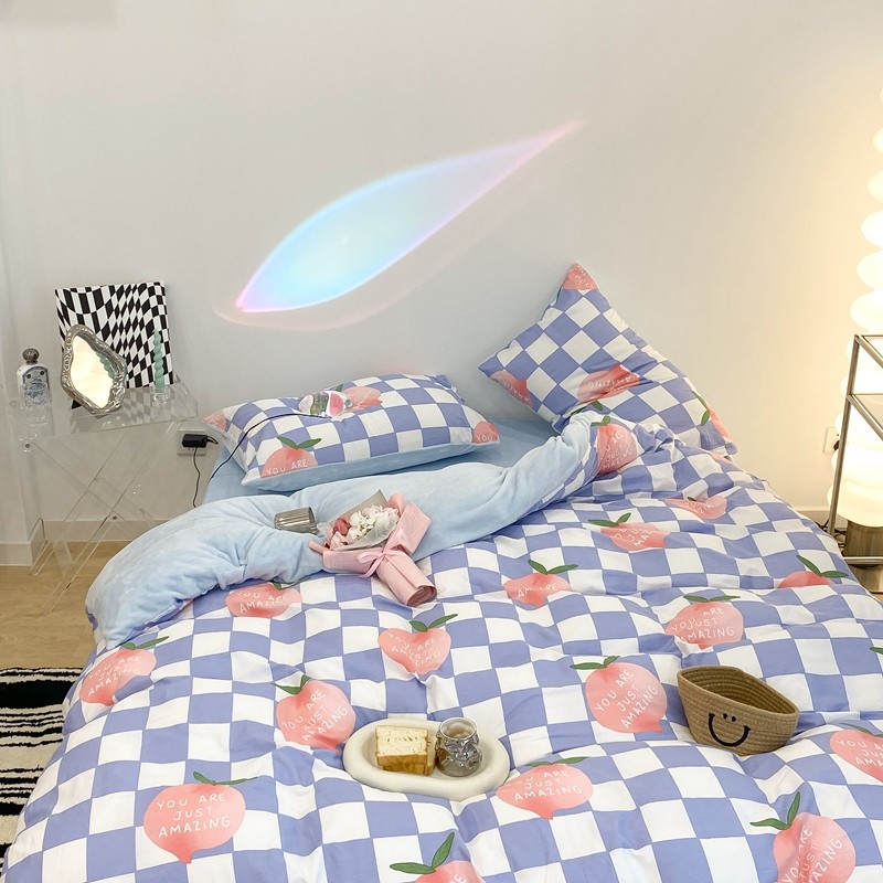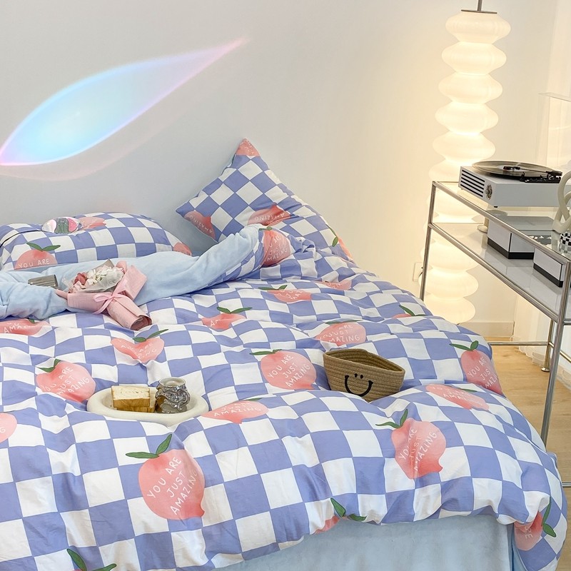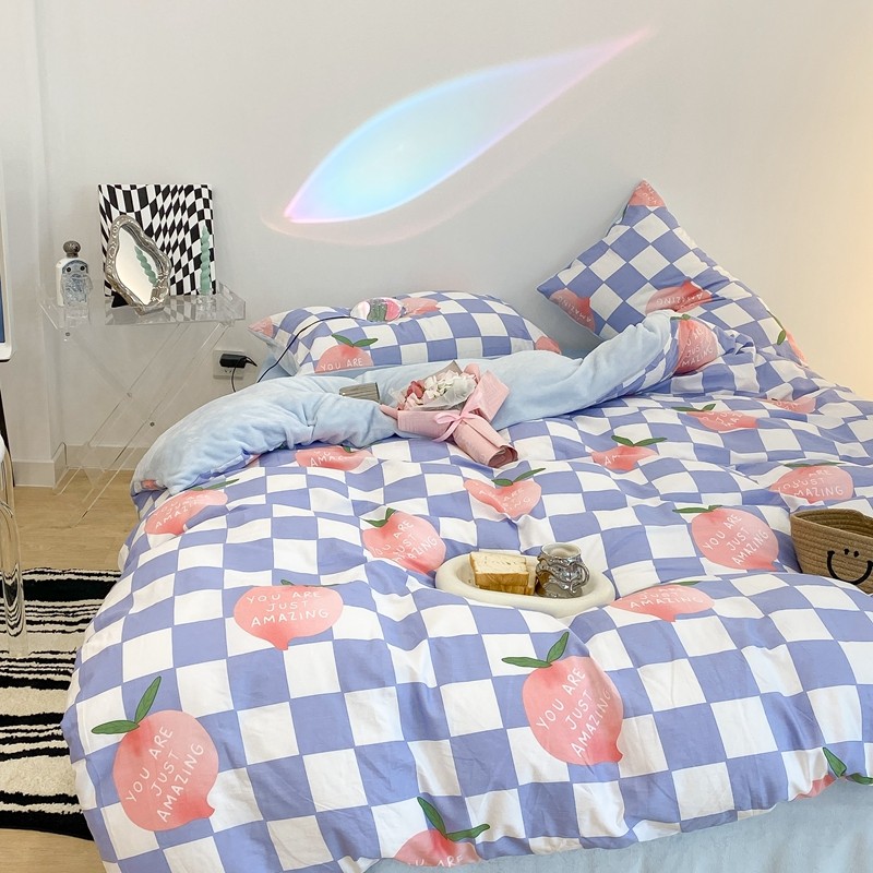 昔可家纺 2021新款棉加牛奶绒四件套 棋盘桃桃